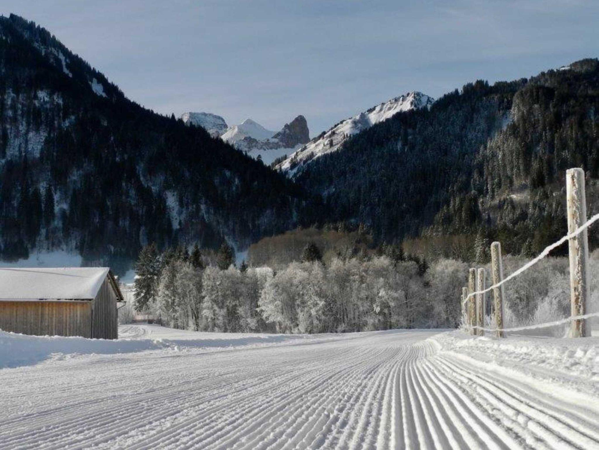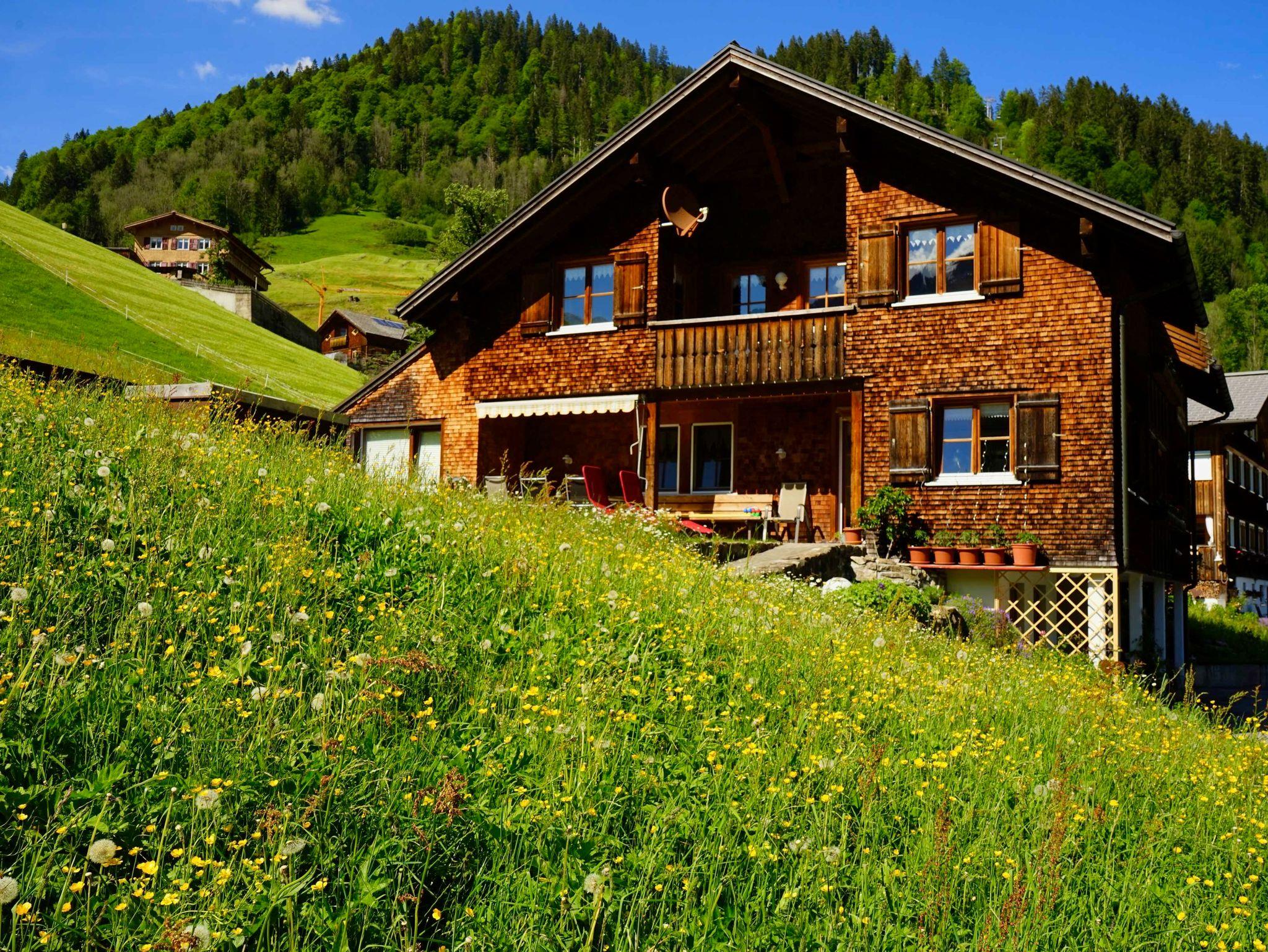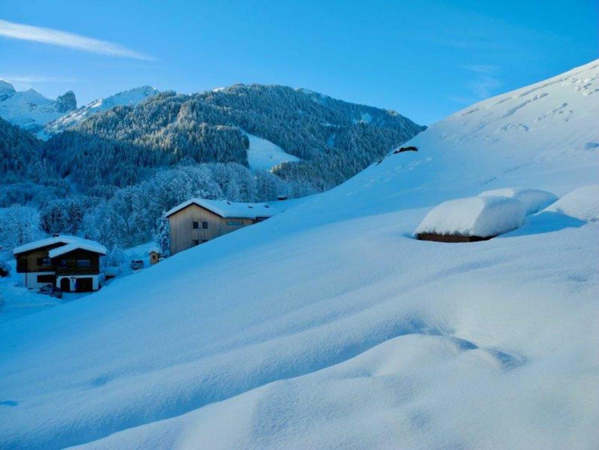 Unser Haus liegt abseits der Durchzugsstraße ca. 8 Minuten vom Dorfkern entfernt, direkt bei den Bergbahnen Diedamskopf.