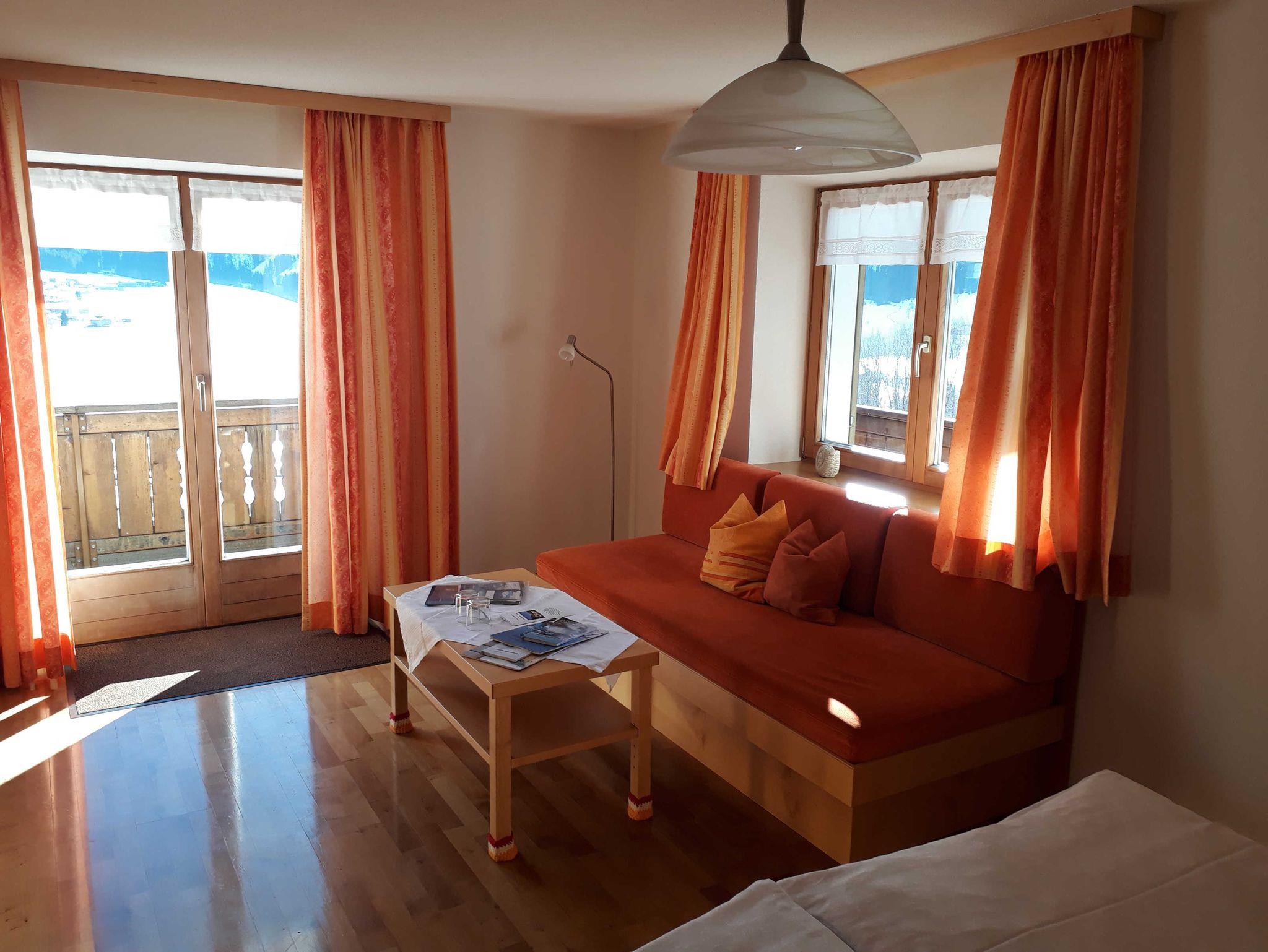 • Eine große, gemütliche Couch (auch als Zustellbett benützbar) mit einer Stehlampe Stuhl und Couchtisch mit Unterlagen für Ihre Urlaubsgestaltung. Die BW-Broschüren dürfen auch nicht fehlen.
