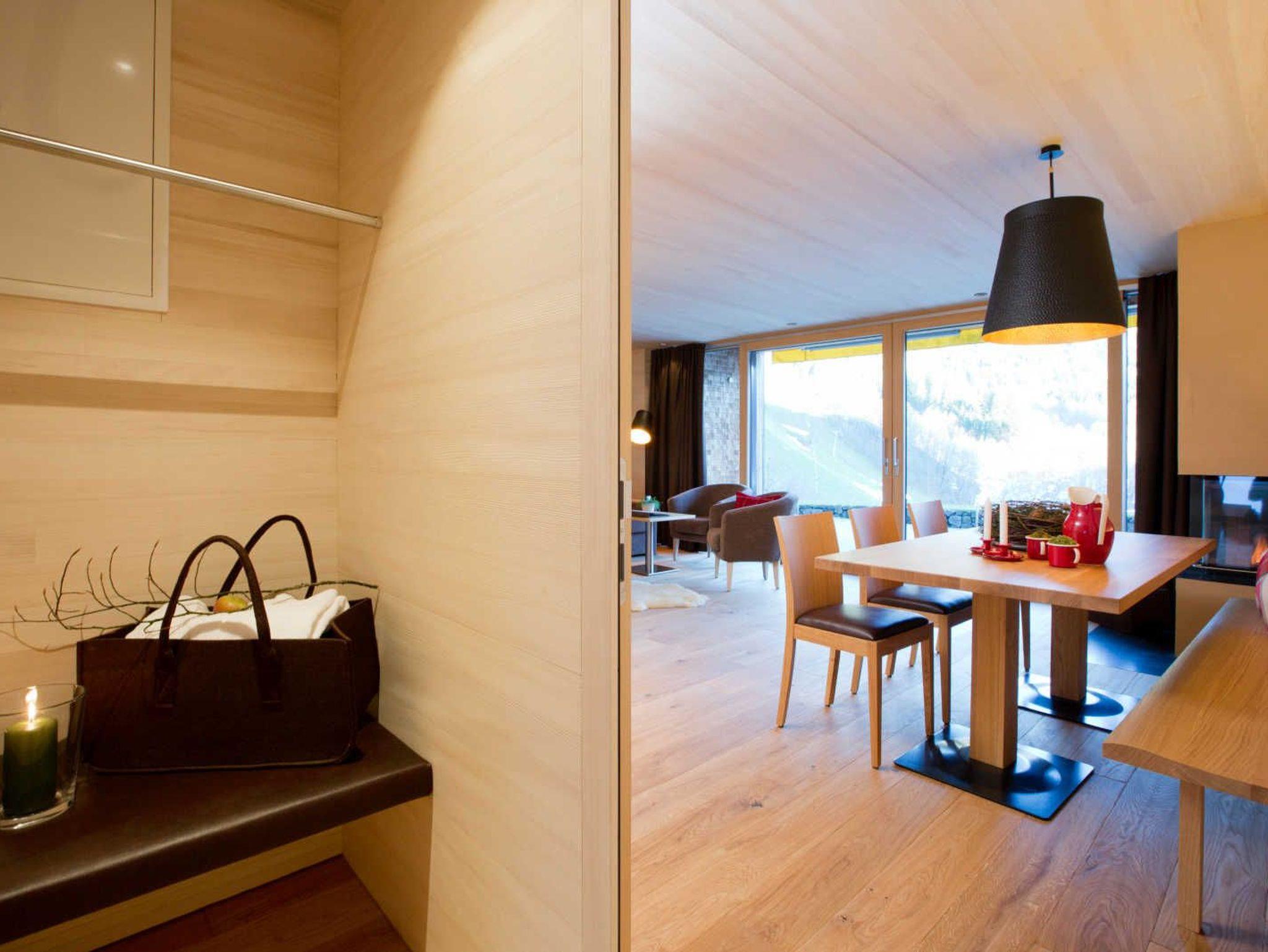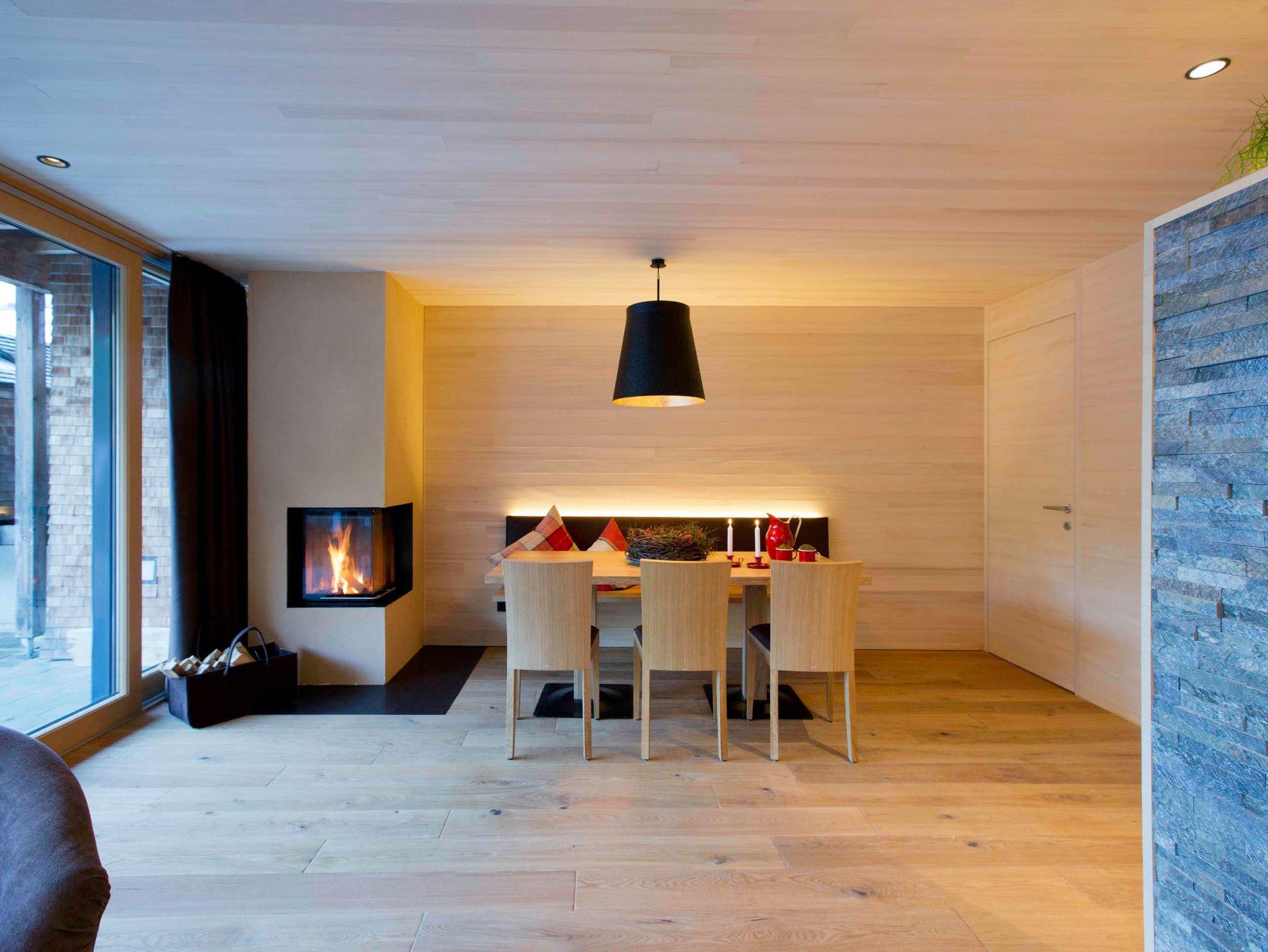 Ein Genuss für Freiheitsliebende! Eigene Sauna, offenes Kamin, großere Terrasse mit Traumblick auf Schoppernau. Rustikaler Eichenholzboden (ideal für Allergiker); Decken und Wände aus heimischer Weißtanne.