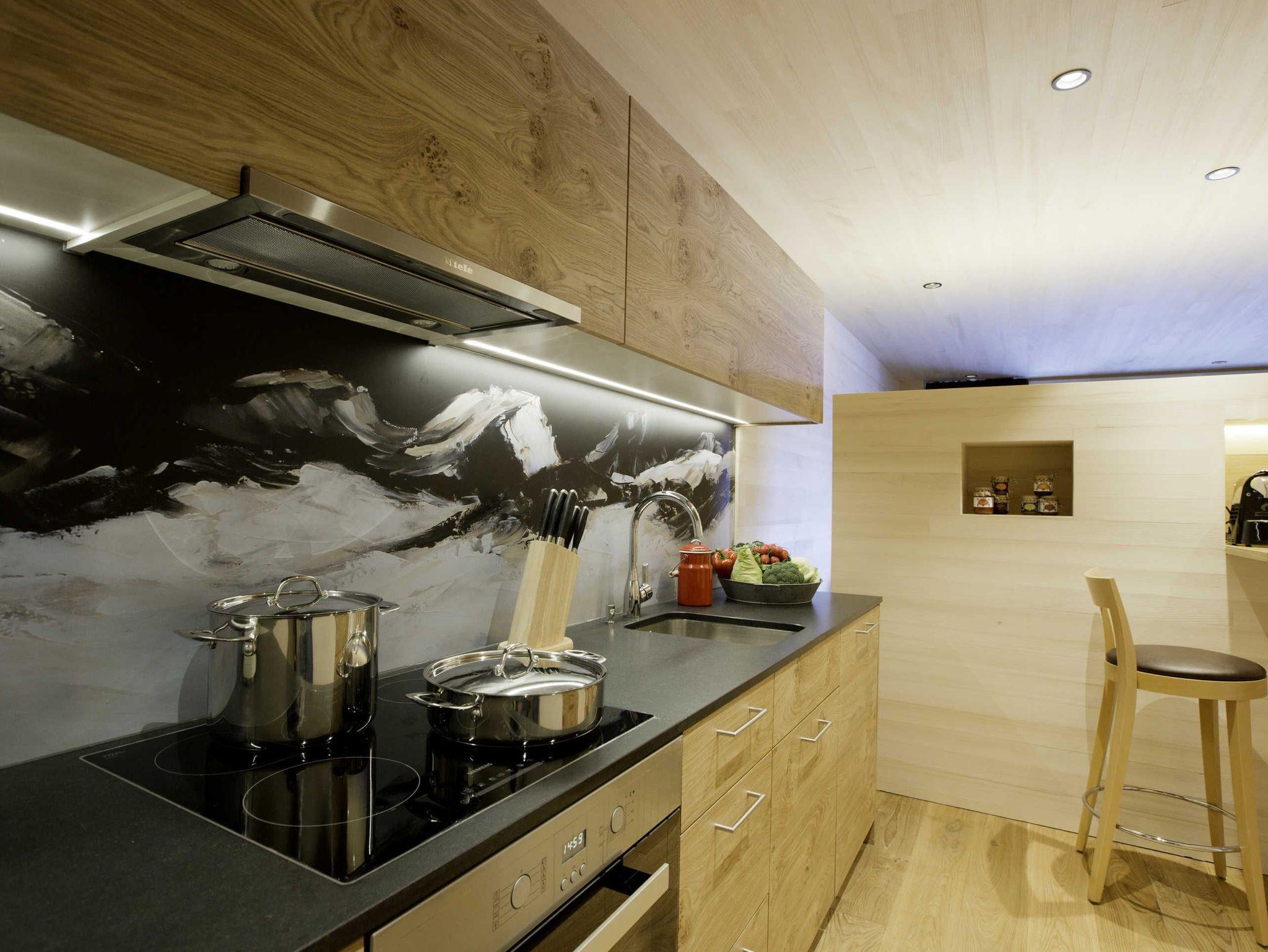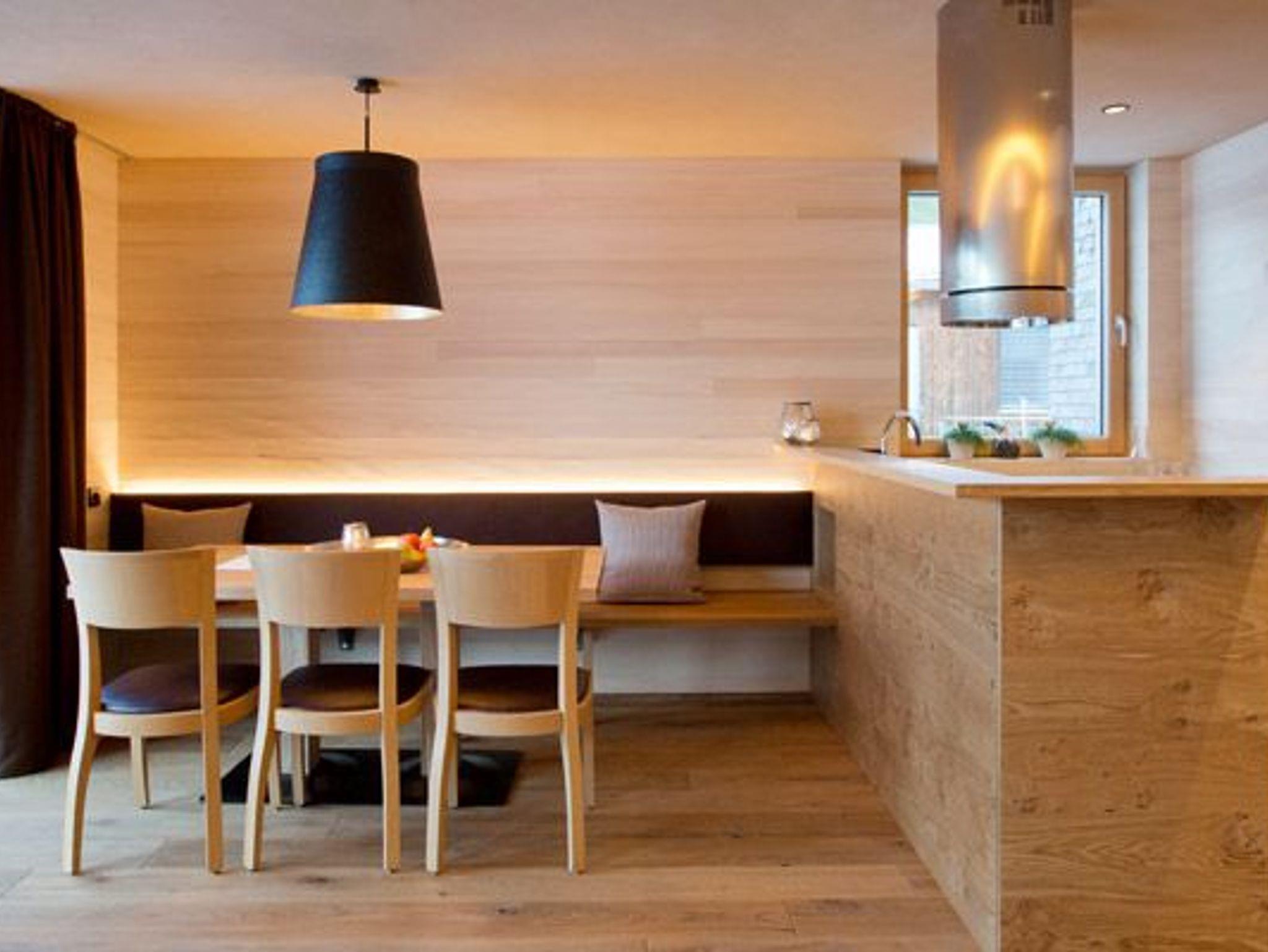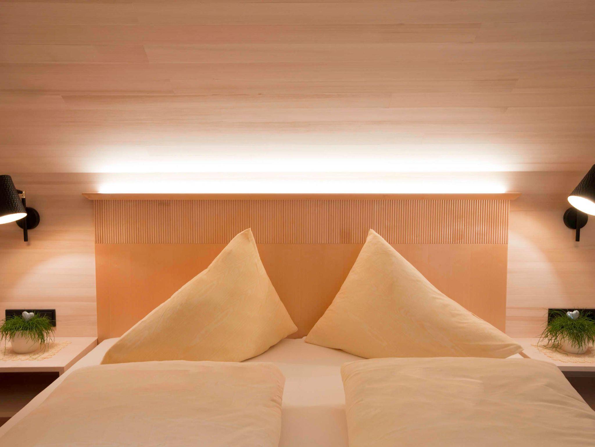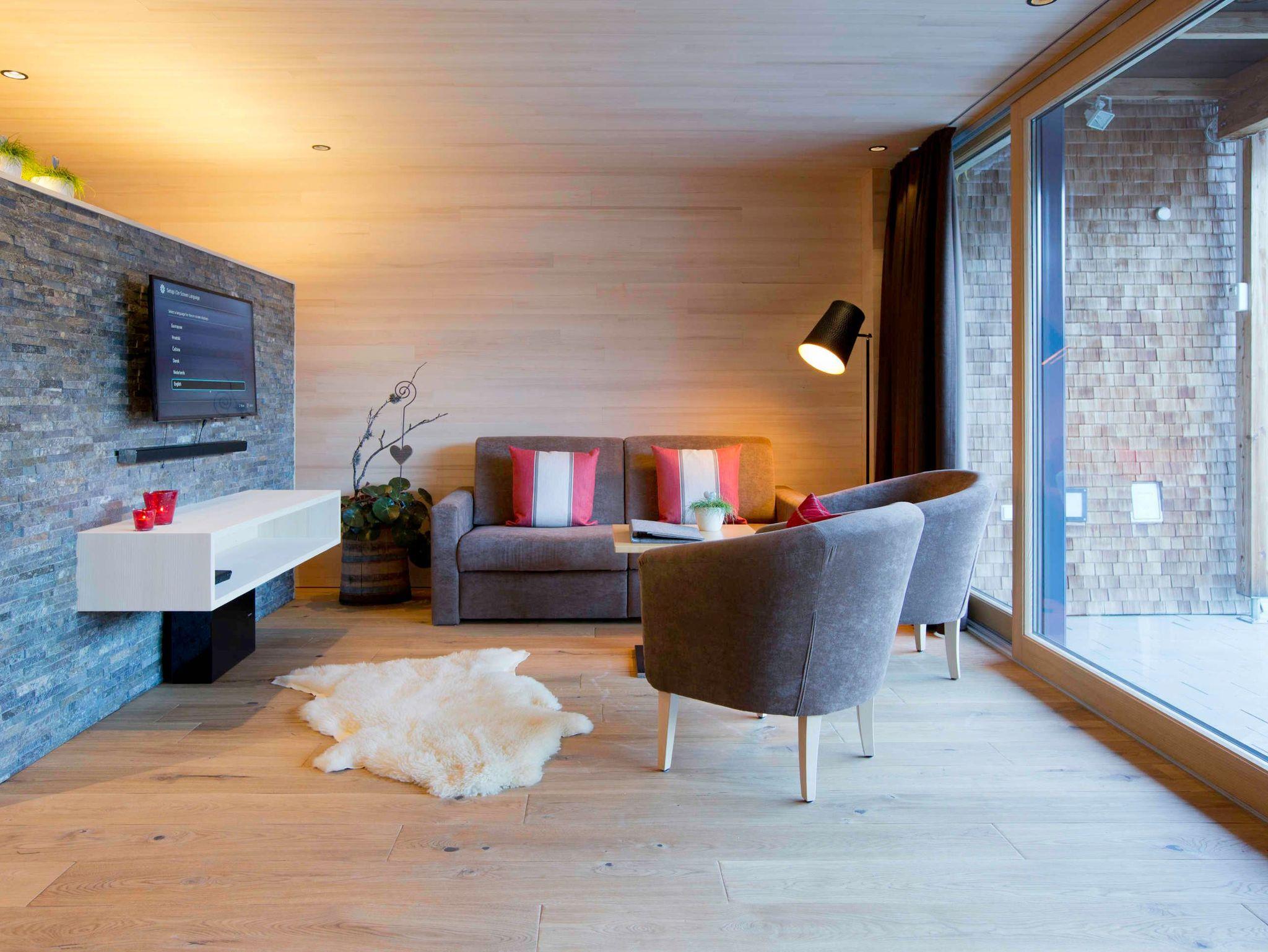 Alle Apartments sind mit hochwertigen Holzböden (Eiche Parkett), Wandvertäfelungen aus heimischer Weißtanne, Decken aus heimischer Weißtanne und Lehmputz ausgestattet.