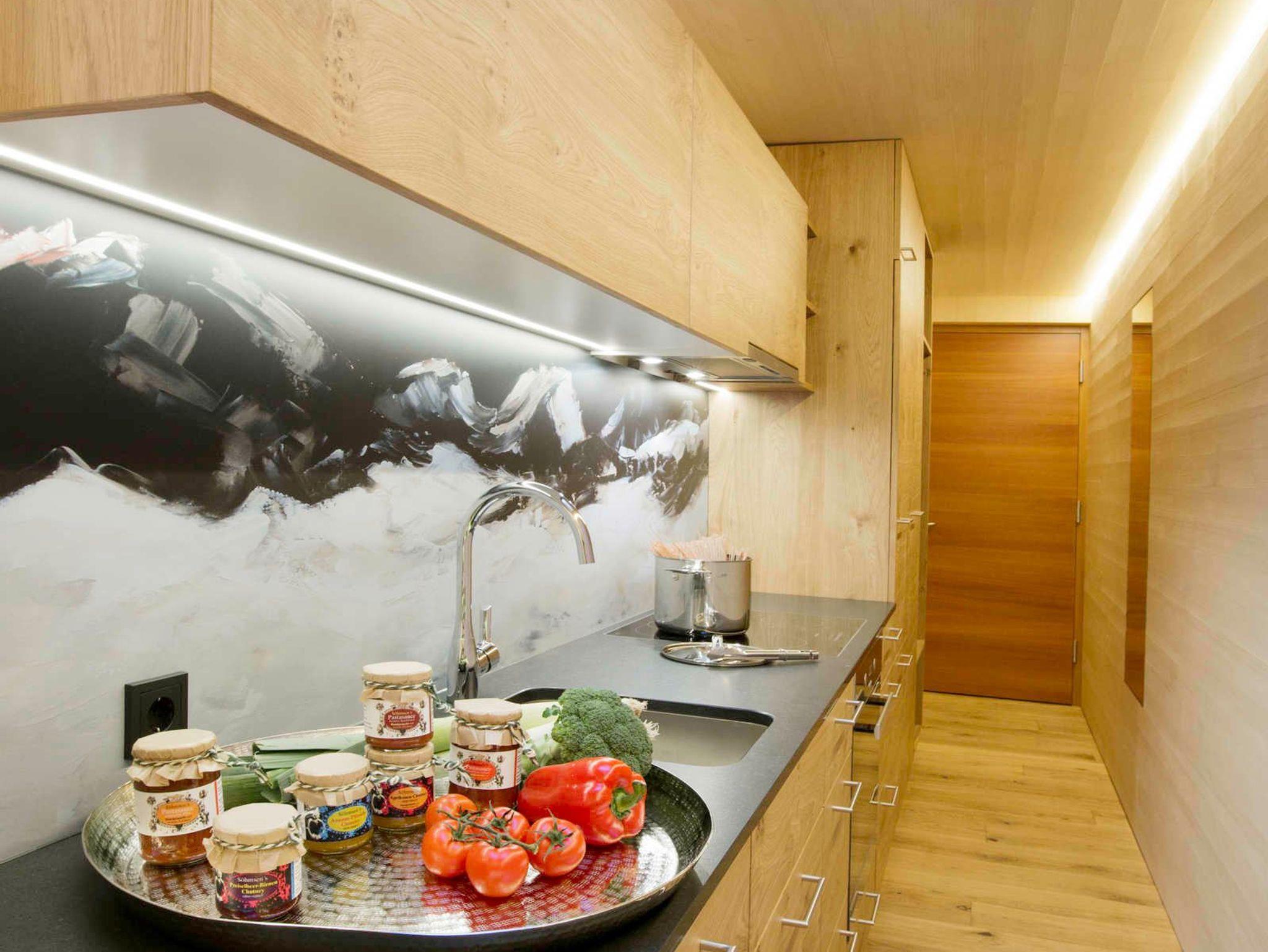 Alle Apartments sind mit hochwertigen Holzböden (Eiche Parkett), Wandvertäfelungen aus heimischer Weißtanne, Decken aus heimischer Weißtanne und Lehmputz ausgestattet.