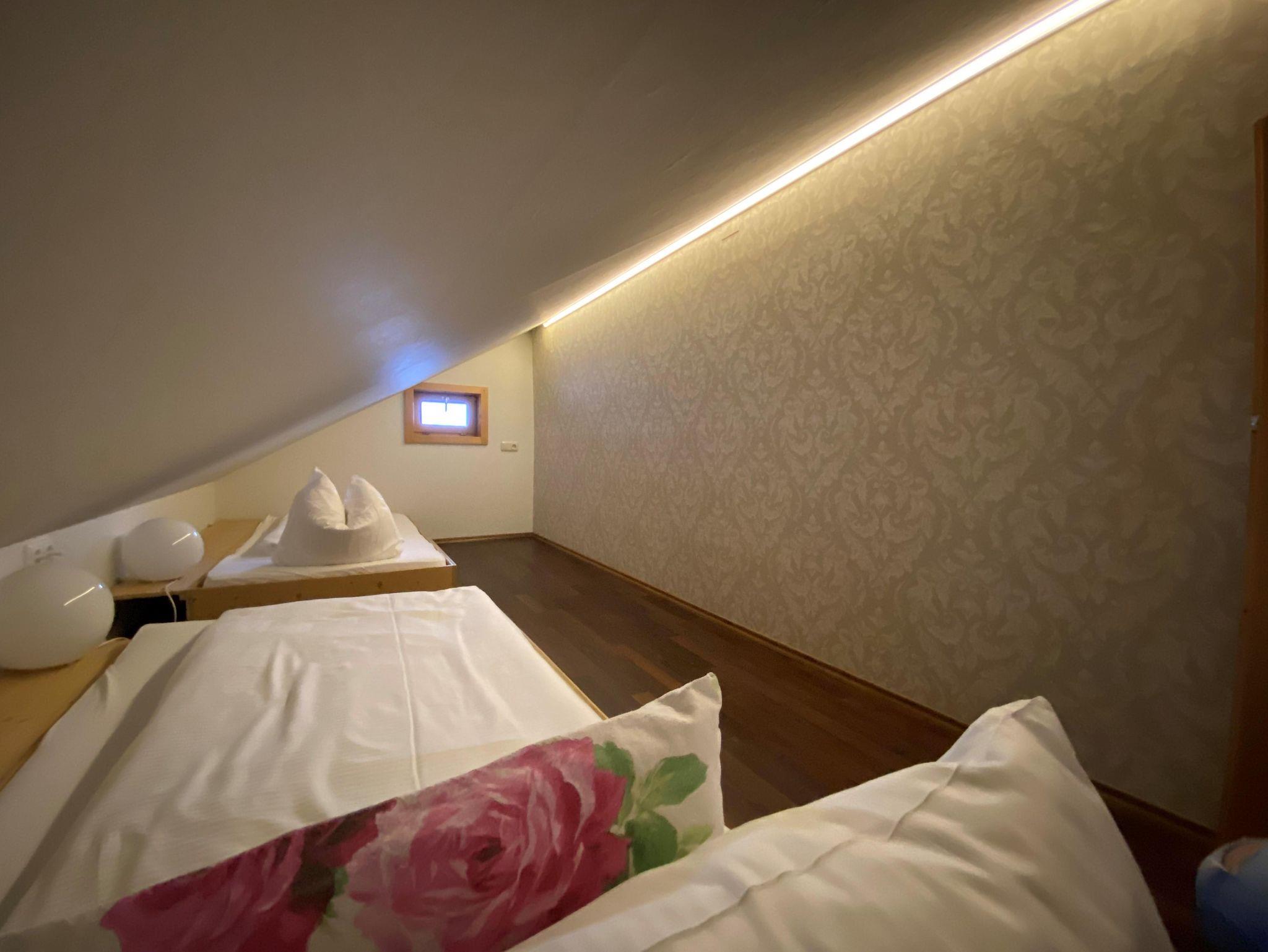 Unter der Dachschräge gibt es 2 zusätzliche Einzelbetten, die vor allem Ihre Kinder lieben werden!