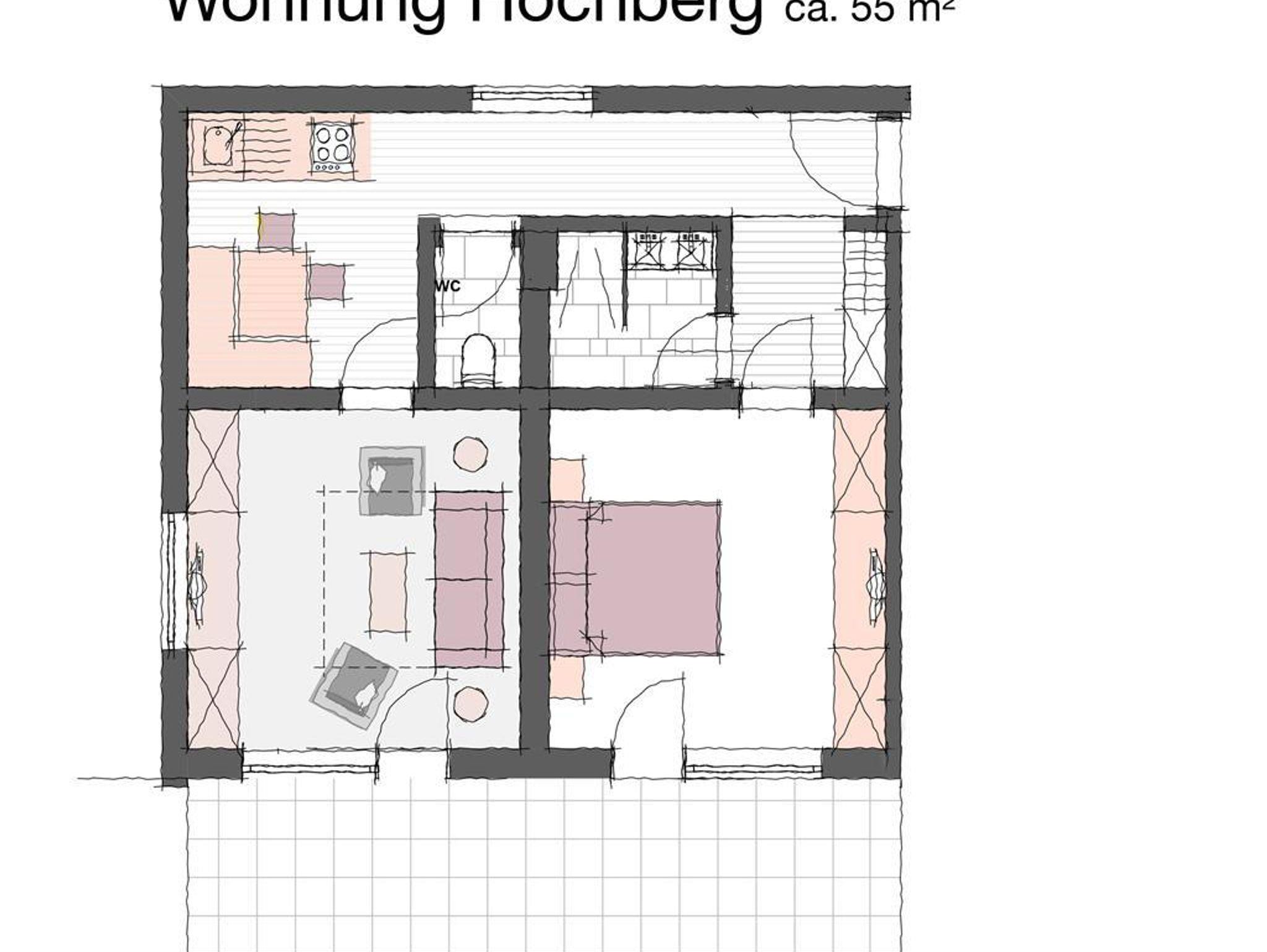 Das Apartment Hochberg ist mit 55 m2 das kleinste Apartment und bietet Platz für insgesamt vier Personen.
