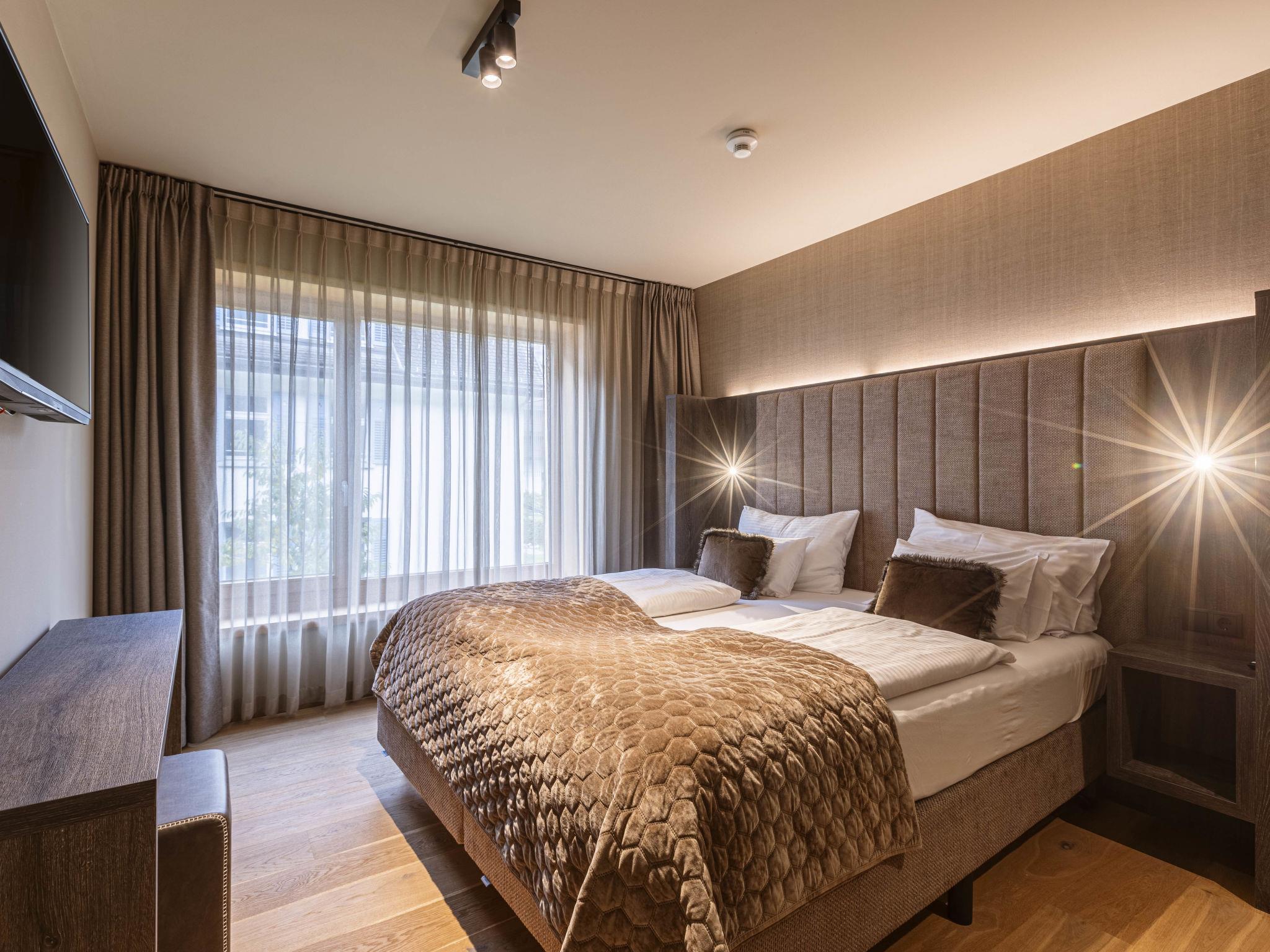 Schruns: Luxurious resort "Montafon Suites by AlpsResort". In the centre of Schruns, 100 m from the skiing area. For shared use: swimming pool heated (seasonal availability: 01.Jan. - 31.Dec.). In the complex: sauna, steam room (all included), relaxation room, spa area, storage room for bicycles, storage room for skis, central heating system. Parking at the house, communal covered parking. E-charging station. Supermarket 450 m, bus stop "Schruns" 450 m, railway station "Schruns" 450 m, outdoor swimming pool 1300 km. Golf course (9 hole) 3.3 km, skisport facilities 100 m. Nearby attractions: Alpenbad Montafon 1.3 km. Well-known ski regions can easily be reached: Skilift Hochjoch/Silvretta Montafon 100 m. Well-known lakes can easily be reached: Bodensee 50 km. Hiking paths: Silvrettahochalpenstrasse, Bielerhöhe. The photo is just an example.
