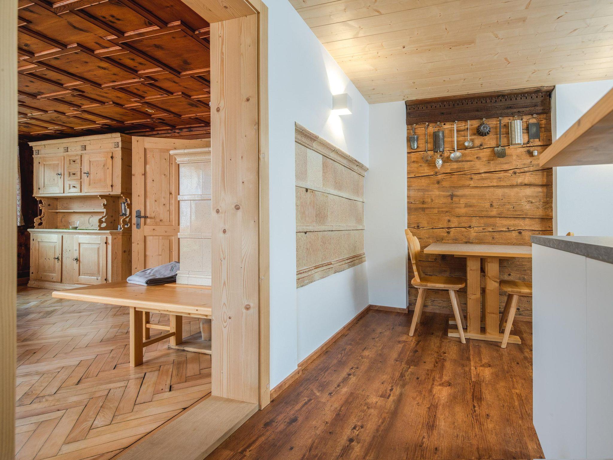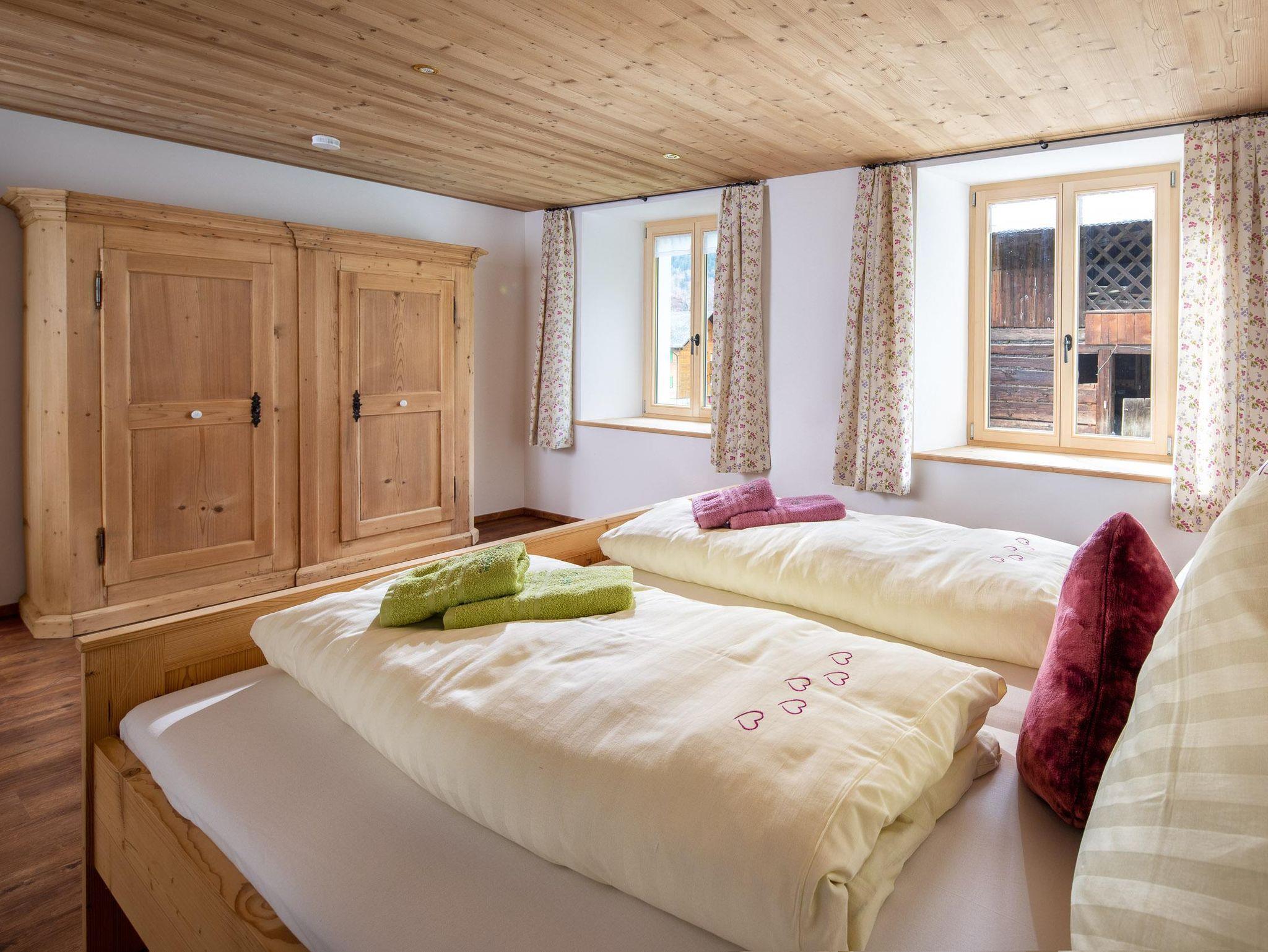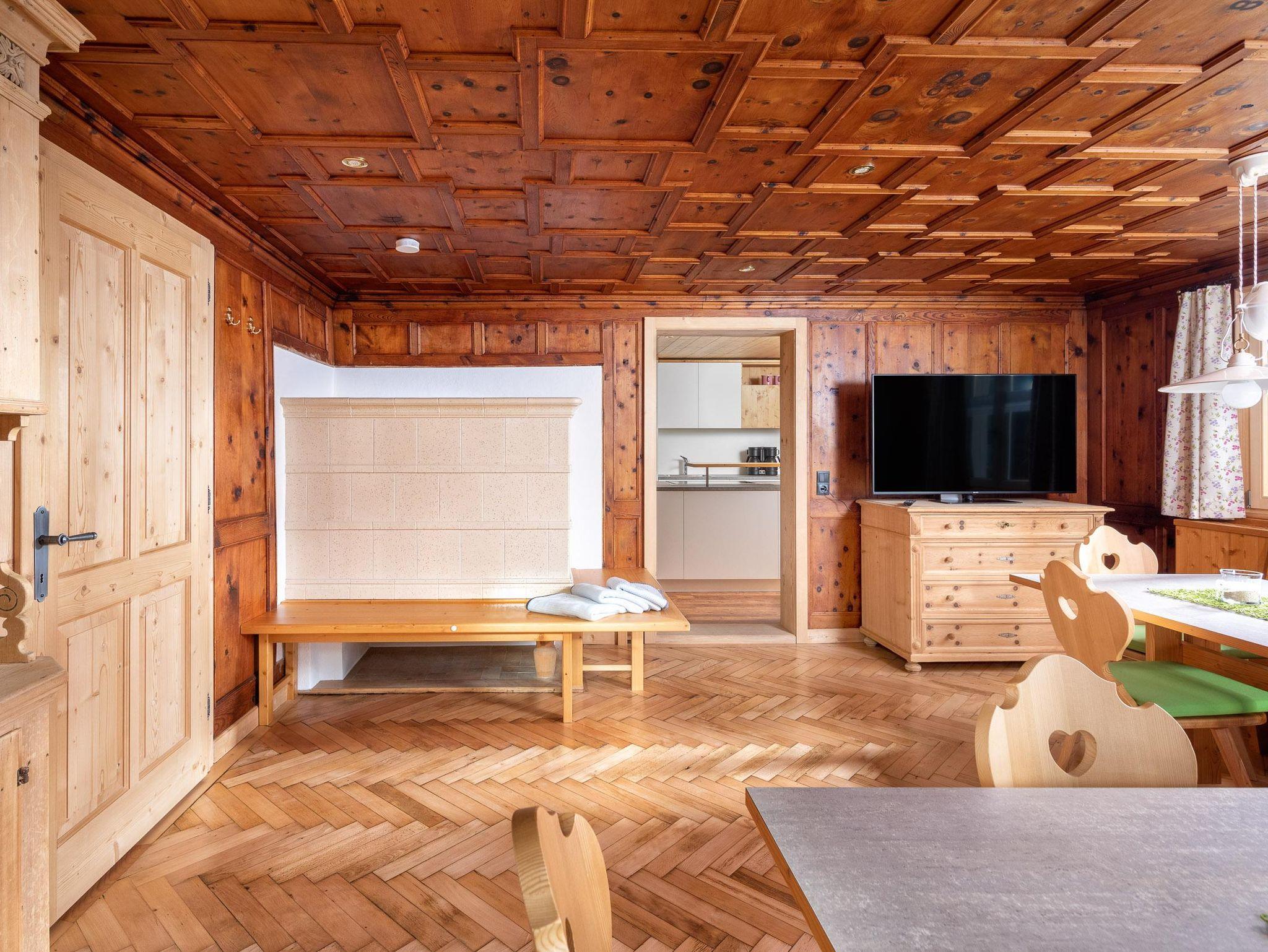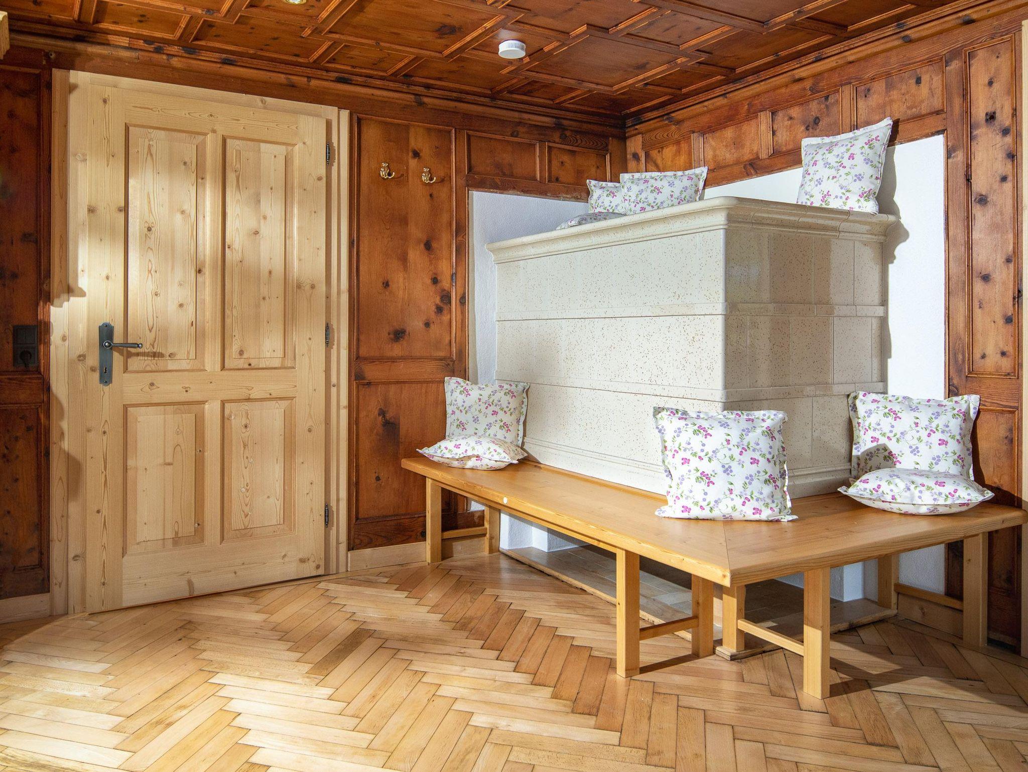 Ihr wohnt auf 2 Etagen, im EG findet Ihr die Küche, separates Esszimmer in einer Montafoner Stube mit TV, 2 Schlafzimmer mit Doppelbett, 1 Dusche/WC, Waschmaschine und 1 separates WC. Im OG befindet sich die Sauna & Infrarotkabine mit Dusche, Ruheraum, 1 Schlafzimmer mit Doppelbett, 2 Schlafzimmer mit je 1 Doppelbett und 1 Einzelbett, 1 Dusche/WC, 1 separates WC und 1 Lesezimmer mit TV und Couch.