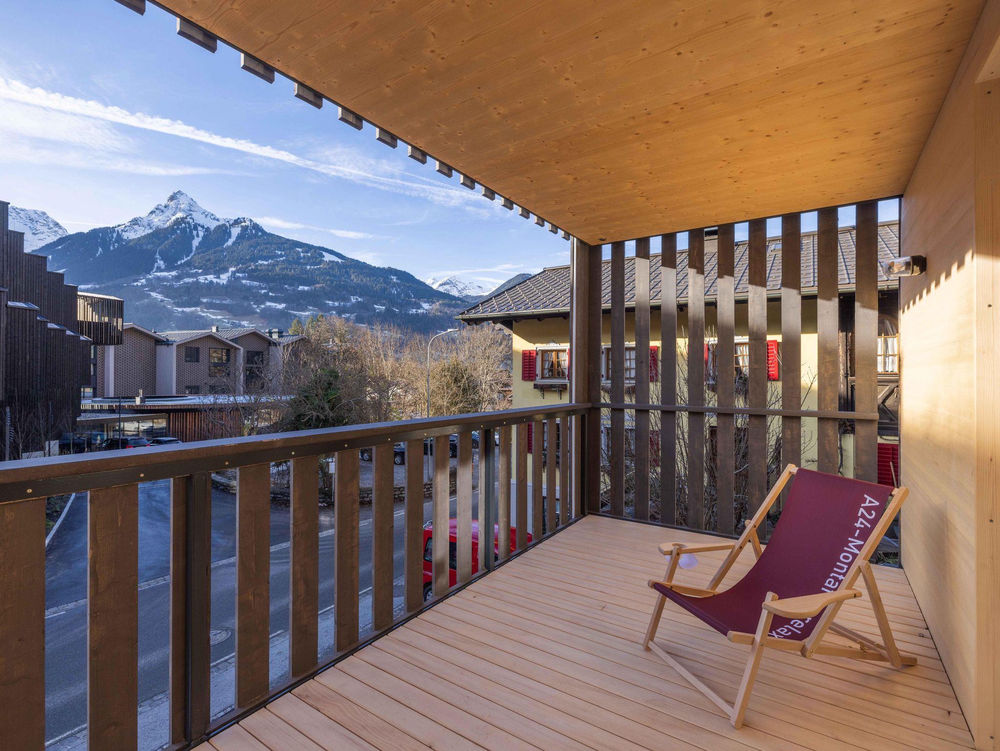 für 4 bis 6 Personen. Wohnfläche 76 m², Balkon 21 m2 mit Bergblick