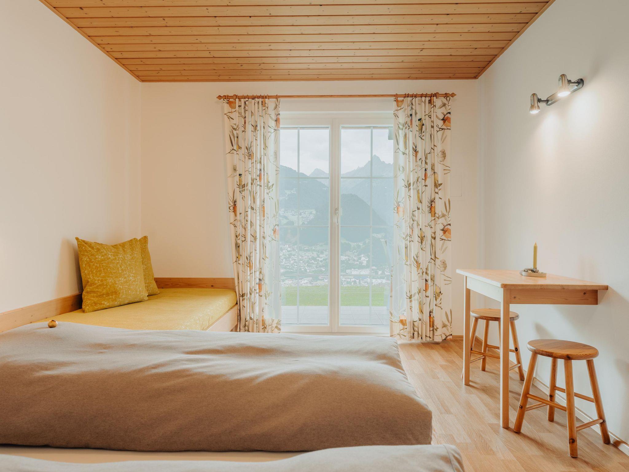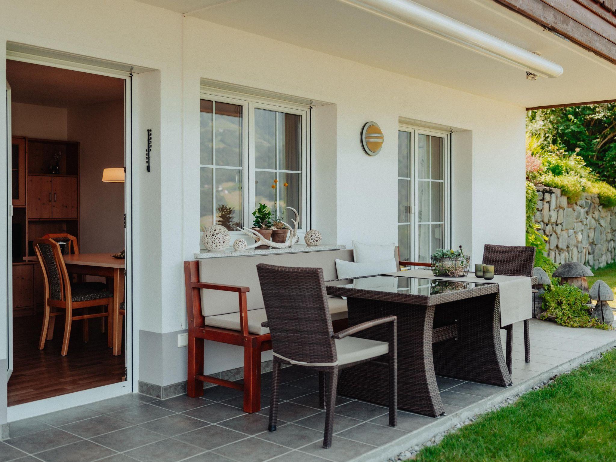 Unser Haus befindet sich in ruhiger, sehr sonniger Südhanglage, 1 km vom Ortszentrum entfernt, ca. 100 Höhenmeter oberhalb von Schruns. Die Wohnung hat einen separaten Eingang im Parterre. Die modern eingerichtete Küche ist mit Geschirrspüler, Kühlschrank mit Gefrierfach, Backrohr, Mikrowelle, Wasserkocher, Kaffeemaschine und komplettem Inventar ausgestattet. Als besonderen Komfort bieten wir Ihnen in jedem der beiden Schlafzimmer Dusche und WC. Für Schi- und Wanderschuhe finden Sie Platz im Trockenraum. Nach einem ereignisreichen Tag können Sie sich in unserer Sauna oder im Solarium entspannen. Auf der eigenen Terrasse und Liegewiese können Sie den traumhaft schönen Ausblick über Schruns und Umgebung sowie eine imposante Bergkulisse genießen.