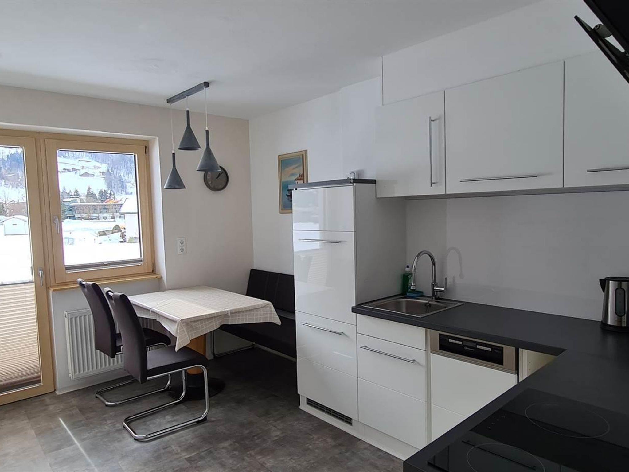 Garderobe, 2 Schlafzimmer mit Waschtisch und TV. Eine Wohnküche, Abstellraum für nasse Bekleidung und Schuhe. Eine Dusche mit