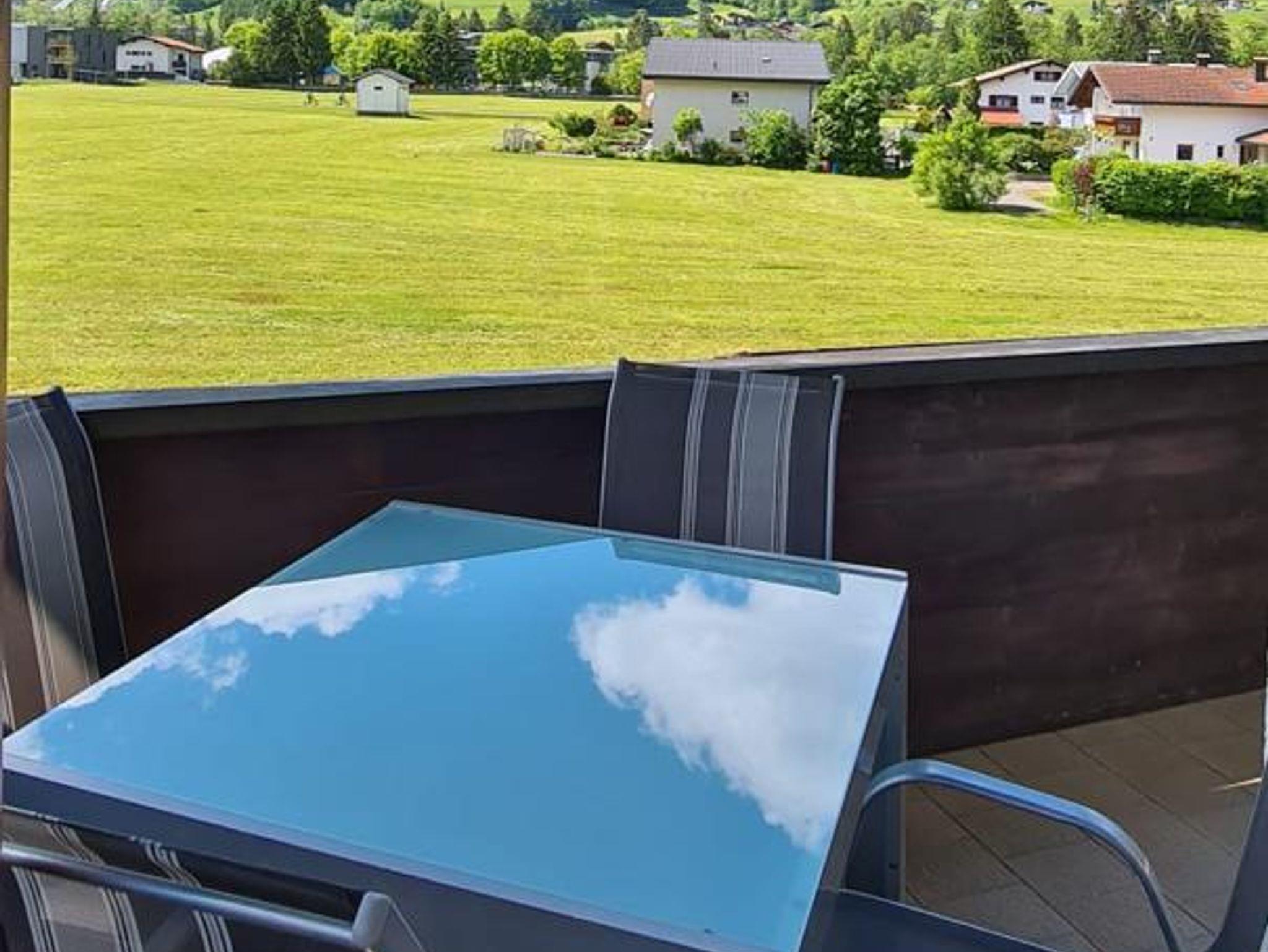 Von einem großen Balkon genießen sie den Ausblick auf die Montafoner Bergwelt.