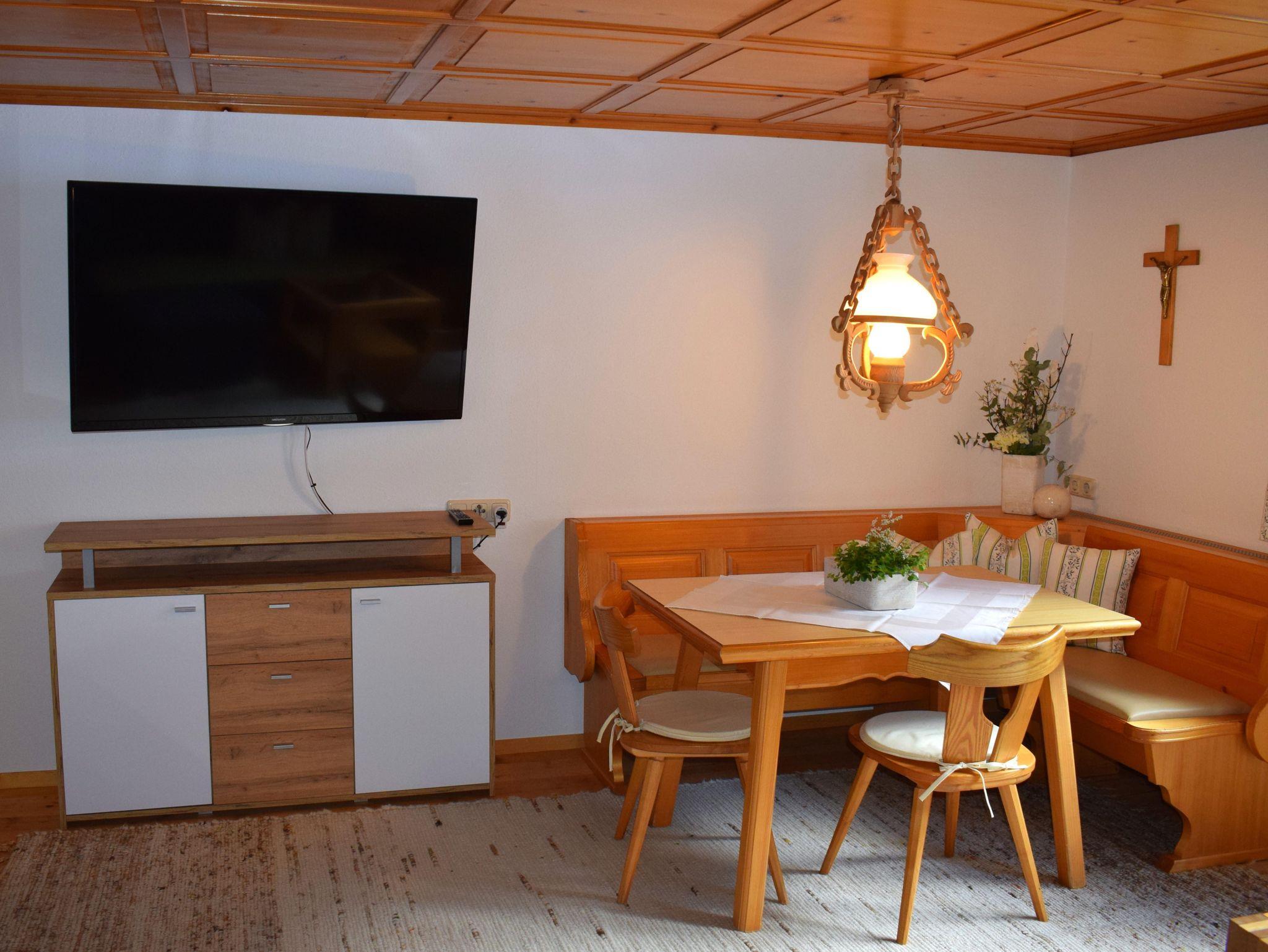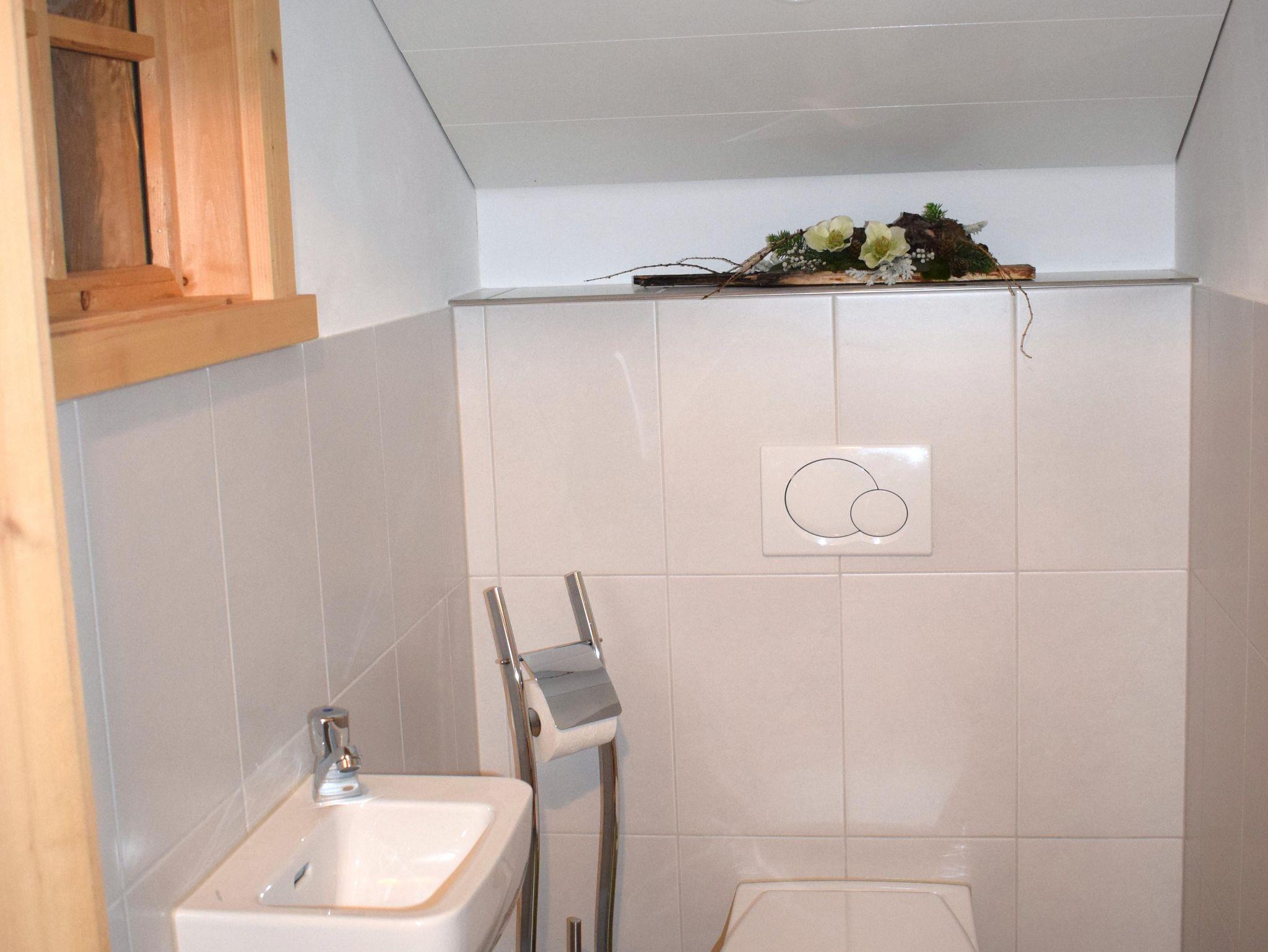 Eine Wohnküche, ein Doppelzimmer, ein Zweibettzimmer, Dusche, separates WC, kleine Garderobe und ein Trockenraum für Ski und Schuhe sind vorhanden.