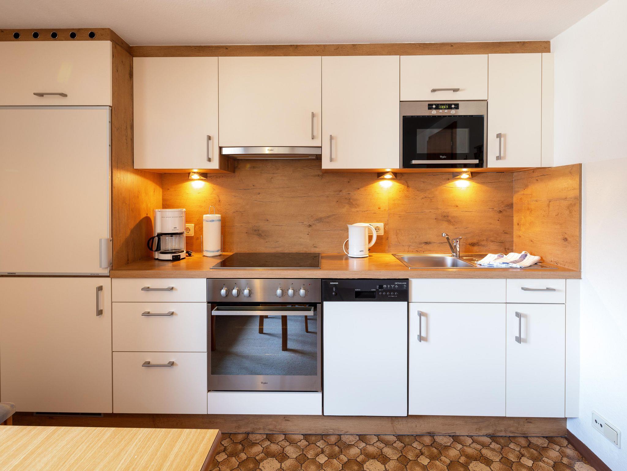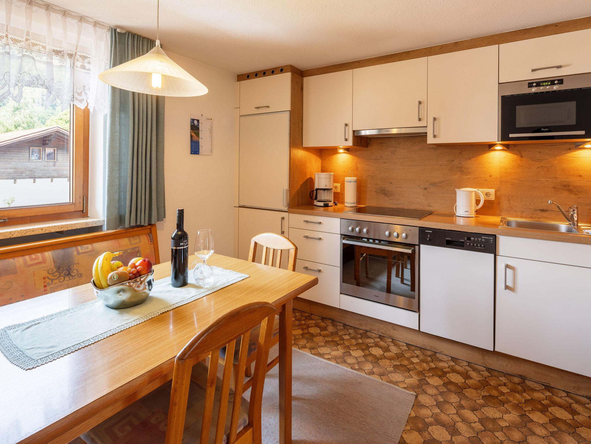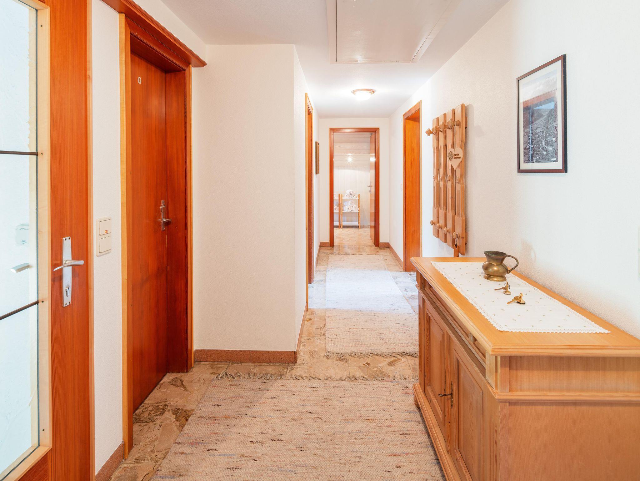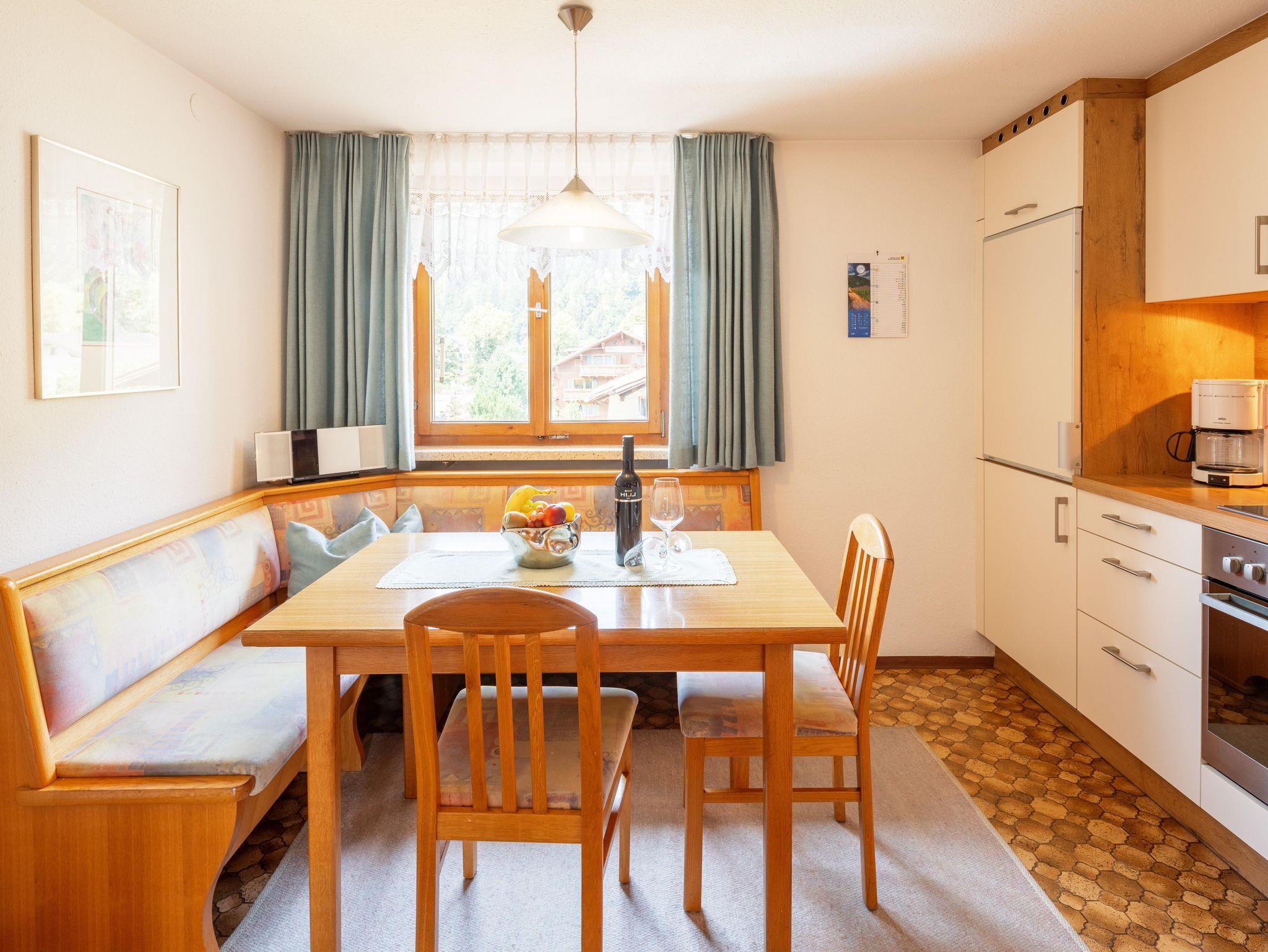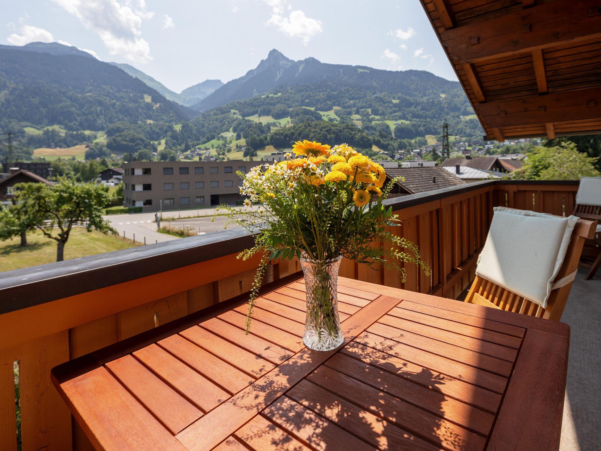 Ferienwohnung für 2-6 Personen, 84 m², 3 Doppelschlafzimmer, Wohnküche mit Geschirrspüler, Bad, separates WC, Südbalkon, Bettwäsche, Schikeller mit Schischuhtrockner, kostenloses W-LAN, Liegewiese mit Liegestühlen. Zentrale ruhige Lage an der nahen Litzpromenade, komfortable Ausstattung, Mitglied bei BergePLUS.