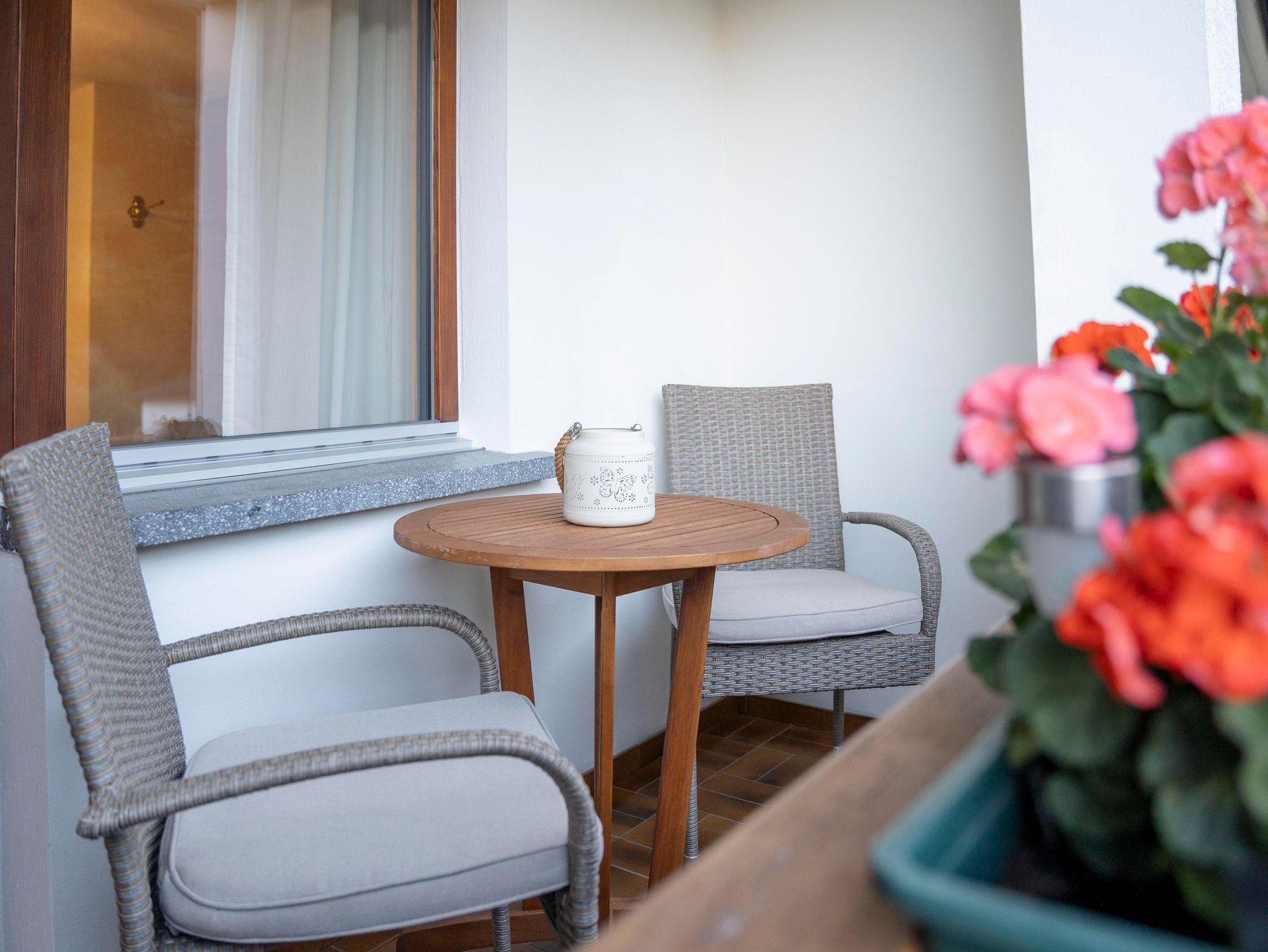 Die geräumige Ferienwohnung ROSA beträgt ca. 50 m². Die praktische Küche ist komplett neu eingerichtet. Für die Nespresso Maschine, bitte Kapseln mitbringen. 2 Plattenherd, Toaster und Wasserkocher stehen bereit. Das gemütliche Wohnzimmer wartet auf Gäste, die Entspannung und eine Auszeit vom Alltag suchen. Das helle Schlafzimmer mit Südbalkon regt zum Ausruhen an.