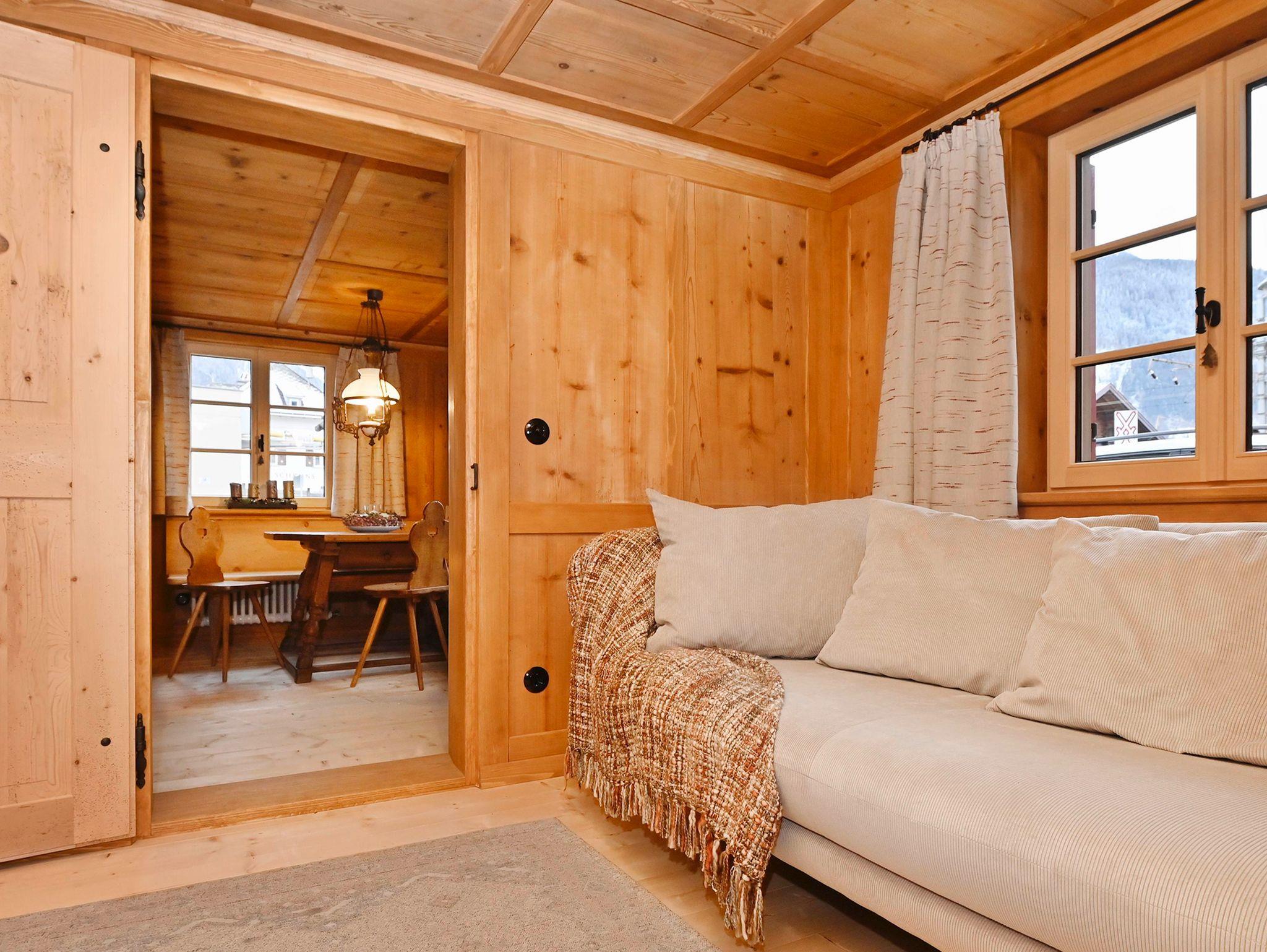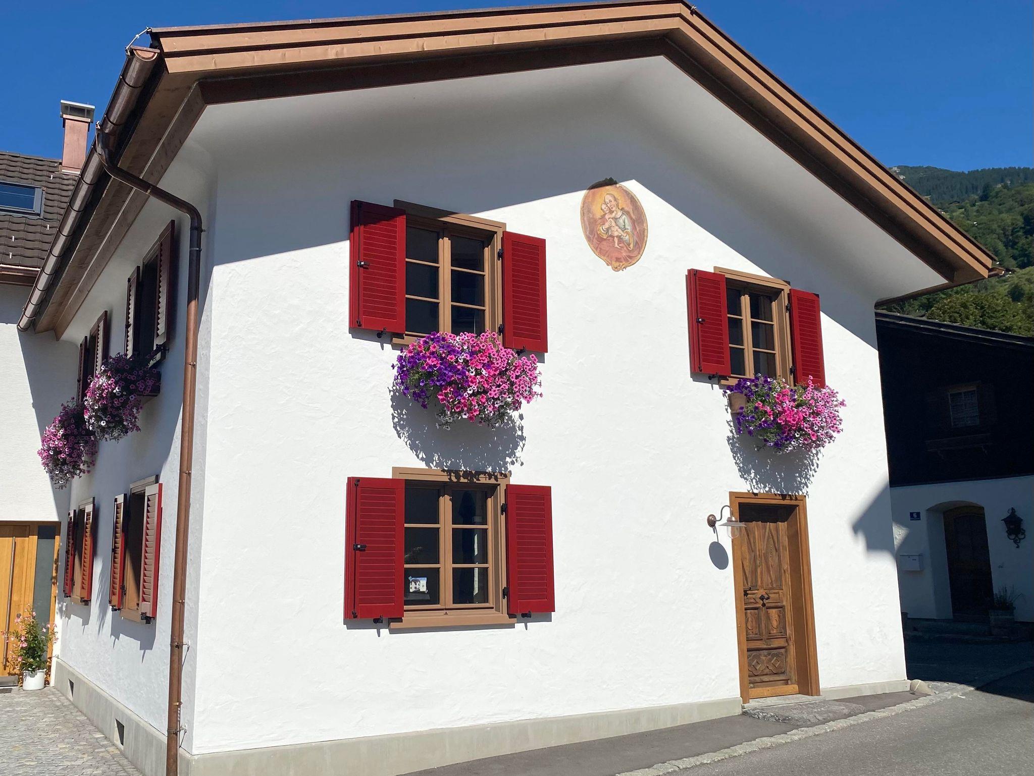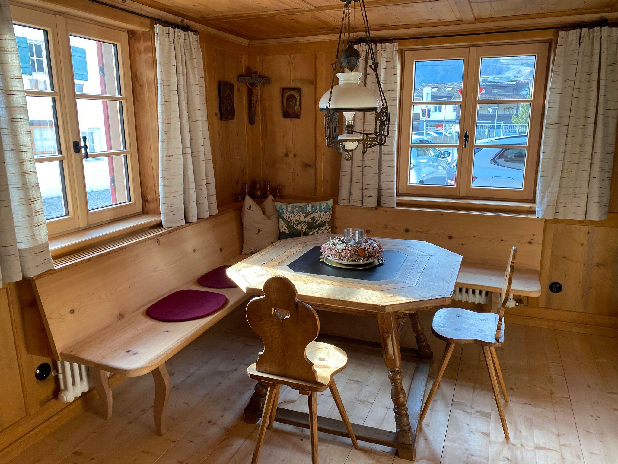 s’batlogg 8 liegt im Zentrum von Schruns und wurde mit viel Liebe zum Detail im Jahr 2022 neu erbaut. Es wurde darauf geachtet vorhandene Materialien aufzuarbeiten und wiederzuverwerten. Der gesamte Ess- und Wohnzimmerbereich wurde mit der bestehenden Vertäfelung ausgestattet. Fensterbretter aus altem, bereits im Haus vorhandenem Holz und viele weitere Details erschafften in liebevoller Kleinarbeit ein Kleinod, welches einem alten Maisäß bis ins Detail ähnelt und an Gemütlichkeit keine Wünsche offen lässt. Dadurch entstand ein heimeliges Wohngefühl, dass zusätzlich durch eine detailgetreue Renovierung eines über 100 jährigen Wandbildes auf der Fassade abgerundet wurde. Das batlogg8 ist ein außergewöhnlicher Ort, an dem man sich ausgezeichnet vom Trubel des Alltags zurückziehen und im Ambiente wie vor 100 Jahren neue Kraft schöpfen kann. Überzeugen Sie sich selbst von dem einmaligen Charme, den s’batlogg8 in neuem Glanz erstrahlen lässt.
