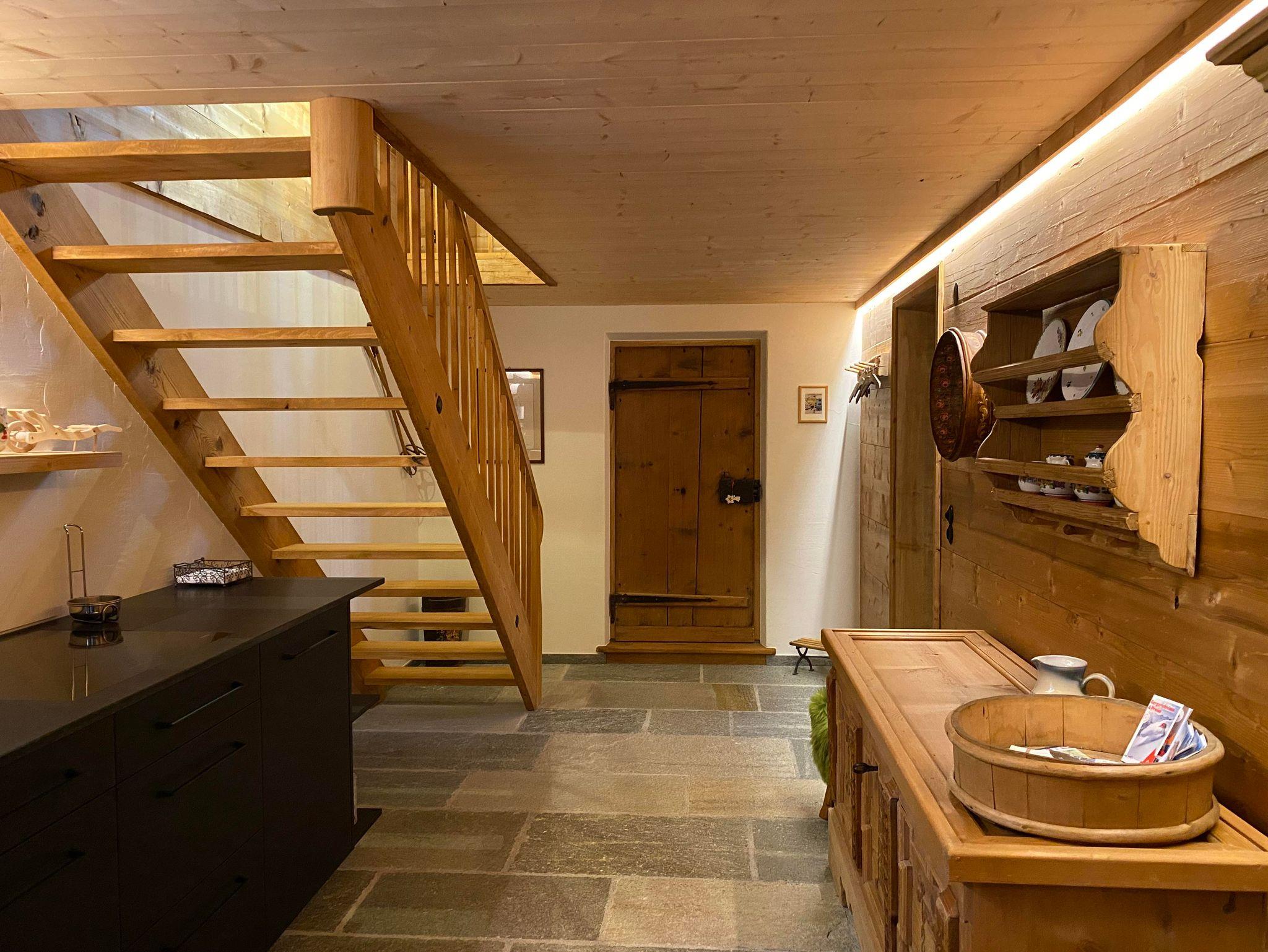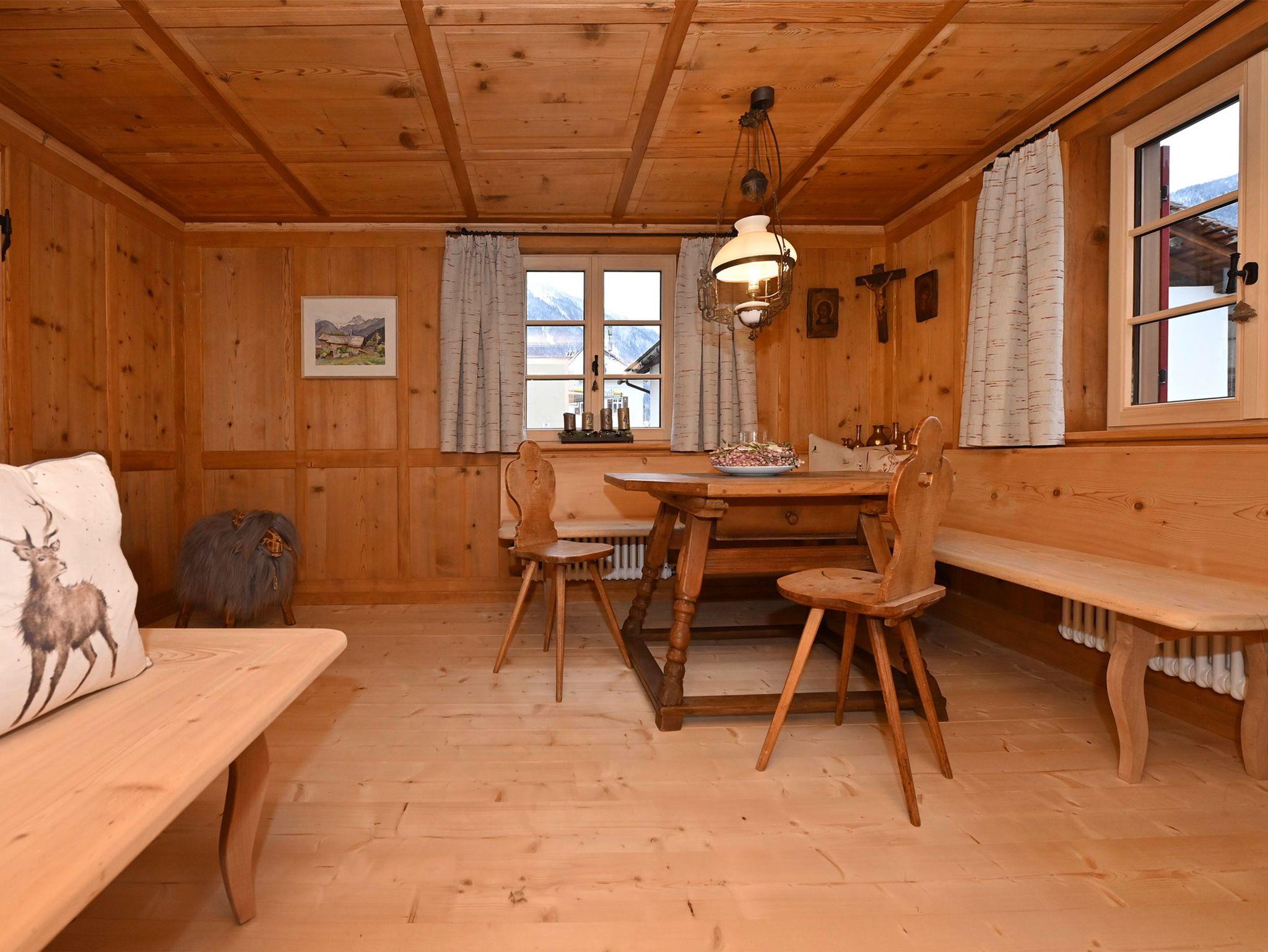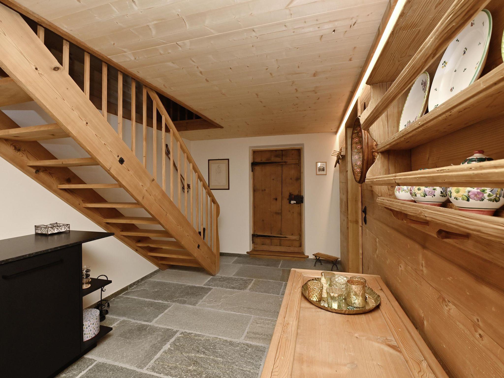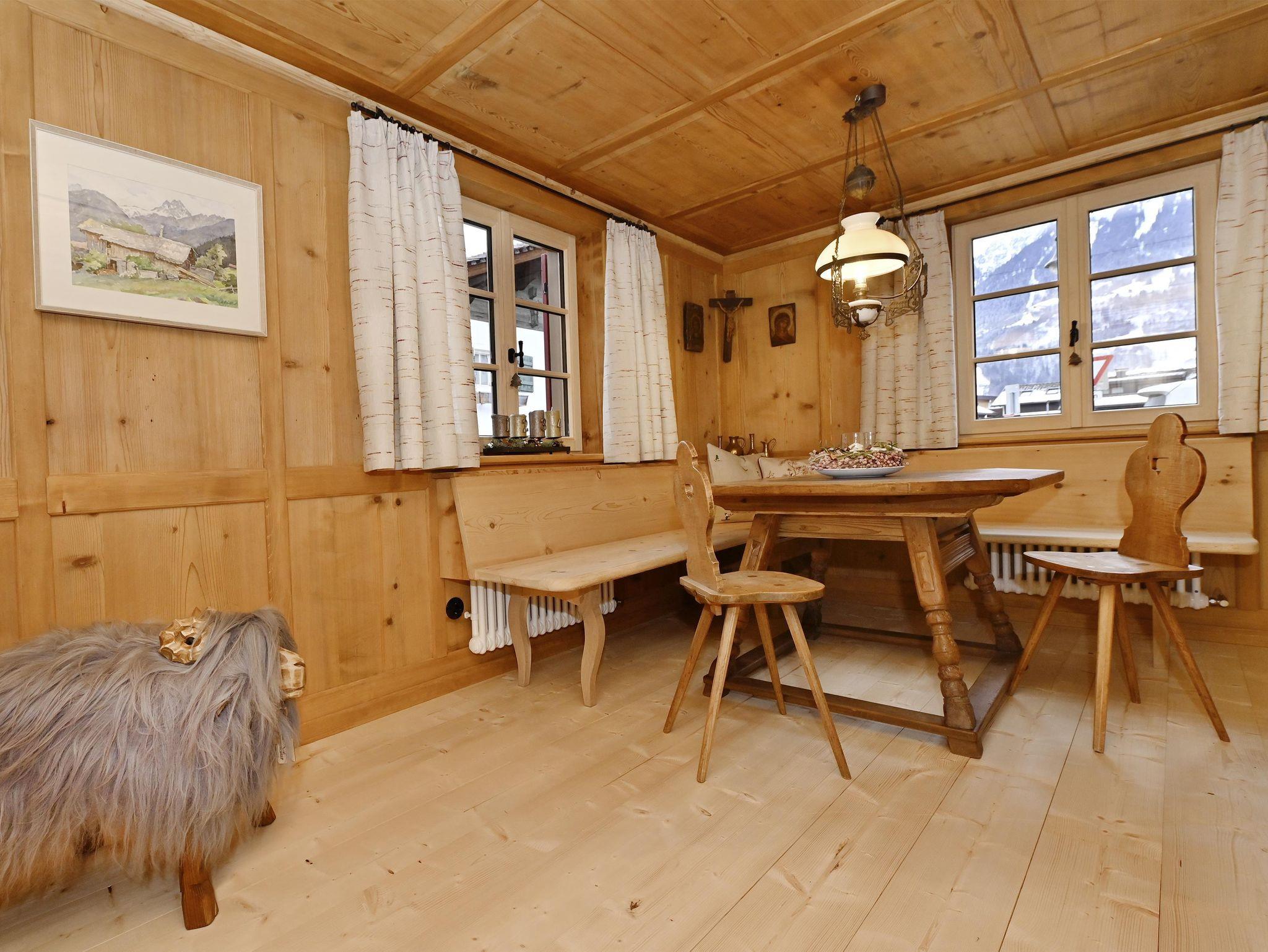 s’batlogg 8 liegt im Zentrum von Schruns und wurde mit viel Liebe zum Detail im Jahr 2022 neu erbaut. Es wurde darauf geachtet vorhandene Materialien aufzuarbeiten und wiederzuverwerten. Der gesamte Ess- und Wohnzimmerbereich wurde mit der bestehenden Vertäfelung ausgestattet. Fensterbretter aus altem, bereits im Haus vorhandenem Holz und viele weitere Details erschafften in liebevoller Kleinarbeit ein Kleinod, welches einem alten Maisäß bis ins Detail ähnelt und an Gemütlichkeit keine Wünsche offen lässt. Dadurch entstand ein heimeliges Wohngefühl, dass zusätzlich durch eine detailgetreue Renovierung eines über 100 jährigen Wandbildes auf der Fassade abgerundet wurde. Das batlogg8 ist ein außergewöhnlicher Ort, an dem man sich ausgezeichnet vom Trubel des Alltags zurückziehen und im Ambiente wie vor 100 Jahren neue Kraft schöpfen kann. Überzeugen Sie sich selbst von dem einmaligen Charme, den s’batlogg8 in neuem Glanz erstrahlen lässt.