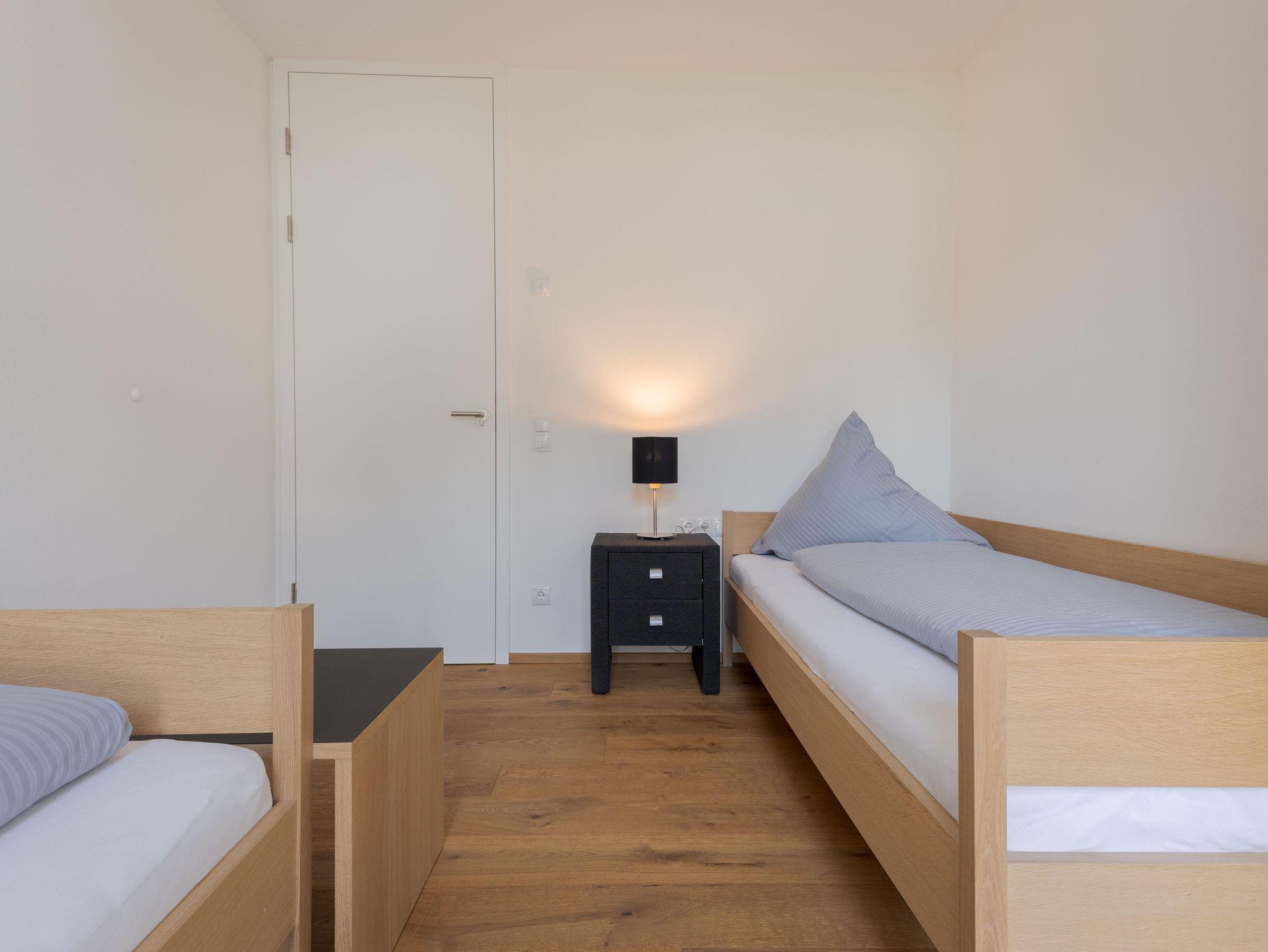 1 Doppelschlafzimmer,1 Schlafzimmer mit 2 Einzelbetten und Schlafsofa im Wohnzimmer