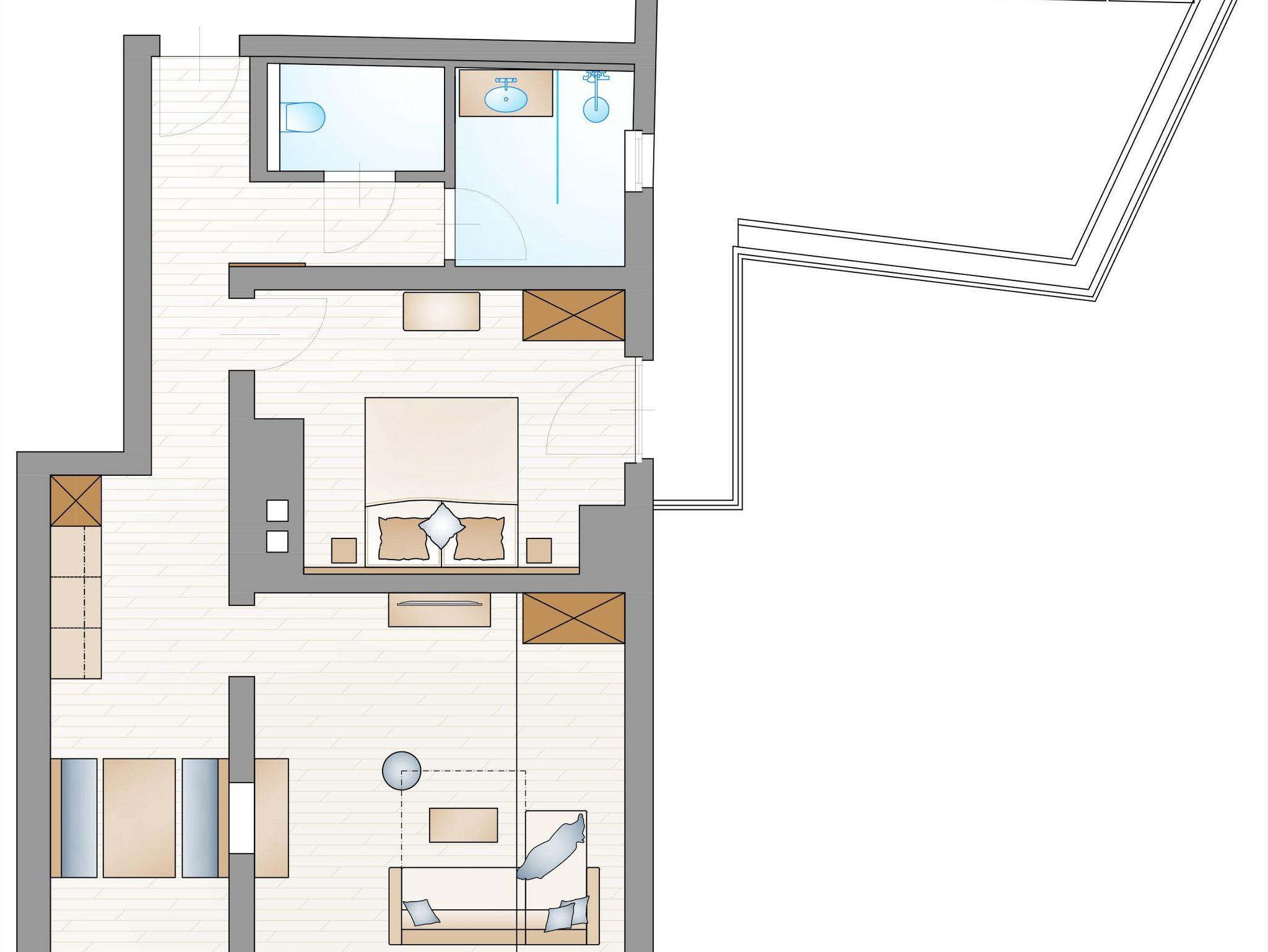 - Barrierefrei im 2. Stock (eine Stufe zwischen Lift und Apartment)