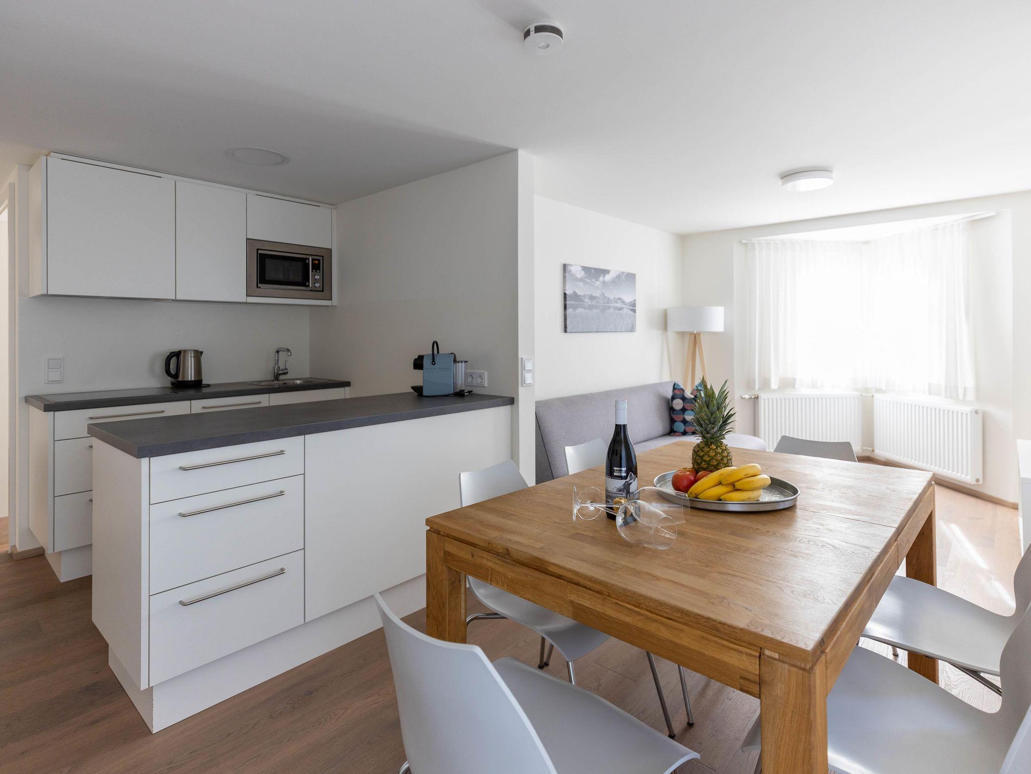 Fünf neue, moderne Appartments mit jeweils zwei getrennten Schlafzimmern, Wohnküche, Bad mit Dusche/WC und WC extra.