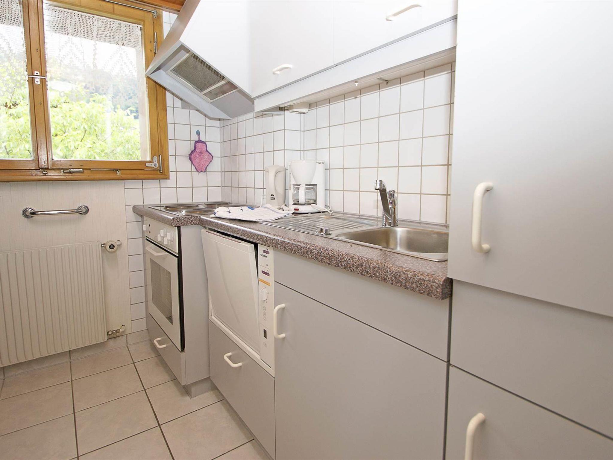 Wohnung für 1-4 Personen, 38 m², mit 1 Schlafzimmer, 1 Wohn-Schlafzimmer mit Eckbank, Sofa und Kabel-TV, sehr gut ausgestattete Küche mit Spülmaschine, DU/ WC und Balkon.