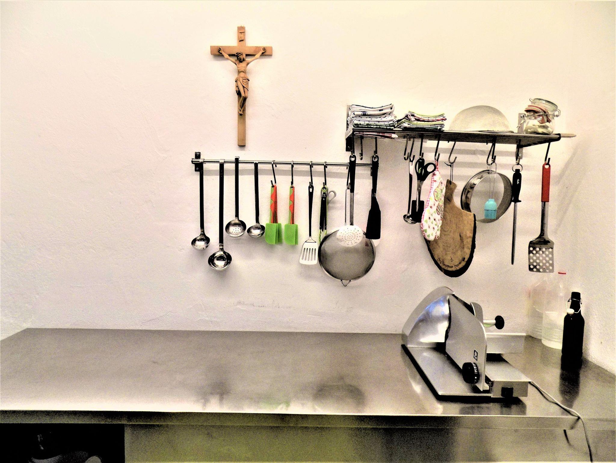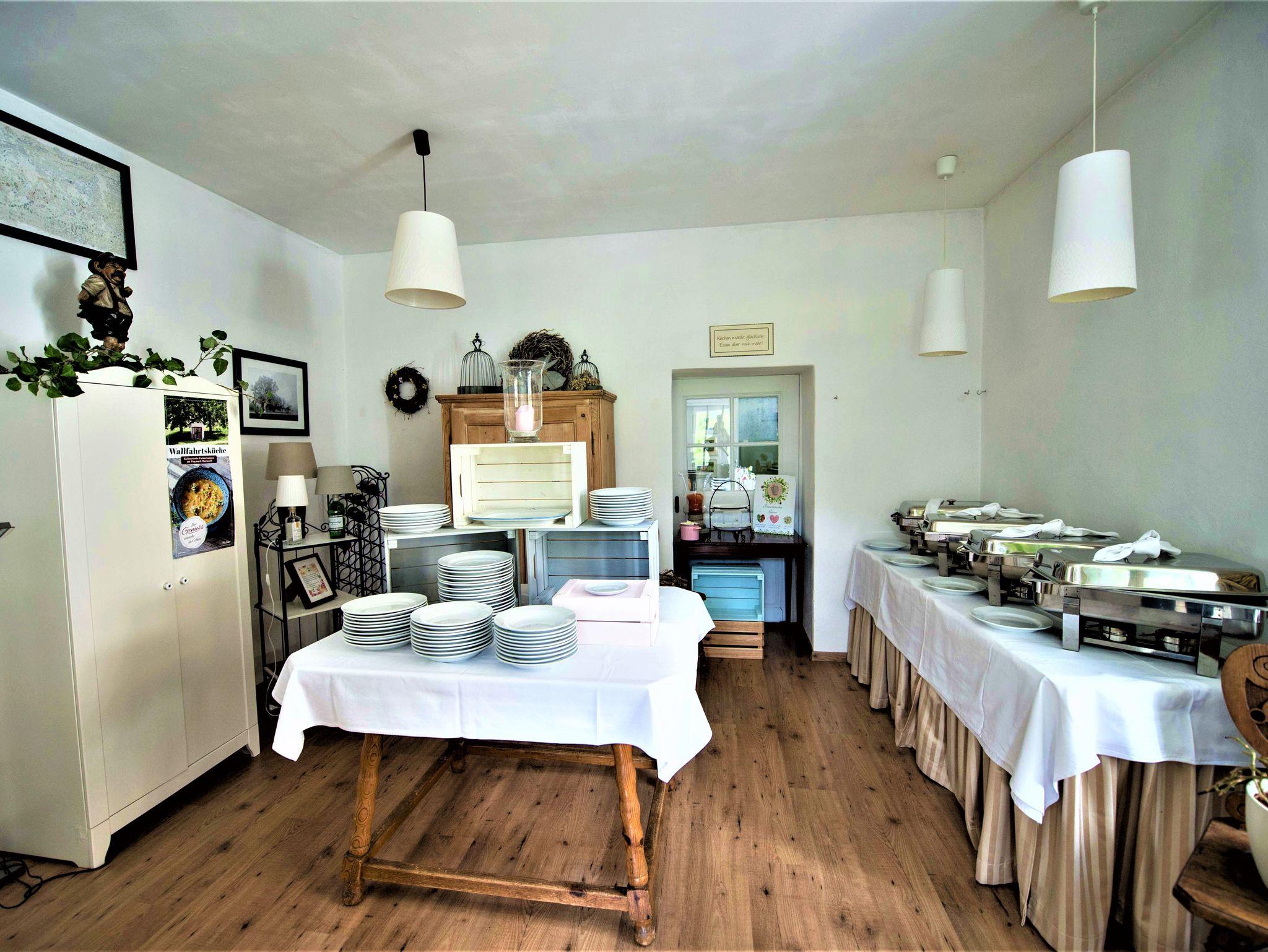 2 große Vorräume, voll ausgestattete Küche (Herd, Mikrowelle, Wasserkocher, Brotschneidemaschine, Kaffeemaschine, Geschirr, Geschirrspülmaschine, Kühlschrank, Tiefkühlschrank,...) Der Kühlschrank ist bestückt mit Getränken die am Abreisetag nach Entnahmemenge abgerechnet werden.