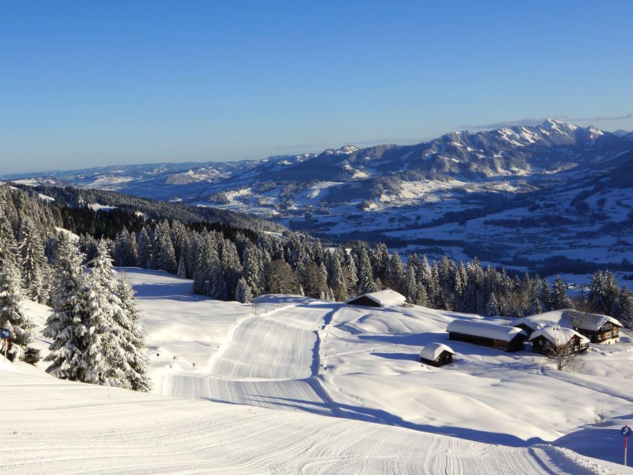 The area surrounding Schwarzenberg is a paradise for nature lovers and outdoor enthusiasts. With a ski slope and a mountain/cable car just 3 km away, the region offers excellent conditions for winter sports enthusiasts. In summer, the area also offers a wide range of opportunities for hiking and cycling tours through the impressive mountain landscape. The nearest village centre and shopping facilities are just 2 km away, while the ski bus can be reached in just 700 m.