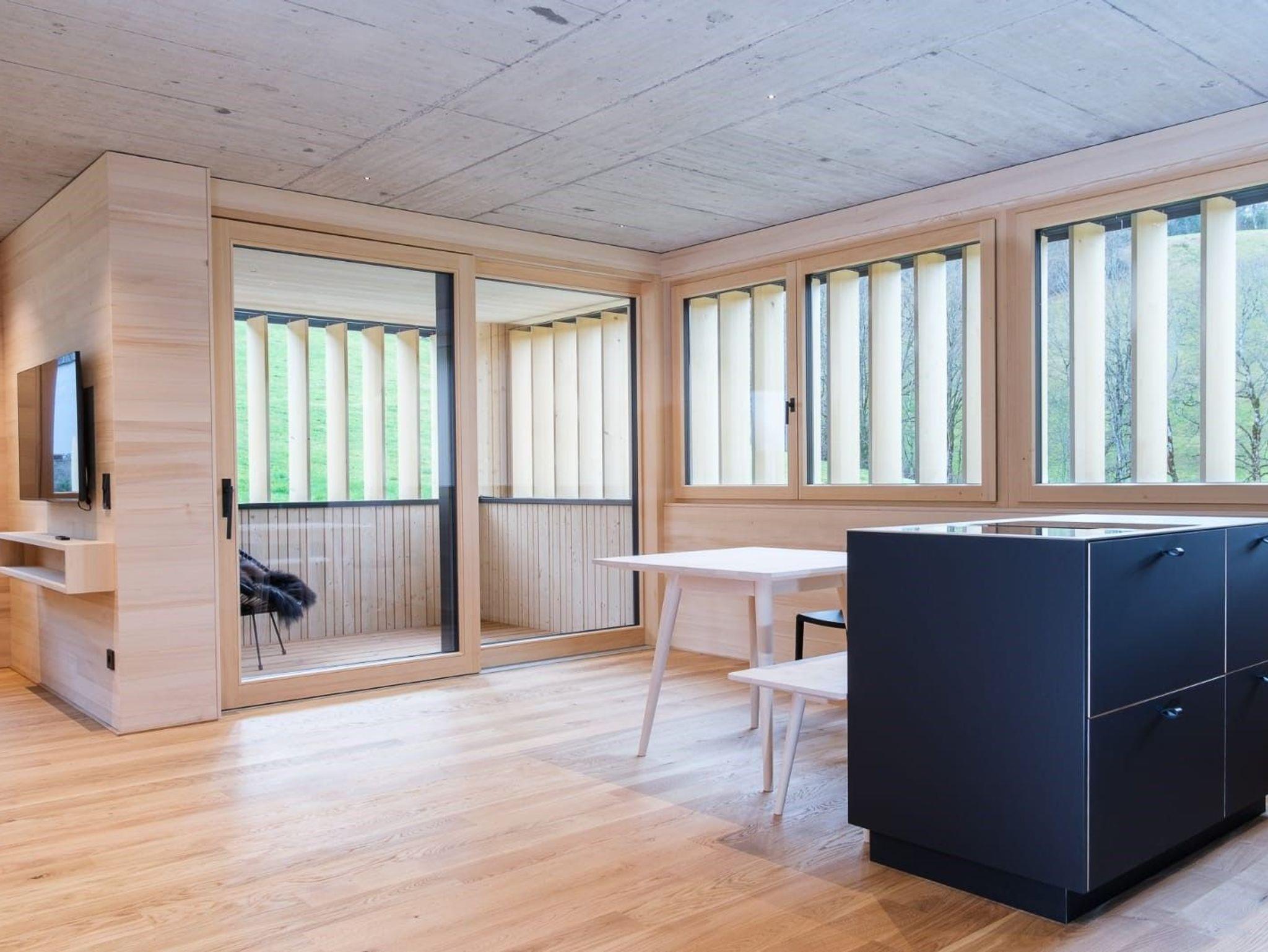 In den Jahren 2023 gebaut - ein an die Architektur des Bregenzerwaldes angepasstes Haus mit 8 Ferienwohnungen in höchster Ausstattungsqualität. Jede unserer Ferienwohnungen hat einen atemberaubenden Blick in die Natur. Viel Holz und etwas Sichtbeton schaffen eine zurückgenommene, jedoch heimelige Atmosphäre, Behaglichkeit und Ruhe durch die Reduktion von Material und Farbe. Direkt vor der Haustüre starten Wander-, Ski- oder Radtouren.