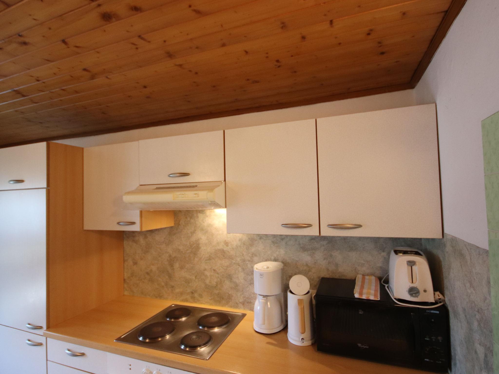 3-room apartment 80 m2, on the top floor. Partly with sloping ceilings: entrance hall. 1 room with 1 sofabed, 1 double bed and hand-basin. 1 double bedroom with hand-basin. Exit to the balcony. Kitchen-/living room (4 hot plates, oven, toaster, kettle, electric coffee machine) with satellite TV. Exit to the balcony. Shower, sep. WC. Balcony. Terrace furniture. Very beautiful view of the countryside. Facilities: Internet (WiFi, free). Please note: suitable for families. Non-smokers only.