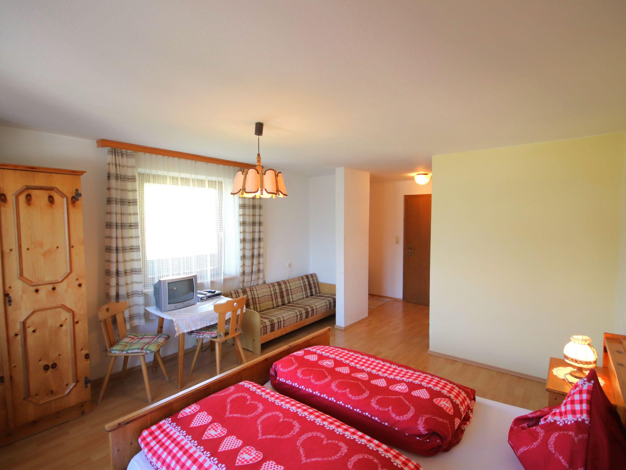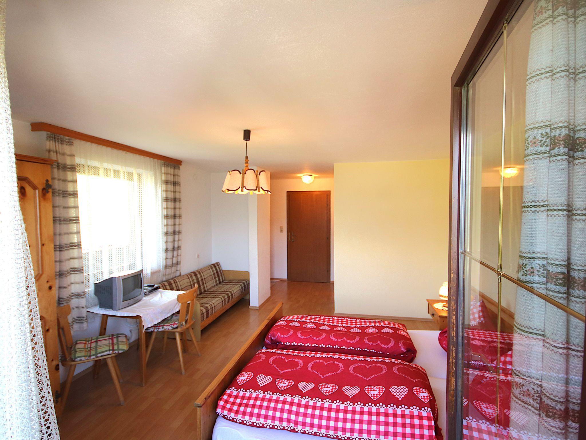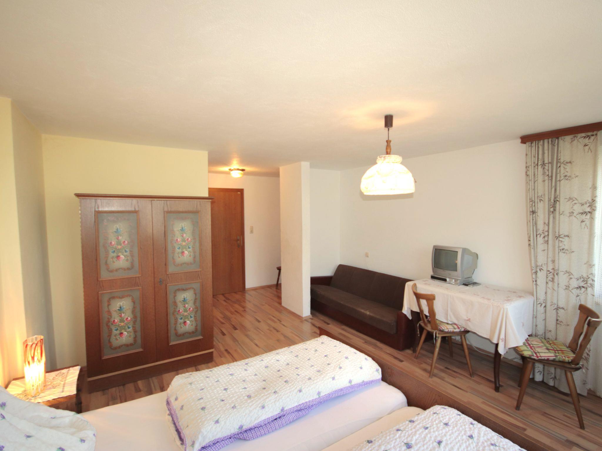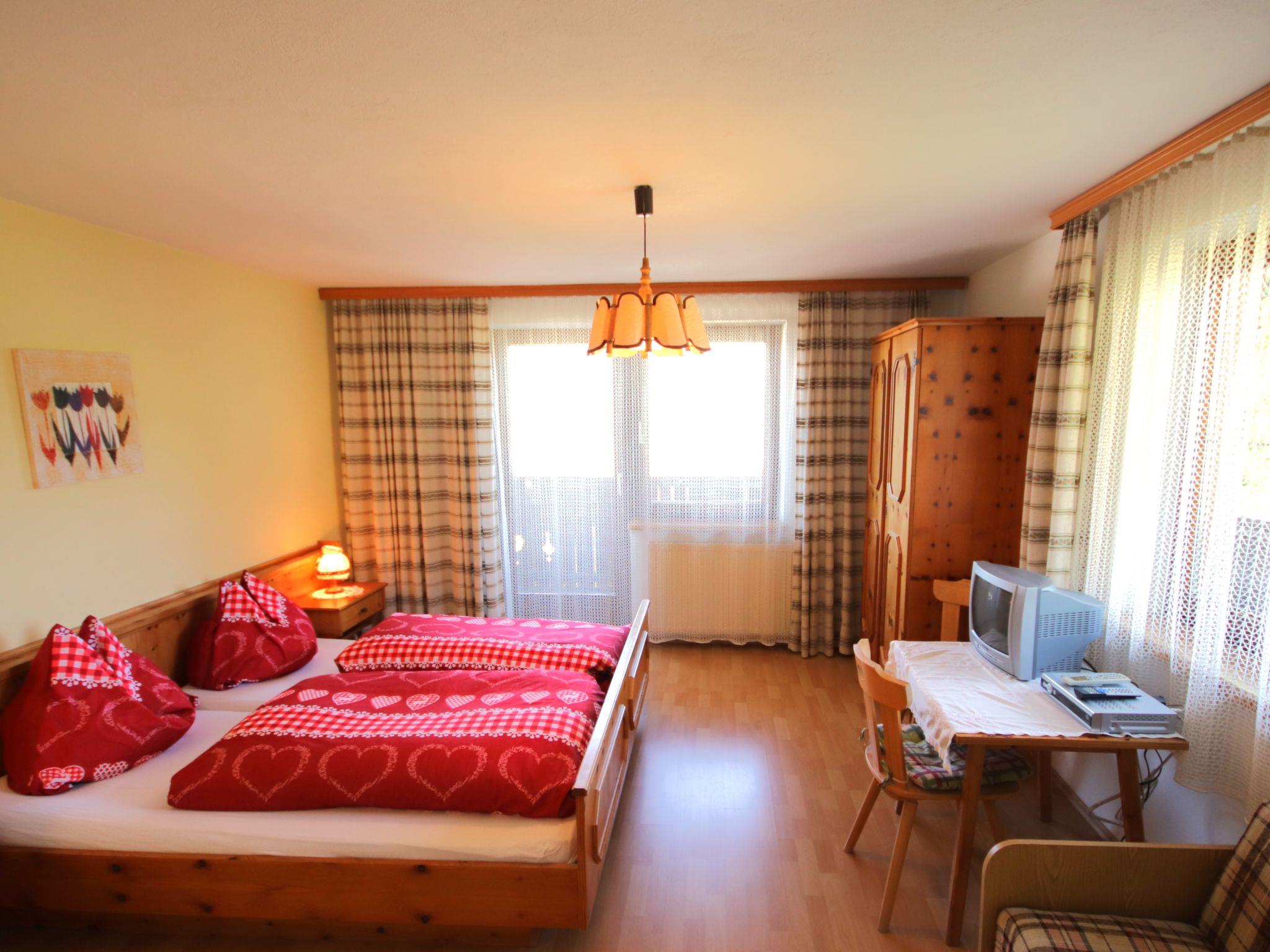3-room apartment 80 m2 on 1st floor. Object suitable for 5 adults. Spacious, wooden furniture furnishings: entrance hall. 1 room with 1 bed, 1 double bed, shower/WC and satellite TV. Exit to the balcony. 1 double bedroom with shower/WC. Exit to the balcony. Kitchen-/living room (oven, dishwasher, 4 ceramic glass hob hotplates, microwave, freezer) with dining table and satellite TV (flat screen). Exit to the balcony. Shower/WC. Balcony 12 m2. Very beautiful panoramic view of the mountains and the valley. Facilities: Internet (WiFi, free). Please note: suitable for families. Non-smokers only. No lift.