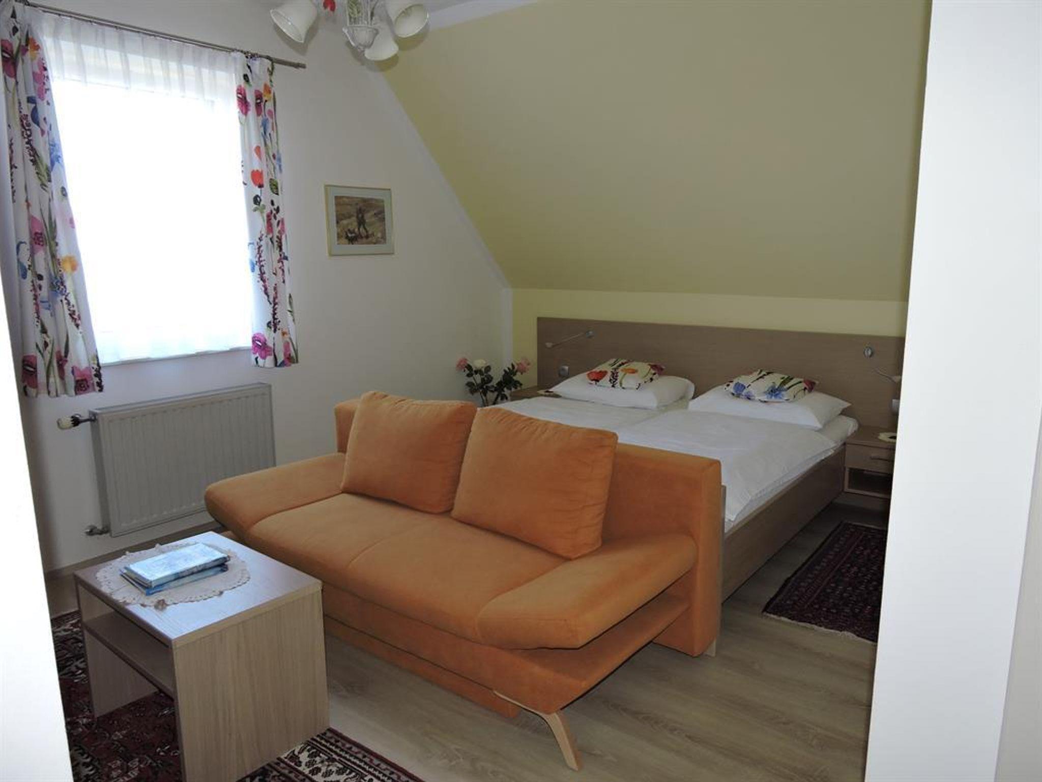 Himmelbettzimmer mit Bad/WC, Sat TV Durchwahltelefon, Minibar und Radio. Frühstücksbuffet, Hallenbad, Sauna Fitnessraum im Haus. Große Sonnenterrasse. Eintrittsermäßigung für die Heiltherme Bad Waltersdorf