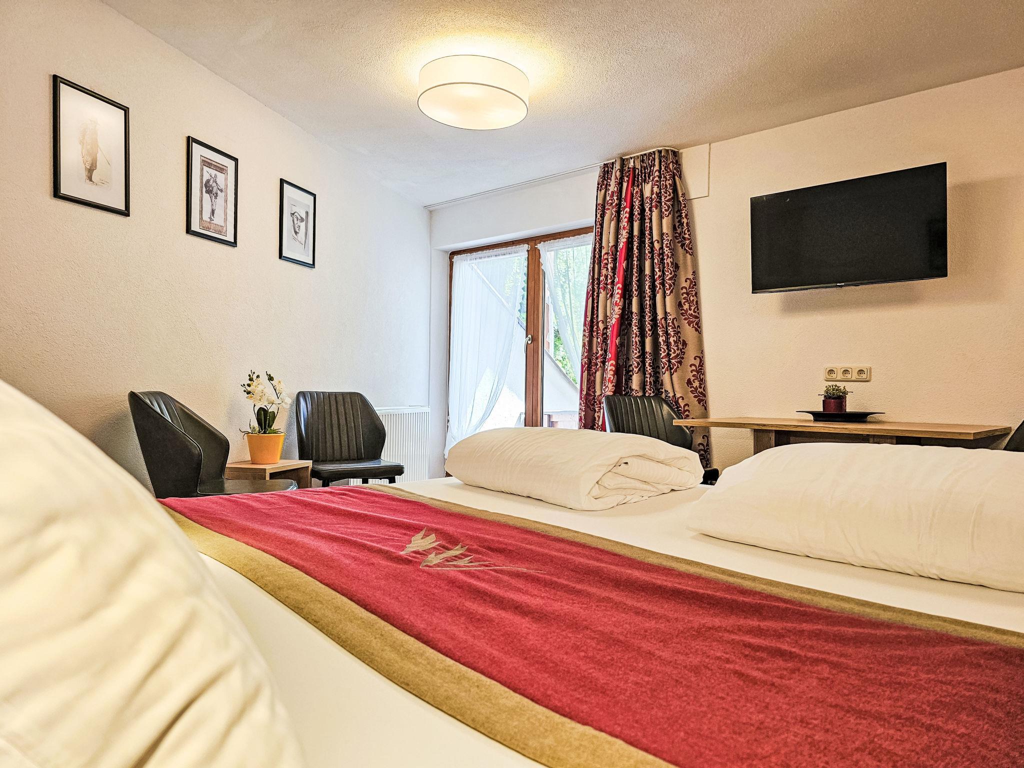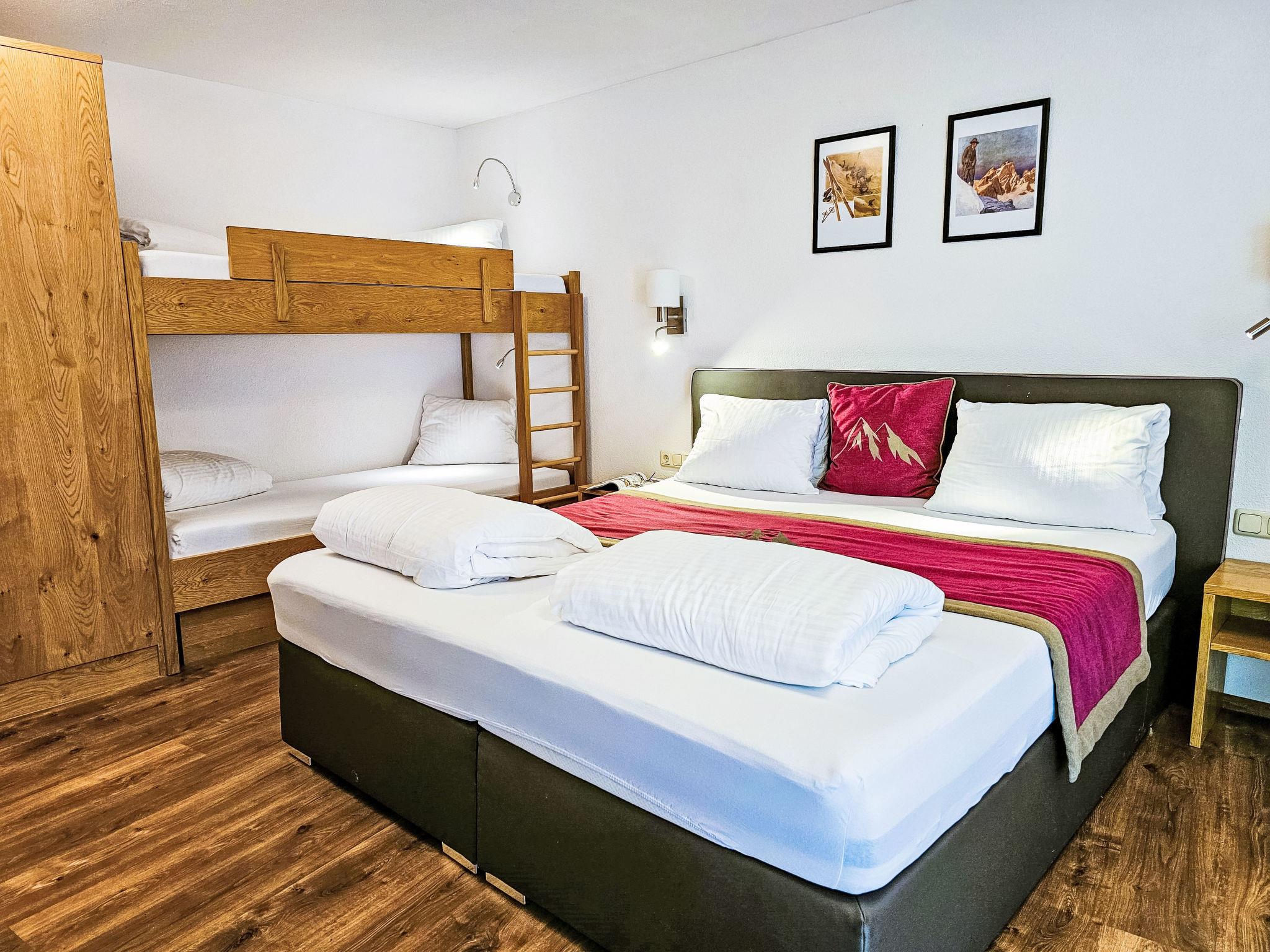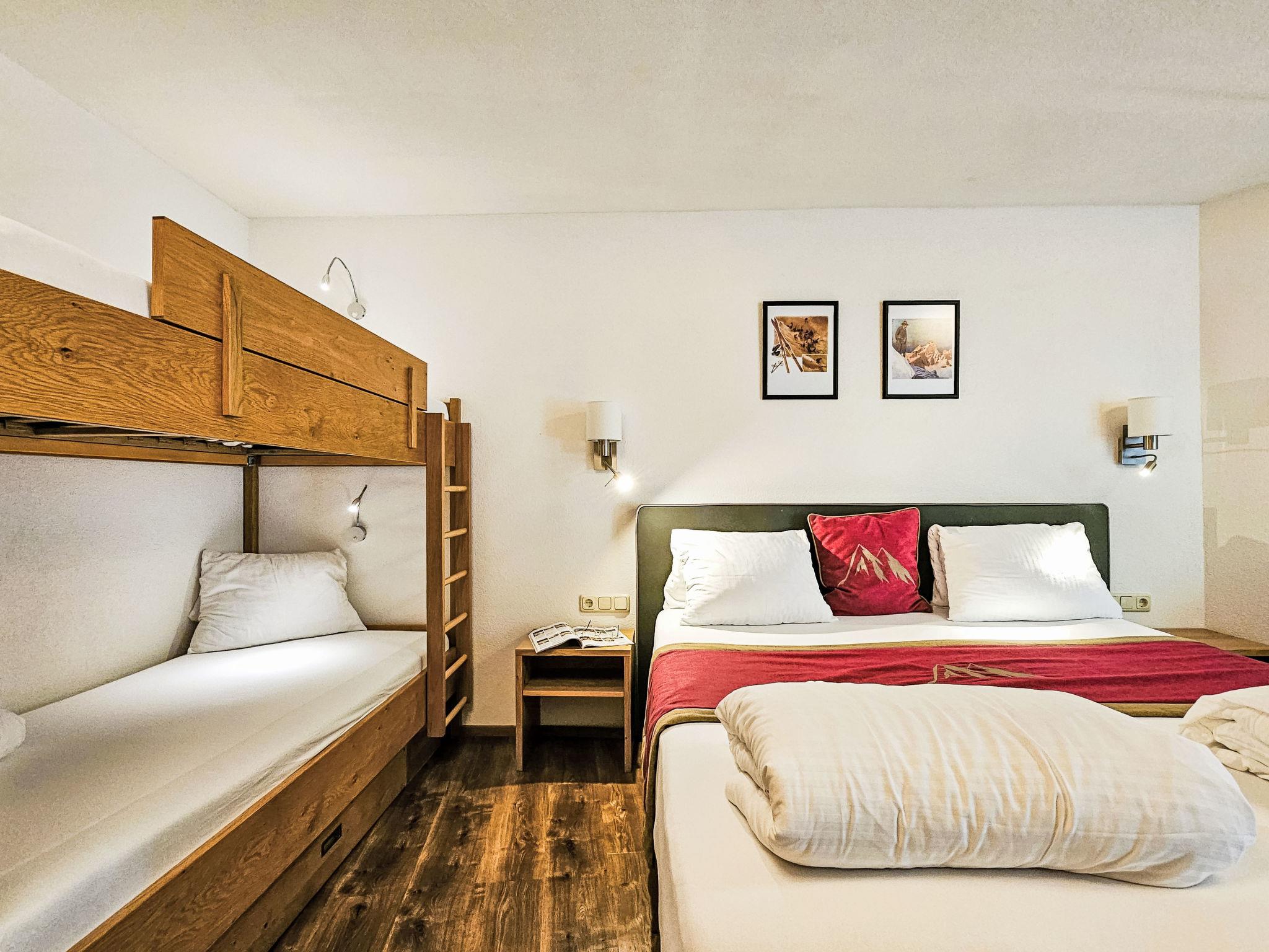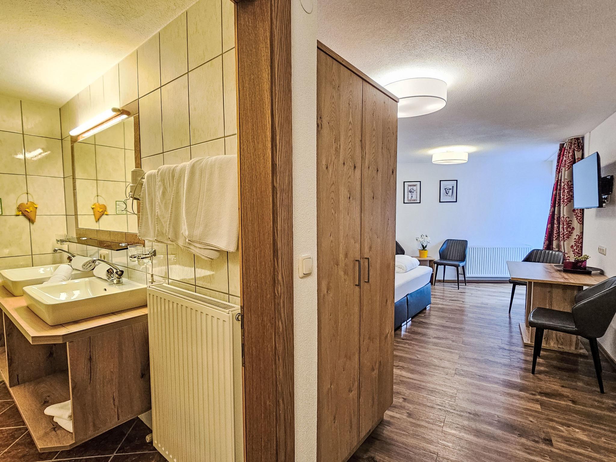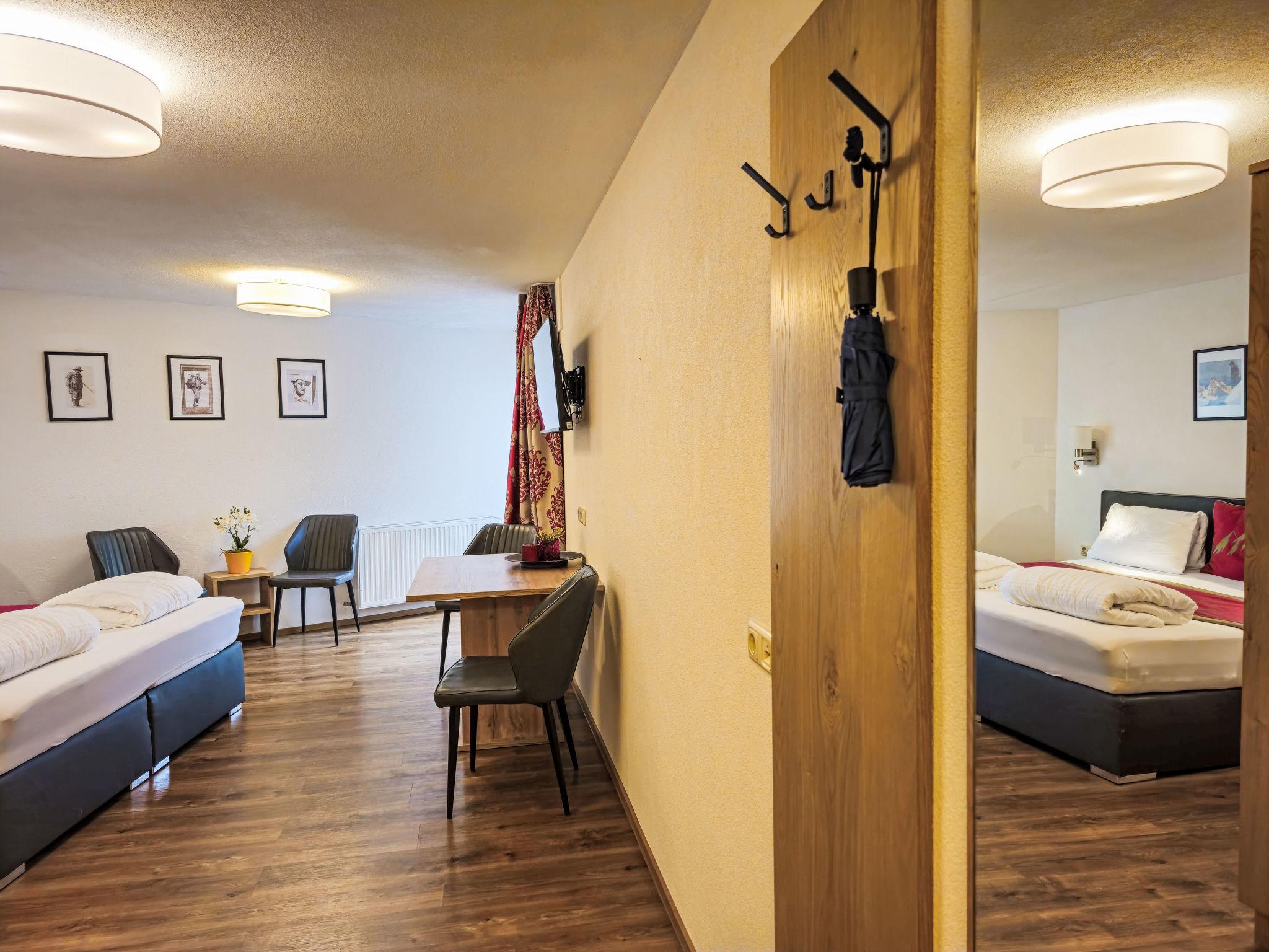 "Trisanna", 1-room studio 35 m2 on 1st floor. Object suitable for 2 adults + 2 children. Spacious, stylish and cosy furnishings: living/sleeping room with 1 x 2 bunk beds (90 cm, length 200 cm), 1 double bed, dining table and satellite TV (flat screen). Exit to the balcony. Small kitchenette in the entrance (4 induction hot plates, toaster, kettle, microwave, electric coffee machine). Shower/WC. Wooden floors. Small balcony 5 m2. Balcony furniture. Beautiful, of the valley and the resort. Facilities: hair dryer. Internet (WiFi, free). Parking (1 car). Suitable for families. Maximum 1 pet/ dog allowed.