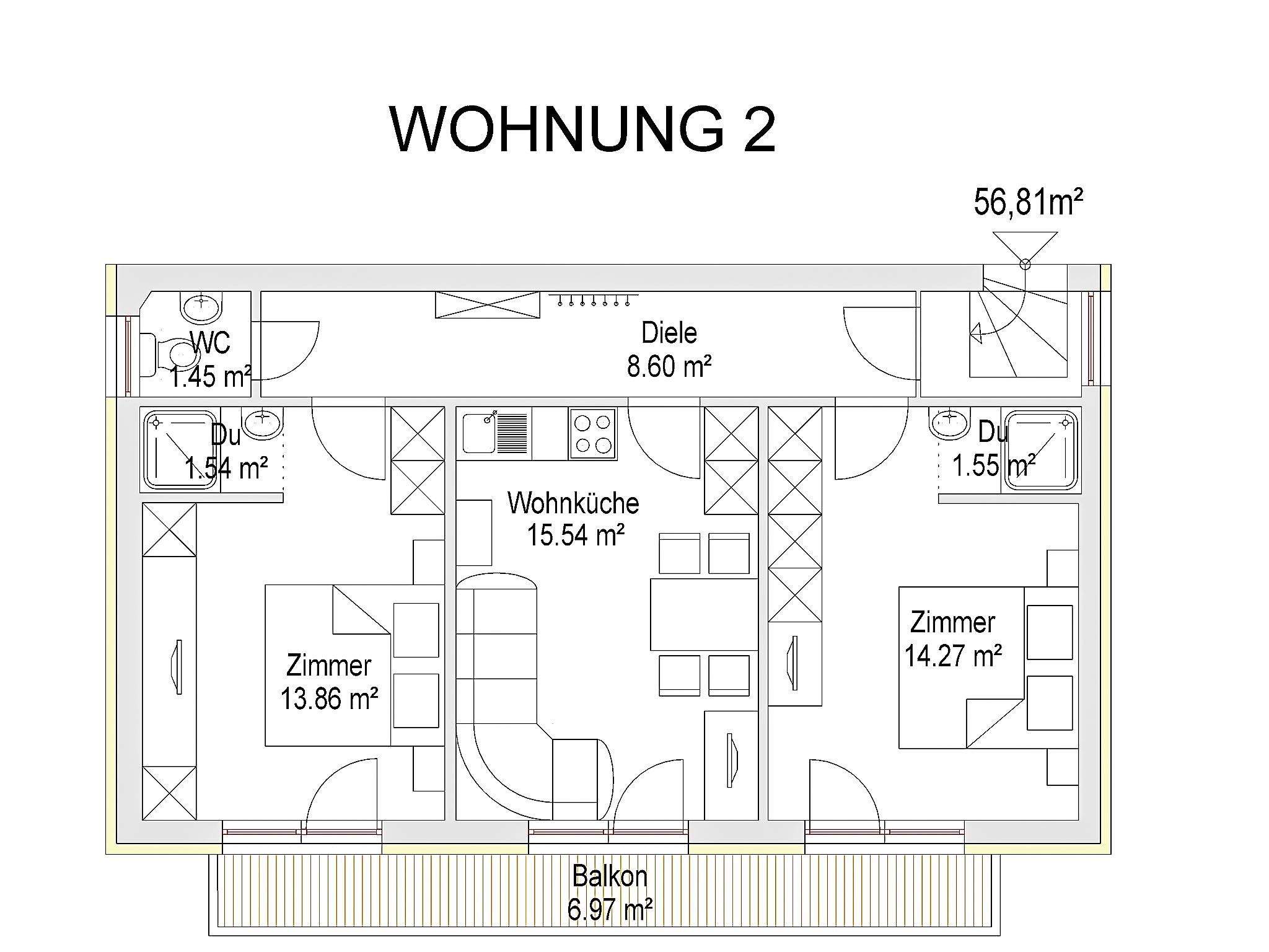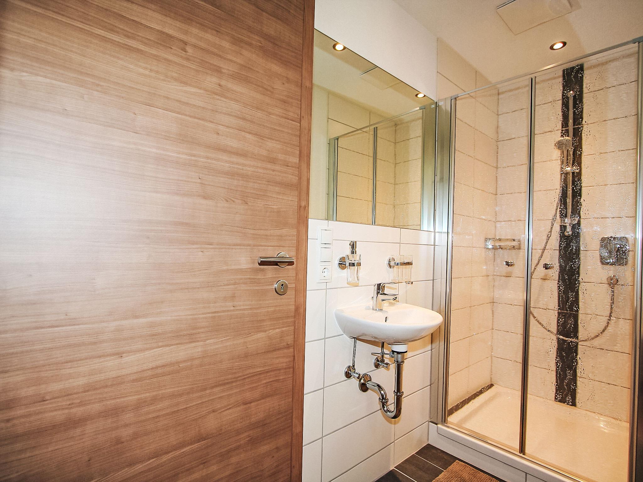 3-room apartment 58 m2 on 1st floor. Modern and cosy furnishings: entrance hall. 2 double bedrooms, each room with hand-basin and shower. Exit to the balcony. Kitchen-/living room (2 hot plates, dishwasher, microwave) with dining table and satellite TV (flat screen). Exit to the balcony. Sep. WC. Large balcony. View of the mountains and the resort. Facilities: Internet (WiFi, extra). Please note: non-smokers only. Maximum 1 pet/ dog allowed. Smoke alarm.