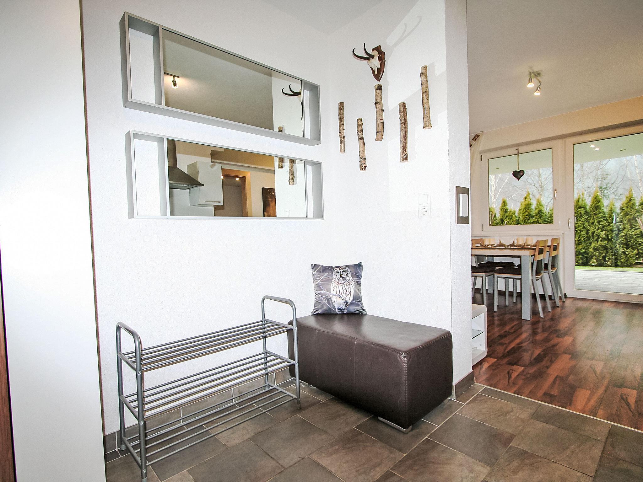 3-room apartment 70 m2, on the ground floor. Comfortable and cosy furnishings: 1 room with 1 bed, 1 double bed and shower/WC. 1 double bedroom with shower/WC. Living/dining room with dining table, satellite TV, CD-player and DVD. Exit to the garden. Kitchenette (oven, dishwasher, 4 ceramic glass hob hotplates, kettle, electric coffee machine). Large terrace, small garden. Terrace furniture. Very beautiful view of the mountains and the forest. Facilities: Internet (WiFi, extra). Parking (1 car). Please note: non-smokers only. the property is only to be reached by the stairway.