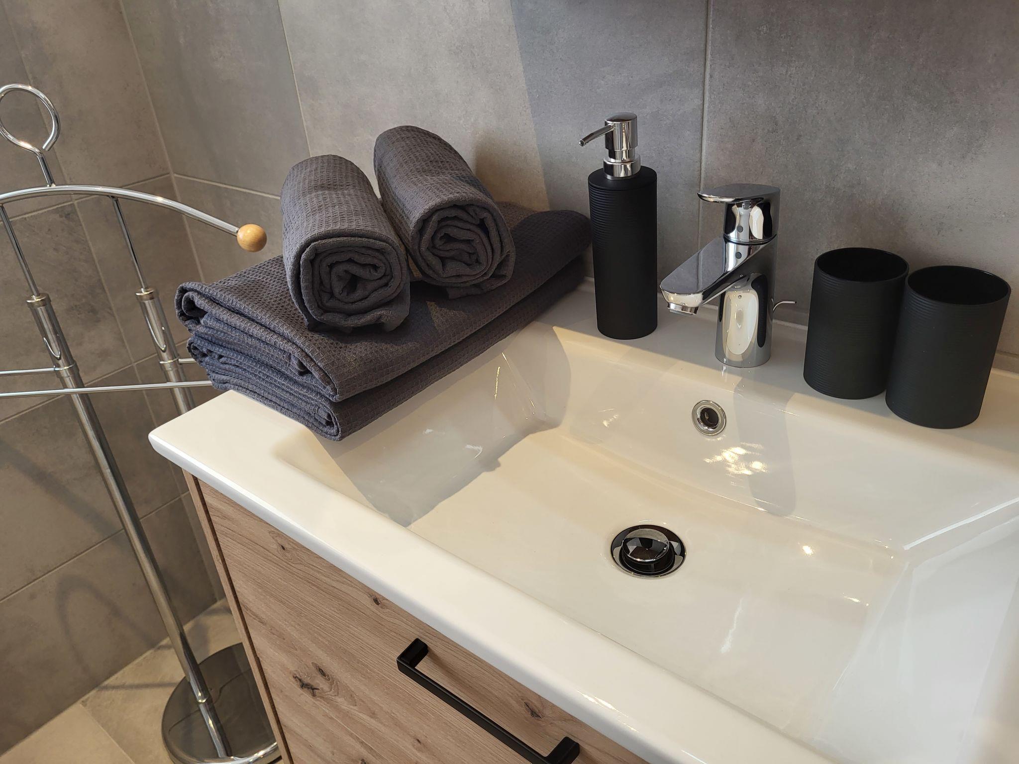 2-room apartment 50 m2. Object suitable for 2 adults + 2 children. Spacious and bright, modern and cosy furnishings: entrance hall. 1 double bedroom. Kitchen-/living room (oven, dishwasher, 4 ceramic glass hob hotplates, toaster, kettle, electric coffee machine, Capsules for coffee machine (Pads (Senseo))) with 1 double sofabed and satellite TV (flat screen). Shower/WC. Heating. Parquet floors. Large balcony. Balcony furniture. Marvellous view of the mountains. Facilities: Internet (WiFi, free). Please note: non-smokers only. Private entrance, smoke alarm.
