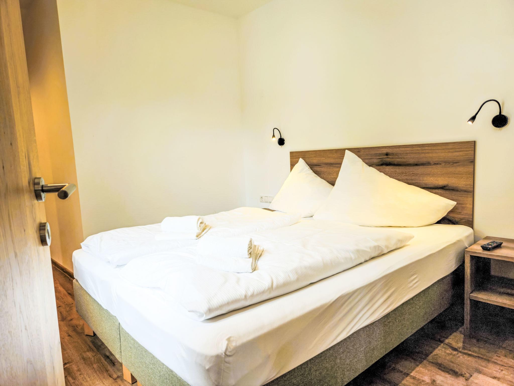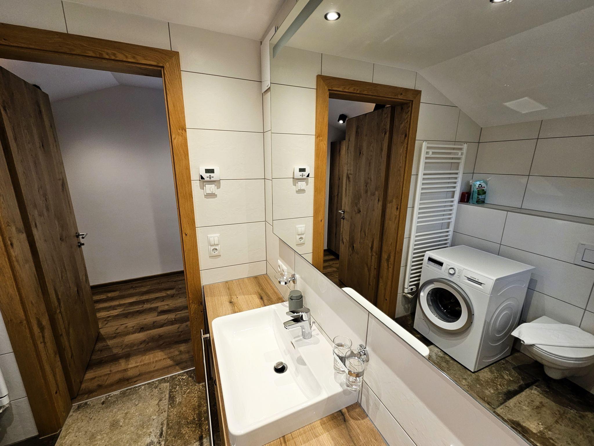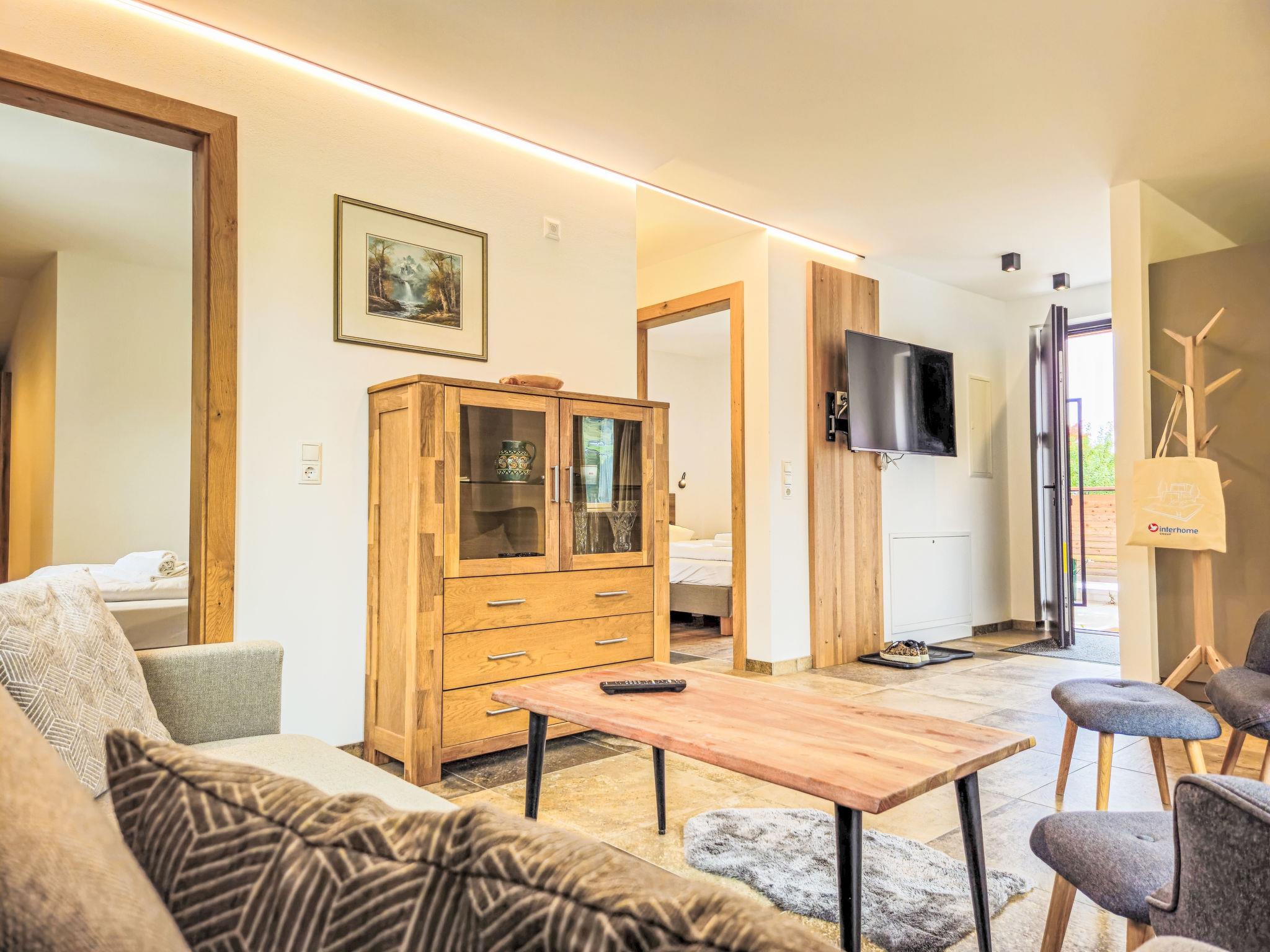 "Home Holzwurm", 3-room apartment 70 m2 on 1st floor. Object suitable for 6 adults. Spacious and bright, very modern and cosy furnishings: 1 double bedroom with bath/WC and cable TV (flat screen). 1 double bedroom with 1 french bed, shower/WC and satellite TV (flat screen). Kitchen-/living room (oven, dishwasher, 4 ceramic glass hob hotplates, toaster, kettle, microwave, freezer, electric coffee machine, Capsules for coffee machine (Dolce Gusto)) with 1 double sofabed and cable TV (flat screen). Exit to the balcony. Beautiful panoramic view of the mountains. Facilities: washing machine. Internet (WiFi, free). Parking (2 cars). Please note: non-smokers only. Maximum 1 pet/ dog allowed.