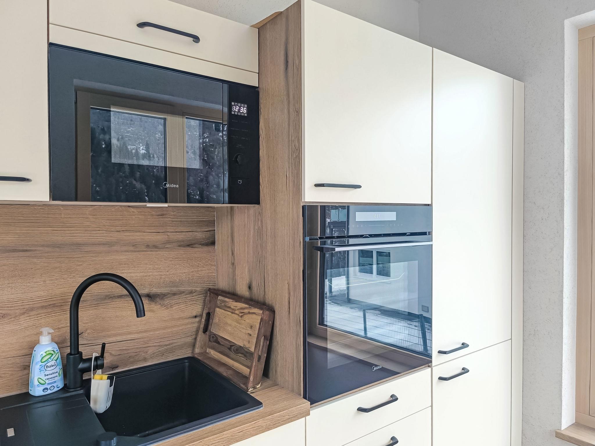 "Panorama", 2-room apartment 54 m2, on the lower ground floor. Tasteful and cosy furnishings: entrance hall. Living/sleeping room with 1 double sofabed and TV (flat screen). 1 double bedroom. Open kitchen (oven, dishwasher, 4 ceramic glass hob hotplates, toaster, kettle, microwave, freezer, electric coffee machine, Capsules for coffee machine (Dolce Gusto) extra) with dining table. Shower/WC. Underfloor heating. Parquet floors, natural stone floors. Balcony 22 m2. Balcony furniture. Very beautiful panoramic view of the mountains and the resort. Facilities: Internet (WiFi, free). Please note: non-smokers only. Smoke alarm, fire extinguisher, no lift.