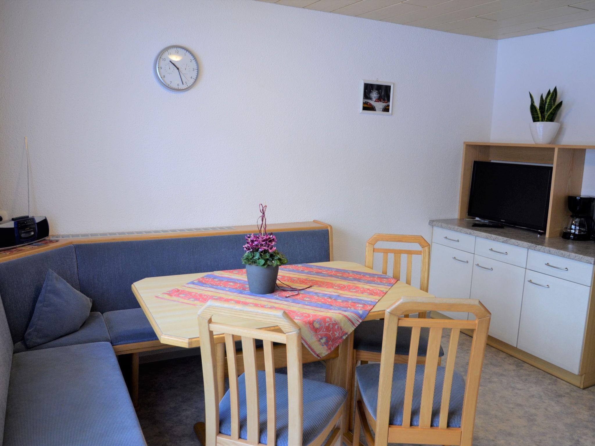 "Elfriede", 5-room apartment 65 m2, on the top floor. Bright, practical furnishings: 1 double bedroom with sloping ceilings with hand-basin. 1 room with sloping ceilings with 1 double sofabed. 2 rooms with sloping ceilings, each room with 2 beds. With sloping ceilings kitchen-/living room (4 hot plates, oven, toaster, kettle, electric coffee machine) with dining nook, satellite TV and radio. Shower/WC, sep. WC. Oil heating. Carpet. Balcony. Balcony furniture. Facilities: children's high chair, baby cot. Internet (WiFi, free). Parking (3 cars). Please note: non-smokers only. Fire extinguisher. When there are less than the maximum number of guests staying at the property, not all of the bedrooms will be available for use.