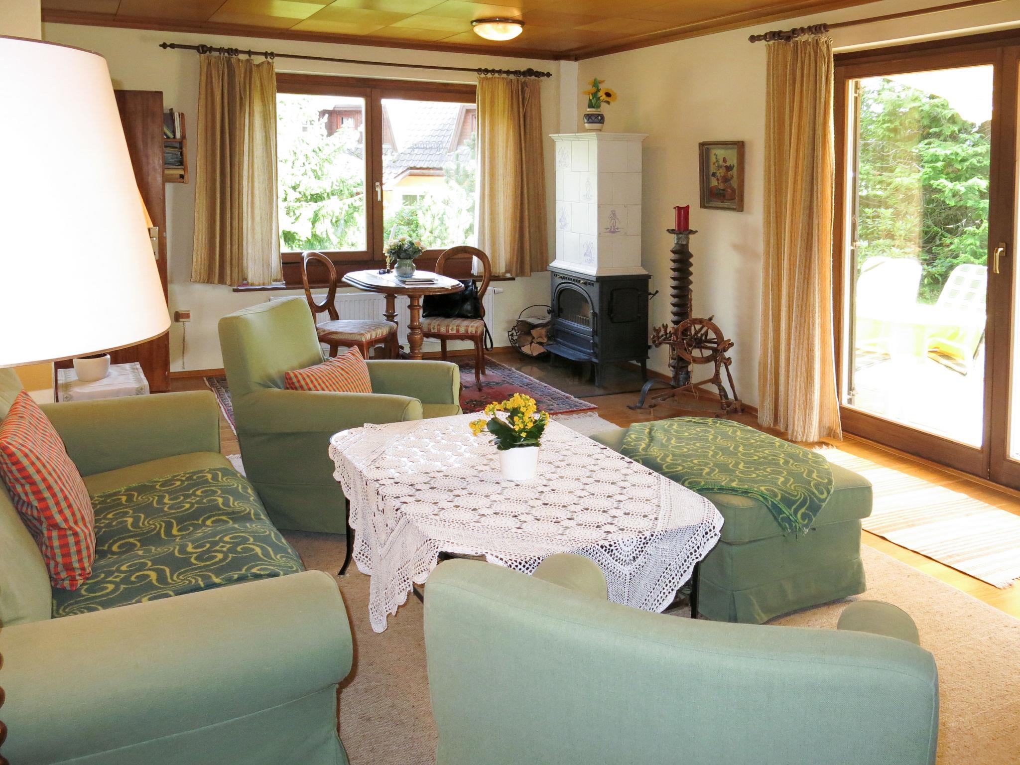 "Reier", 4-room house 140 m2 on 2 levels. Tasteful and cosy furnishings: living/dining room with dining table, satellite TV, hi-fi system and tiled stove. Exit to the terrace. 1 room with 2 beds. Open kitchen (oven, dishwasher, 4 ceramic glass hob hotplates, kettle, electric coffee machine). Shower/WC. Upper floor: 1 double bedroom with sloping ceilings. Exit to the balcony. 1 room with sloping ceilings with 1 bed and 2 double beds. Shower/WC. Heating. Parquet floors. Balcony. Beautiful view of the mountains. Facilities: washing machine, baby cot. Internet (WiFi, free).