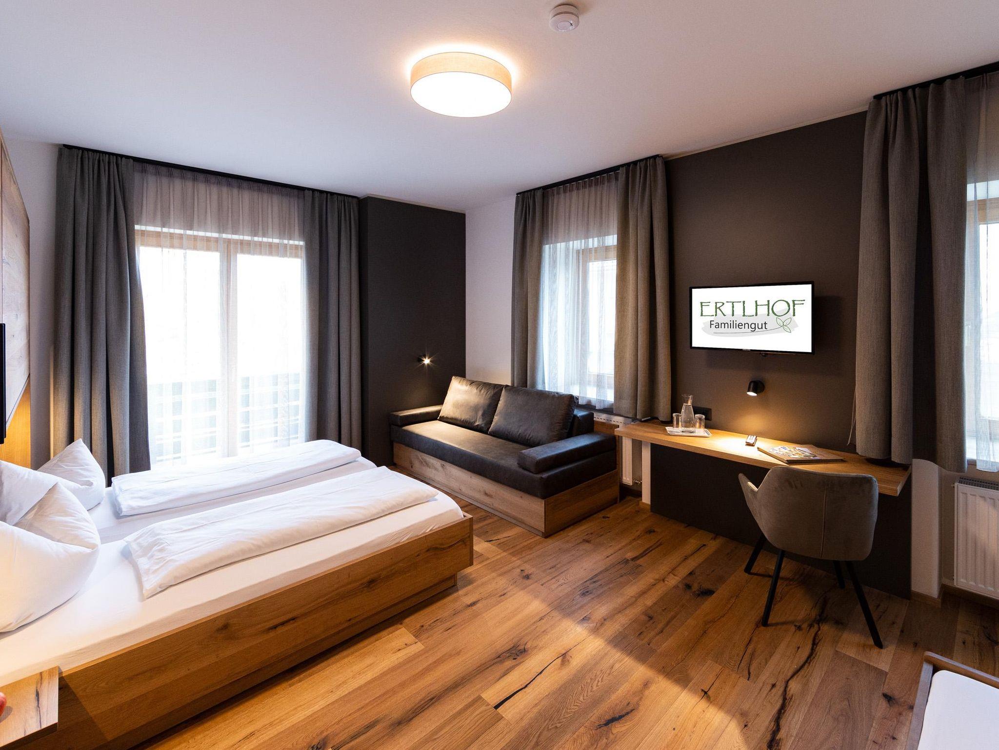 Das Familiengut Ertlhof verfügt über insgesamt 27 modern und geschmackvoll eingerichtete Zimmer in jeder Kategorie, vom Doppelzimmer bis hin zum Green Garden Familienzimmer. Alle Etagen sind natürlich auch mit dem Aufzug erreichbar. Der jetzige Zimmertrakt wurde im Jahr 2012 vollkommen modernisiert. Vor allem auch der Gartenbereich mit Freibad und Kinderbecken, aber auch die zur Erholung und Entspannung einladenden grünen Wiesen, Felder und Wälder der zugehörigen Landwirtschaft, runden das Urlaubsangebot ab.