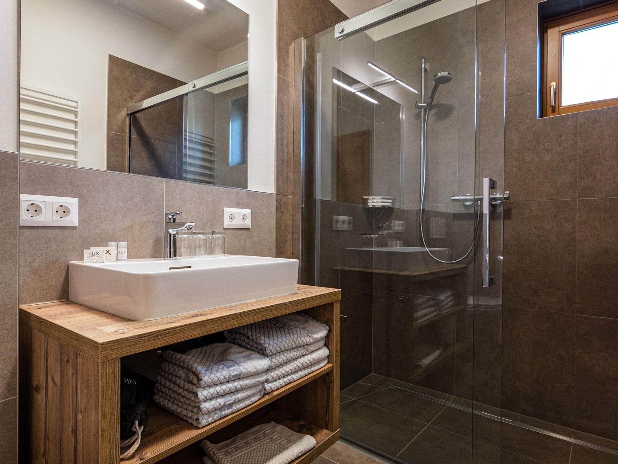 Zur Ausstattung gehören neben Doppelbett, Stockbett, Schreibtisch, Couch, Sat-TV, W-Lan auch ein modernes und großzügiges Badezimmer mit Dusche, Waschtisch, Haartrockner und WC.
