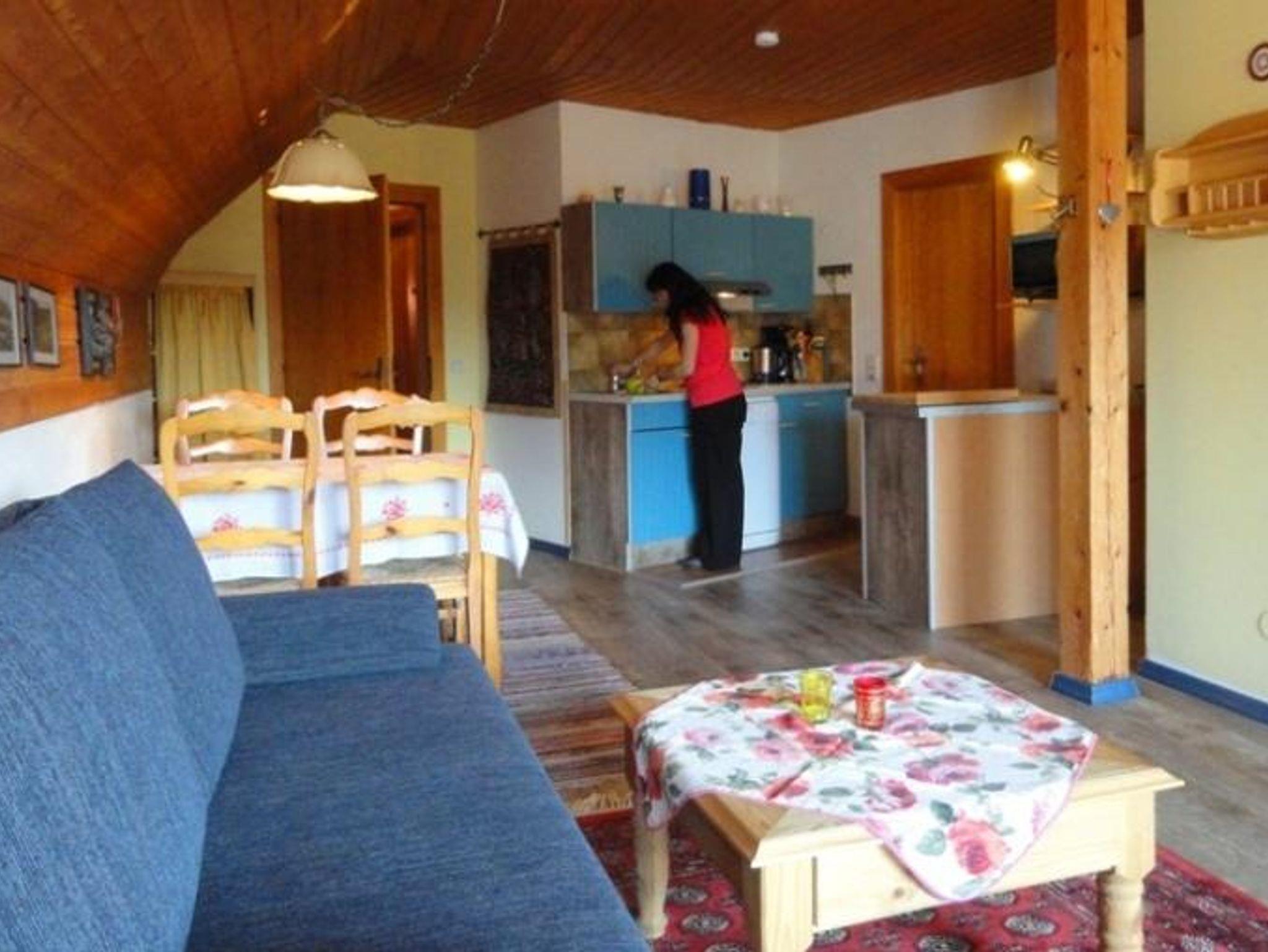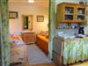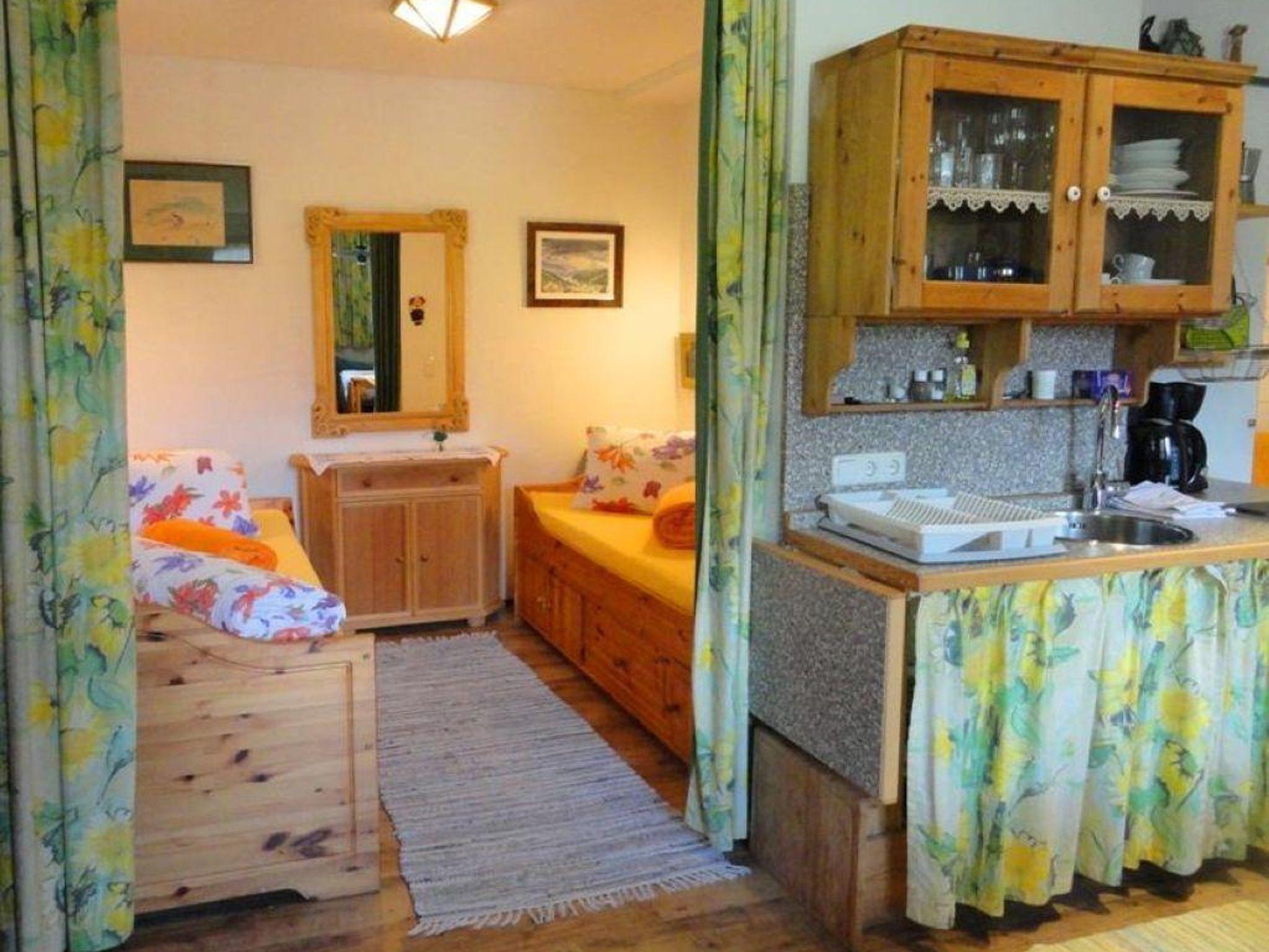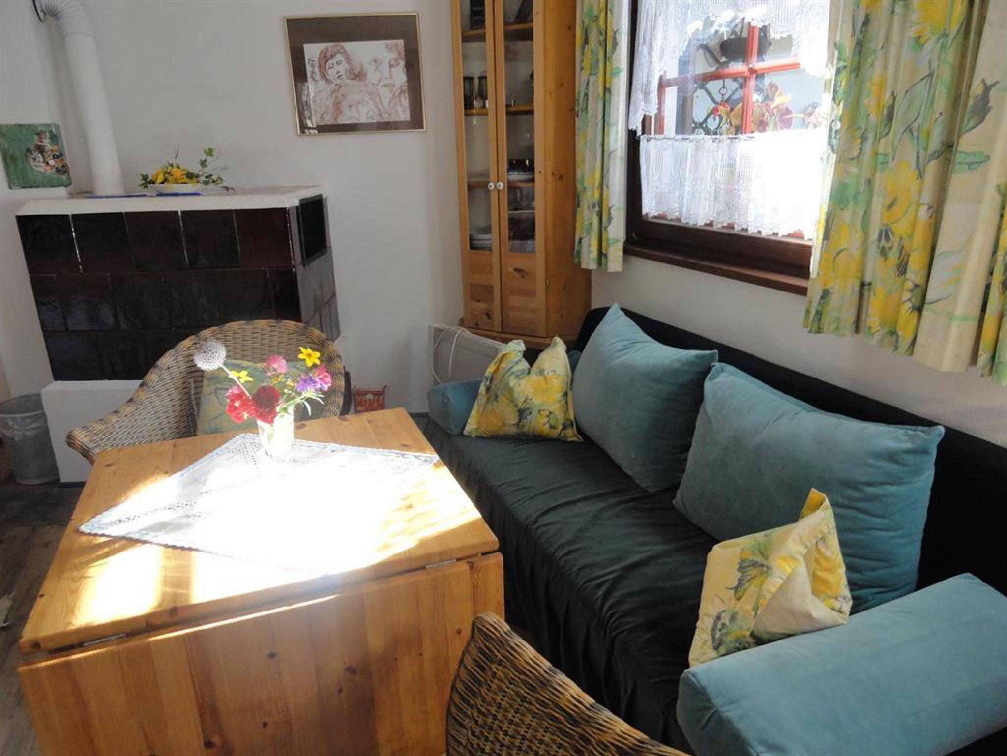 Wohnschlafraum mit Küchenblock, SAT-TV, Flachbild, Kachelofen.