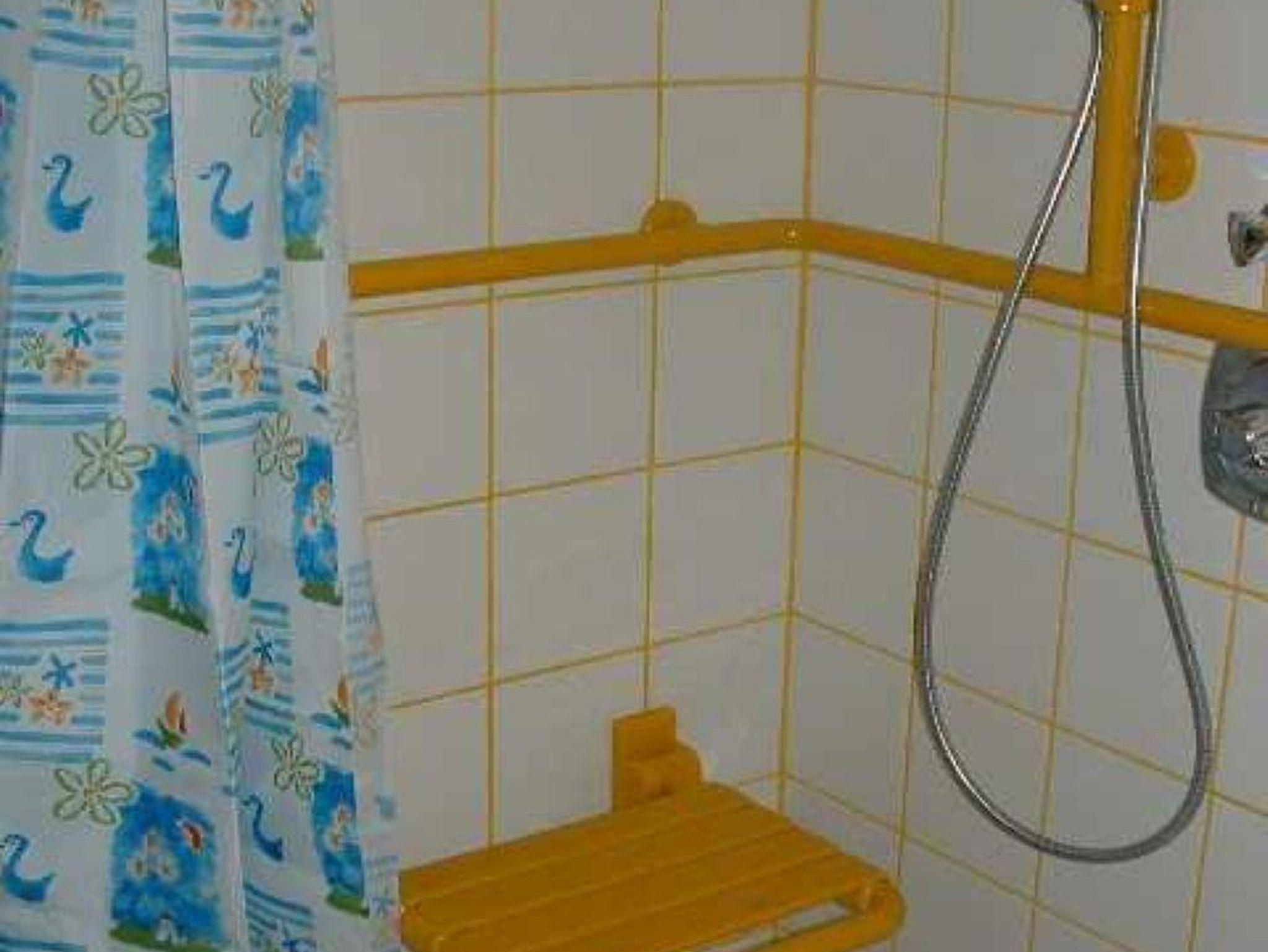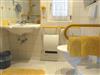 Geräumige Nasszelle für Rolltuhlfahrer eingerichtet.