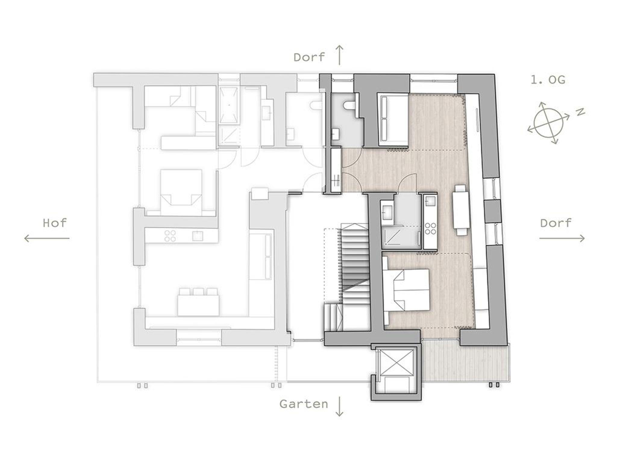 Sicher auch deshalb, weil in ihnen unsere Liebe fürs gutes Wohnen zu spüren ist – überlegt mit Herz und Hirn und ausgeführt mit den besten Handwerkern der Region. Denn, so sind wir überzeugt: Proportionen, Materialien und auch Funktionalität wirken auf Körper, Geist und Seele. Eines haben unsere Ferienwohnungen alle gemein: Vollholz- möbel, Holzböden, klare Linien, und die Ausrichtung aller Zimmer zum Dorf oder in den Garten.