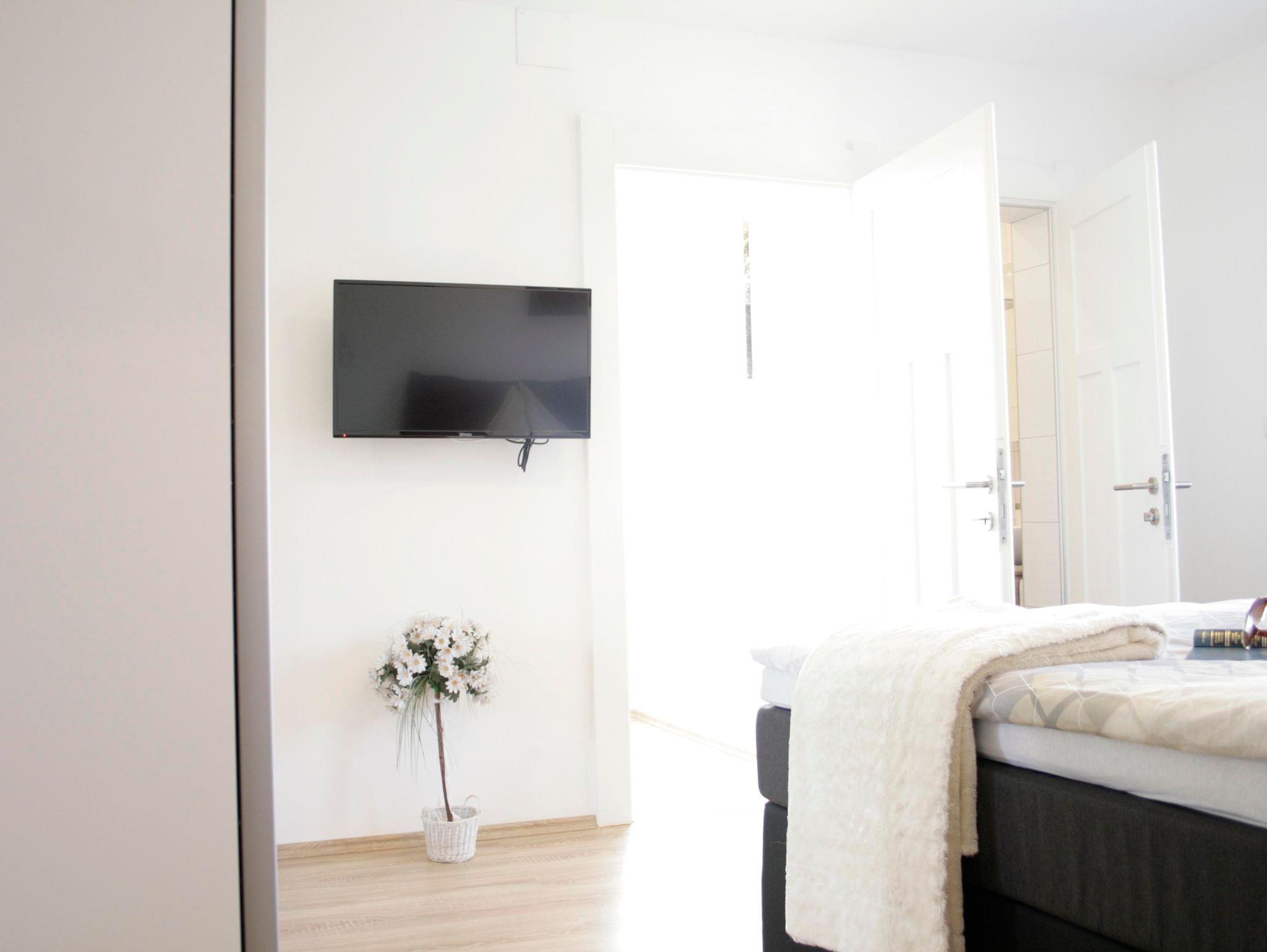 Ferienwohnung bestehend aus 1 Schlafzimmer( Boxspringbett) und TV/Sat, 1 kleines Zimmer mit Couch, Küche (komplett ausgestattet: Geschirrspüler, Küchlschrank mit Gefrierfach, Backofen, Herd und Sitzecke) und DU/WC.