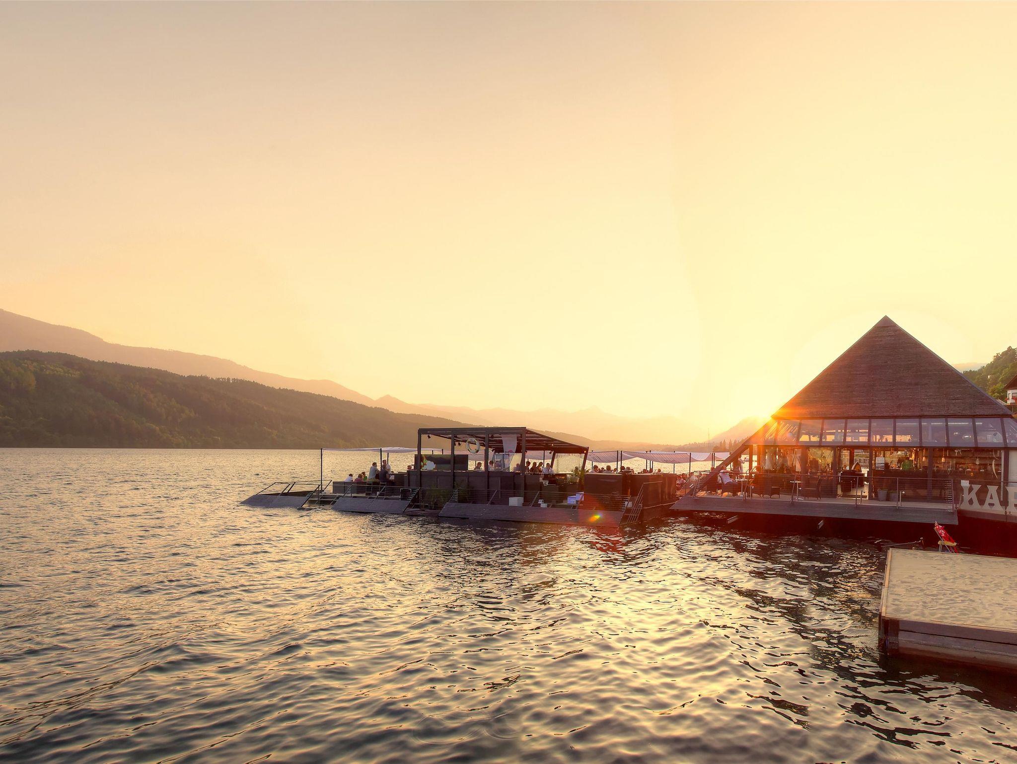 Entspannung nach der Tour bietet das Seenwellness im 1. Kärnten Badehaus und in Bars und Restaurants am Wasser den Tag ausklingen lassen.
