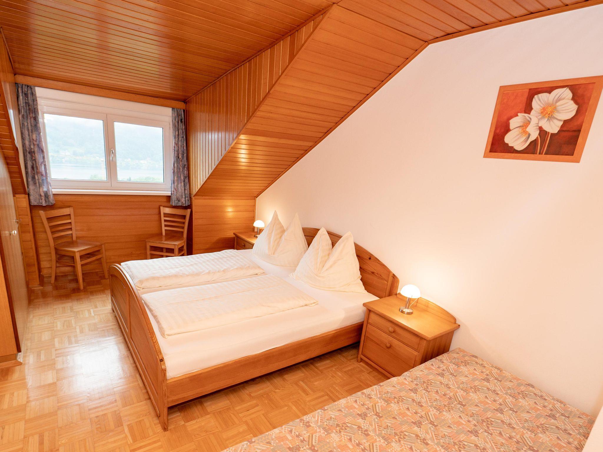 Bestehend aus zwei Doppelzimmern südseitig mit Seeblick, eines der Zimmer hat Ostbalkon, Bad/WC, eine Wohnküche (Geschirrspüler) mit Ostbalkon.