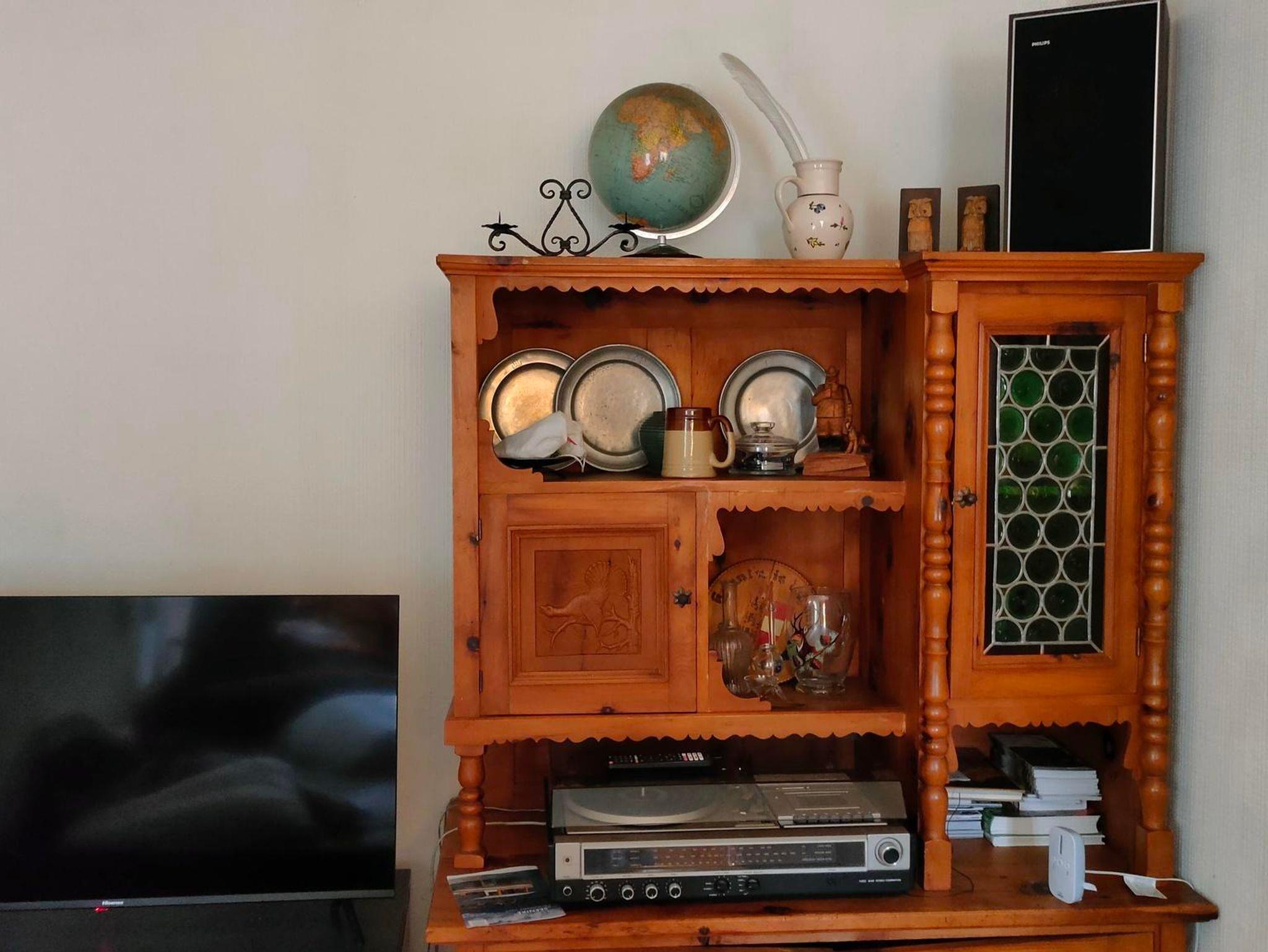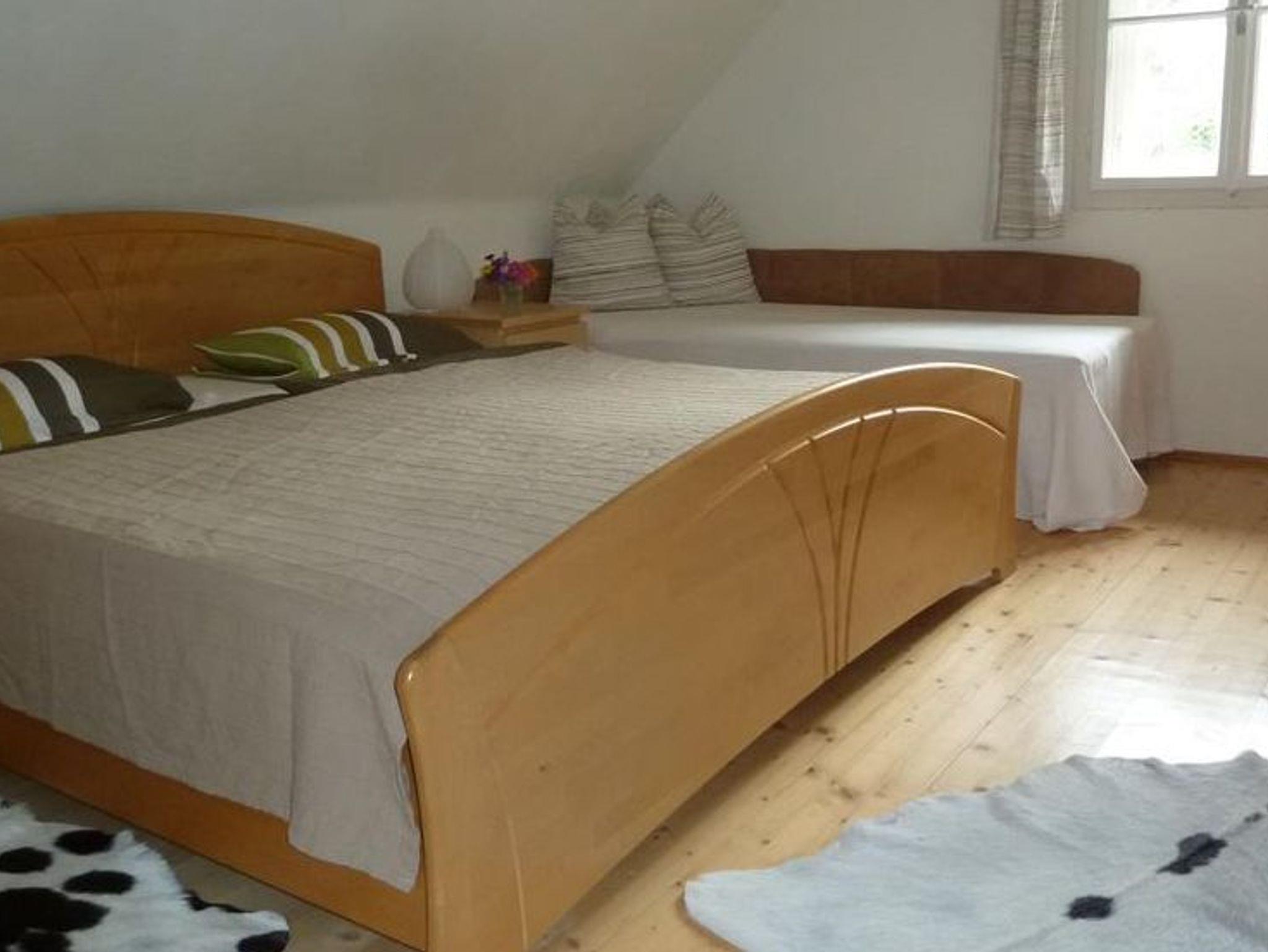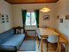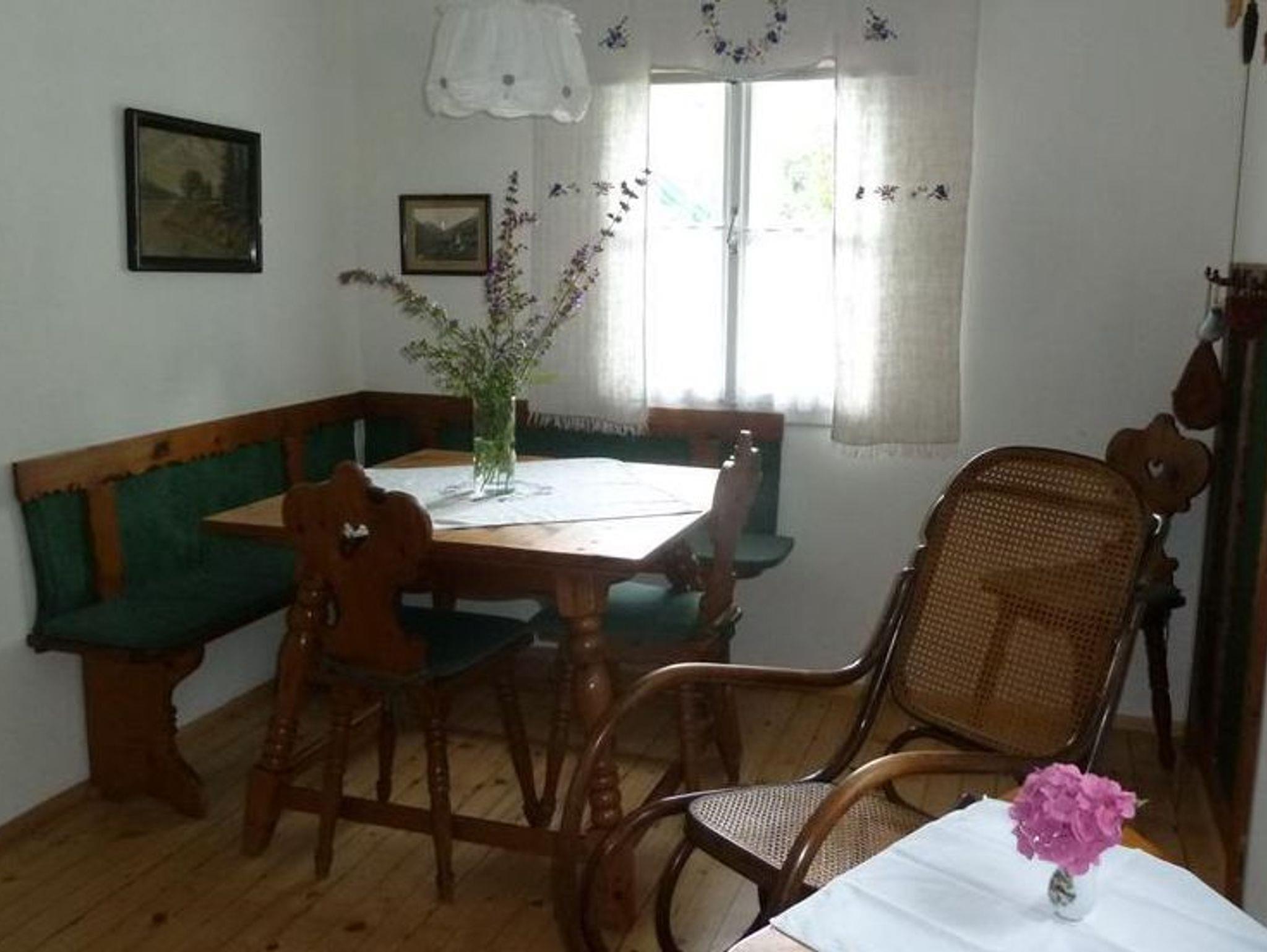 Im Erdgeschoß des Hauses befinden sich Küche (gut ausgestattet: E- Herd, Kühlschrank mit Tiefkühlfach, Geschirrspüler, Kaffeemaschine, Mikrowellenherd etc.) mit Esstisch, eine Zirben-Stube mit LCD-SAT-TV und Schlafcouch, Bad und WC. Im Obergeschoß sind 3 Schlafzimmer: eines mit Doppelbett, angrenzend eines mit 2 Betten (und Balkon) und extra zugänglich eines mit einem französischen Bett.