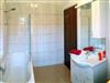Schönes Bad mit Badewanne, Fön, Waschmaschine.