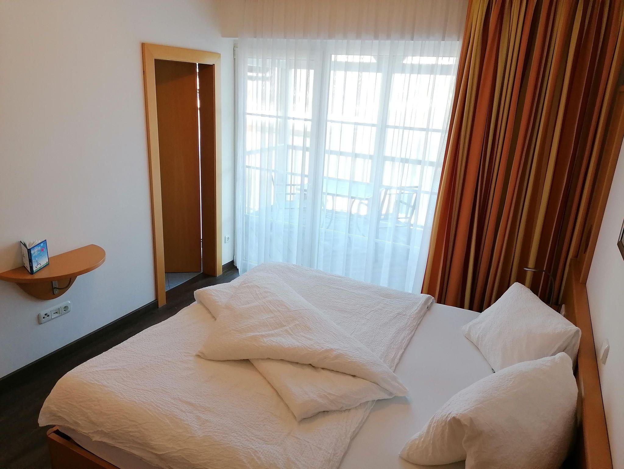 1 Schlafzimmer mit Balkon seeseitig, Bad mit Dusche, Waschbecken, WC und Föhn dann gehts die Stiege hinunter in den gemütlichen komfortablen Wohnraum mit Essecke und Wohnecke(Flat-TV digital,Radio-CD Player, Internetanschluß...)sowie die komplett ausgestattete Kochnische von Geschirrspüler, Cerankochfelder,etc...)