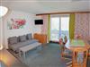 1 Wohnraum / Südbalkon Seeblick mit gemütlicher Sitzecke ( Schlafcouch f. 2 Pers.),