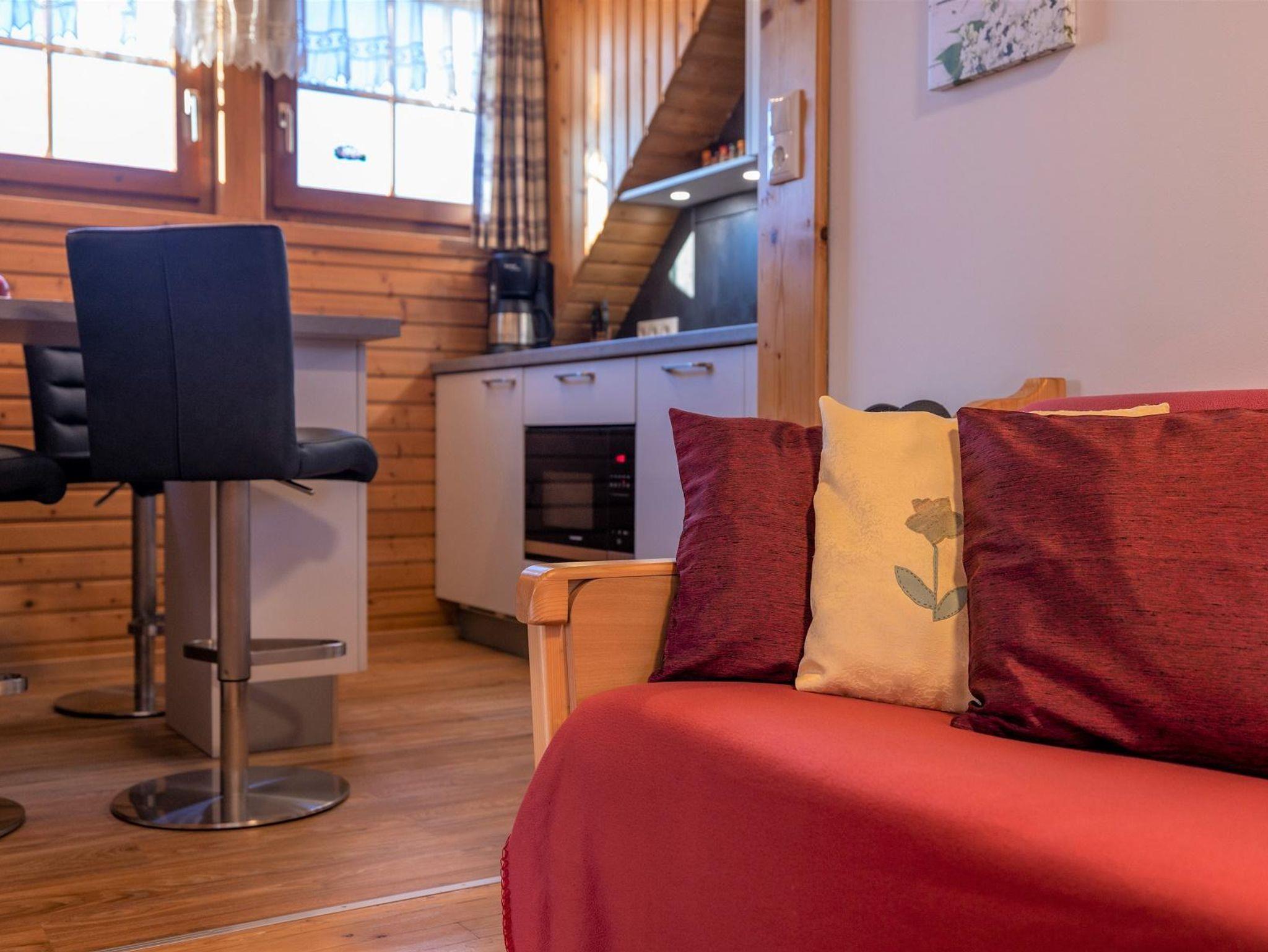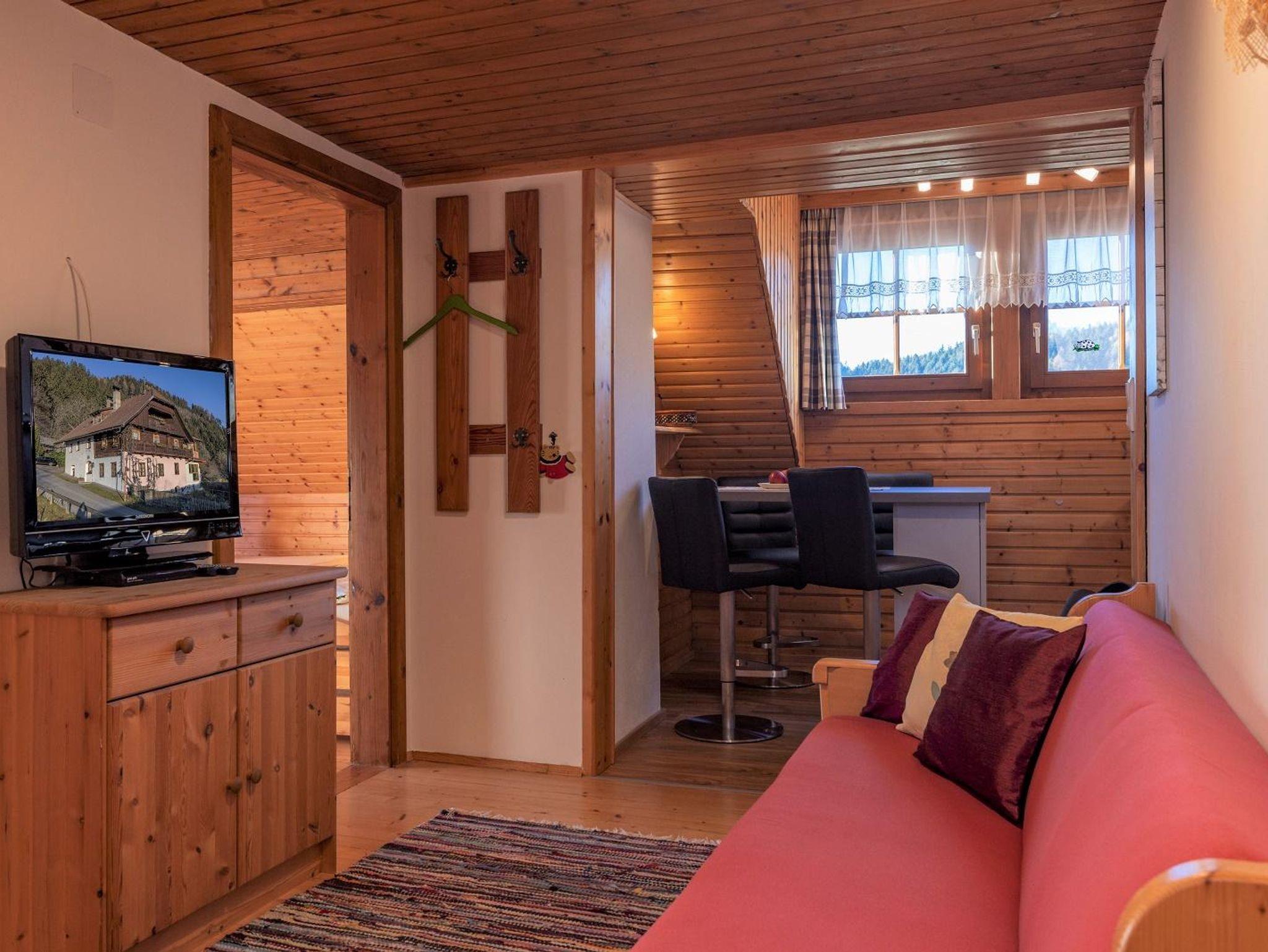 Der Wohnraum ist mit einer modernen Küche, Geschirrspüler, Sofa und Sat-TV ausgestattet. Bettwäsche und Handtücher sind inklusive. Vom Südbalkon genießt du den herrlichen Blick auf das Goldeck und die umliegende Bergwelt – perfekt, um das milde Klima südlich der Alpen zu erleben.