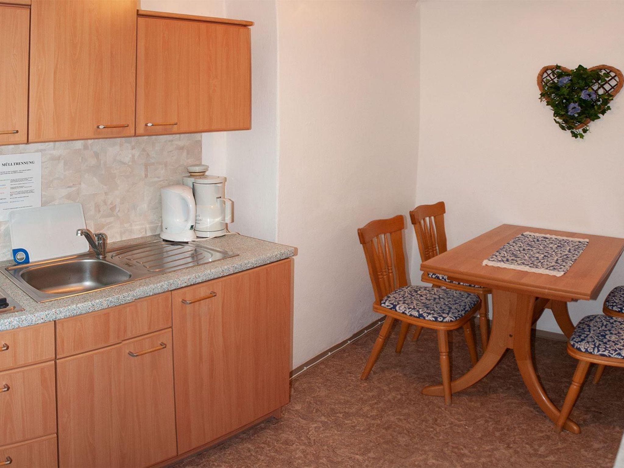 1 Schlafzimmer/Südbalkon mit Doppelbett und KW-Fließwasser 1 Schlafzimmer/Südbalkon mit Doppelbett, SAT-TV Vorraum, DU/WC, eigener Raum als Küche mit gemütlicher Sitzecke, 2-Plattenherd, Kühlschrank, Kaffeemaschine, Wasserkocher, Geschirr, Gläser Die beiden Schlafzimmer haben einen durchgehenden Südbalkon Bett- und Tischwäsche sowie Handtücher werden auf Wunsch gewechselt.